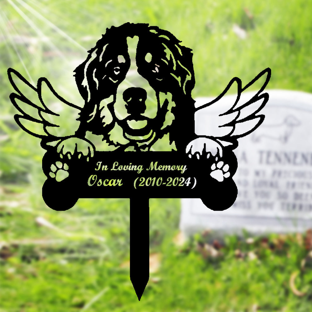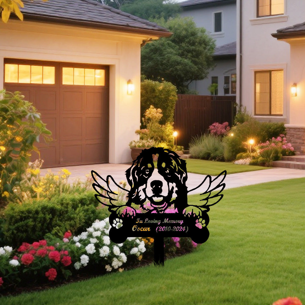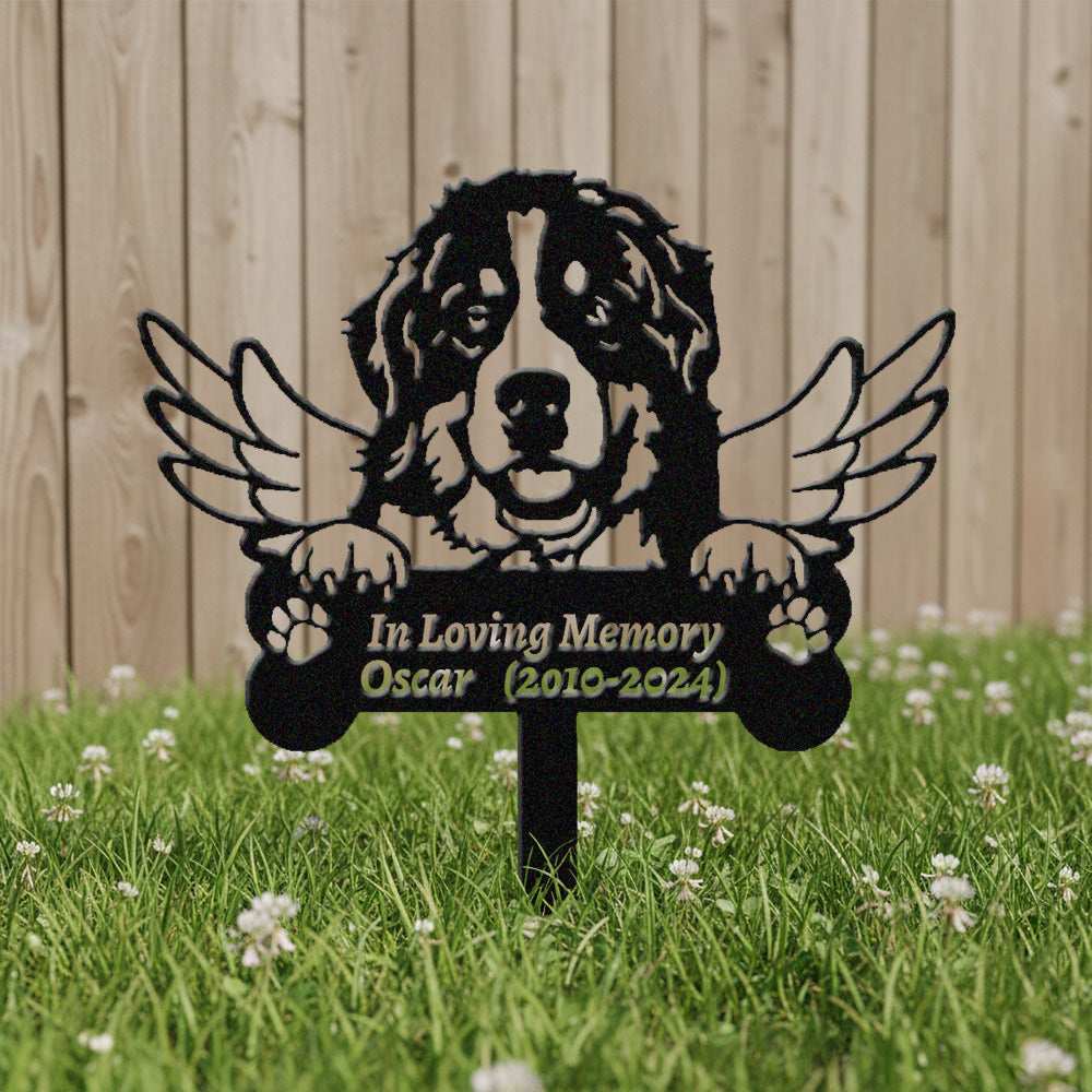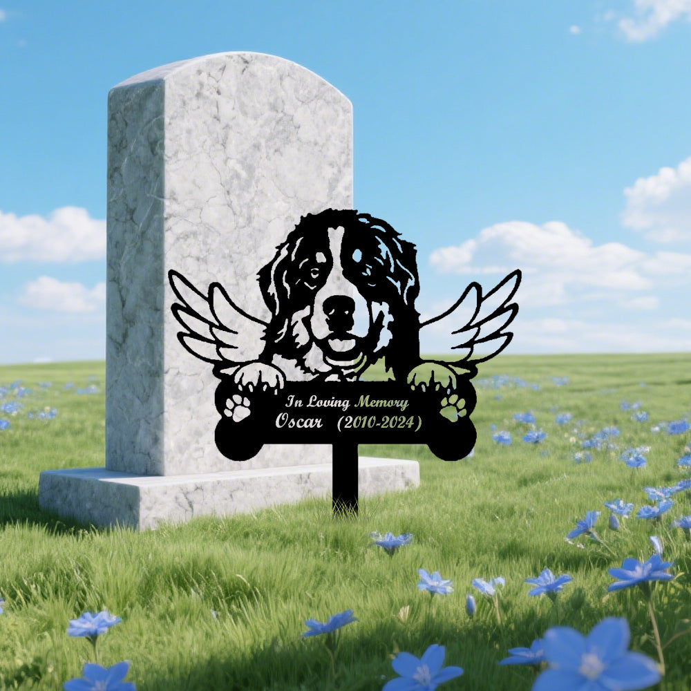 Berner Sennenhund Individueller Gedenkpfahl mit Flügeln