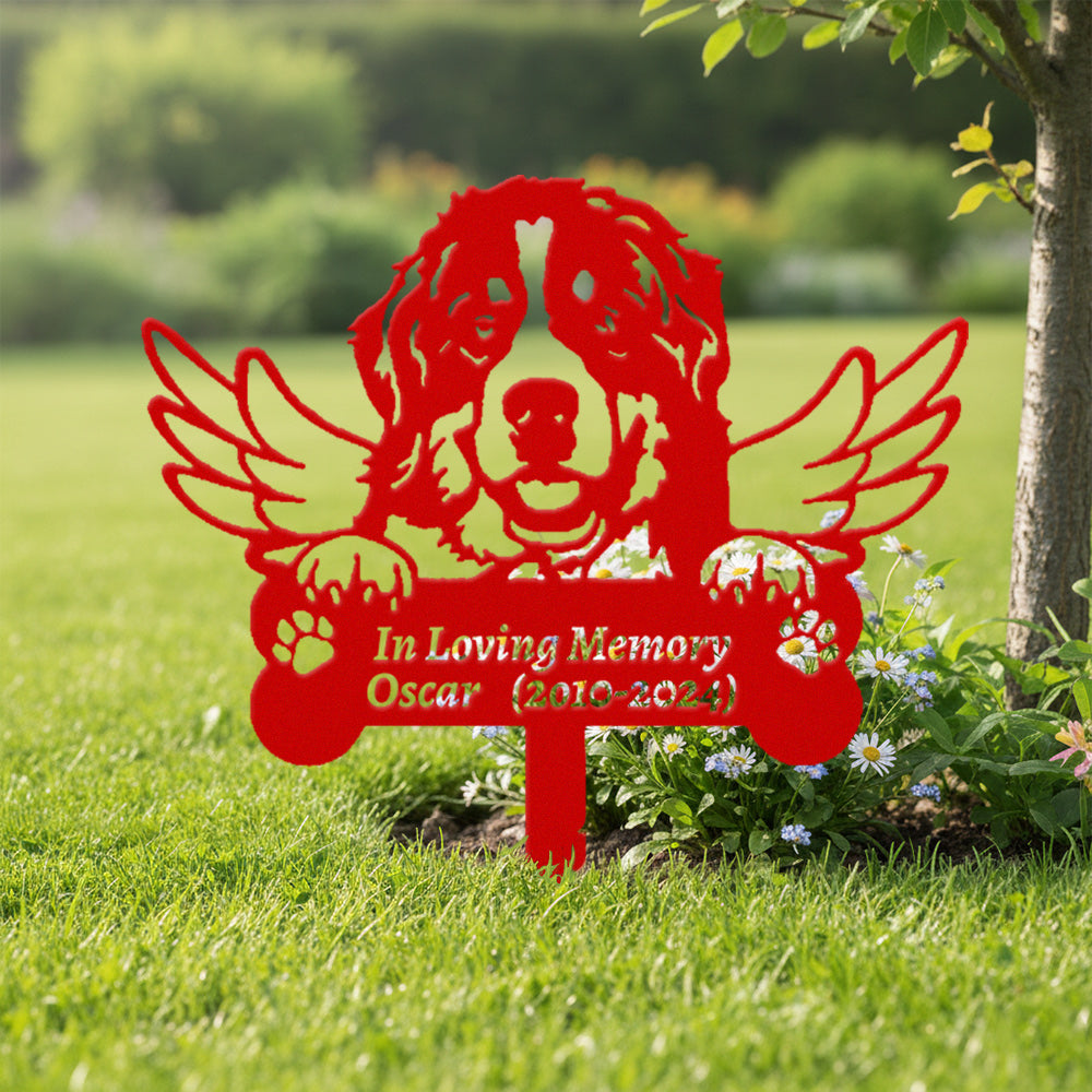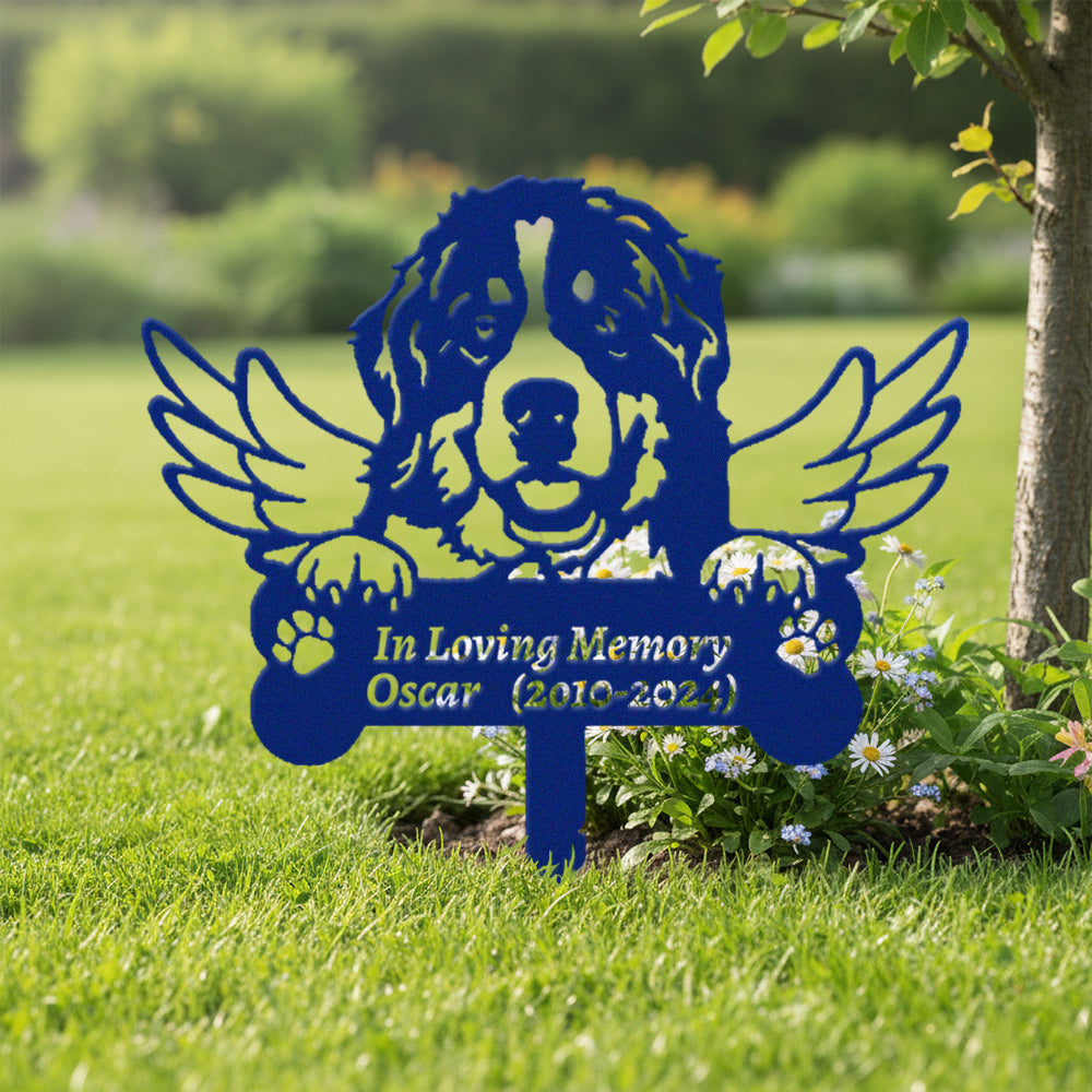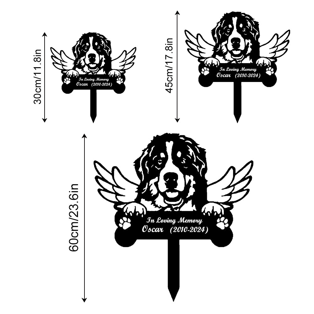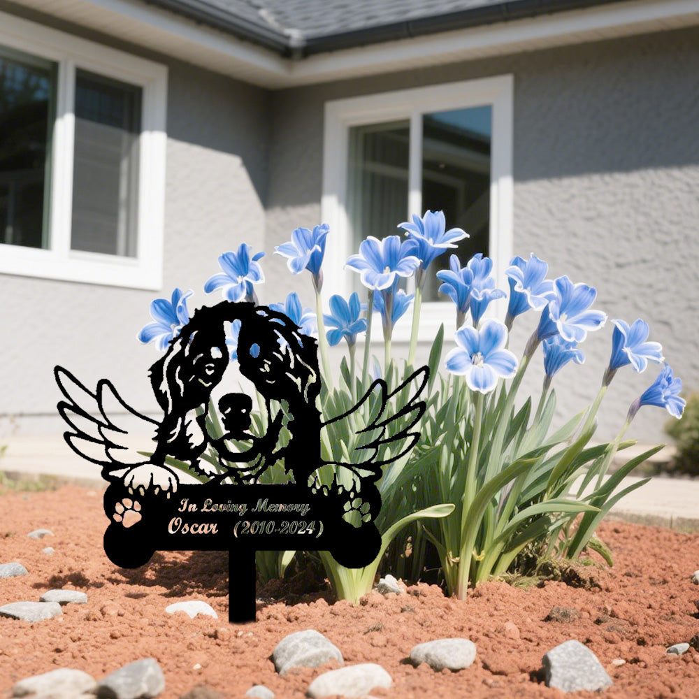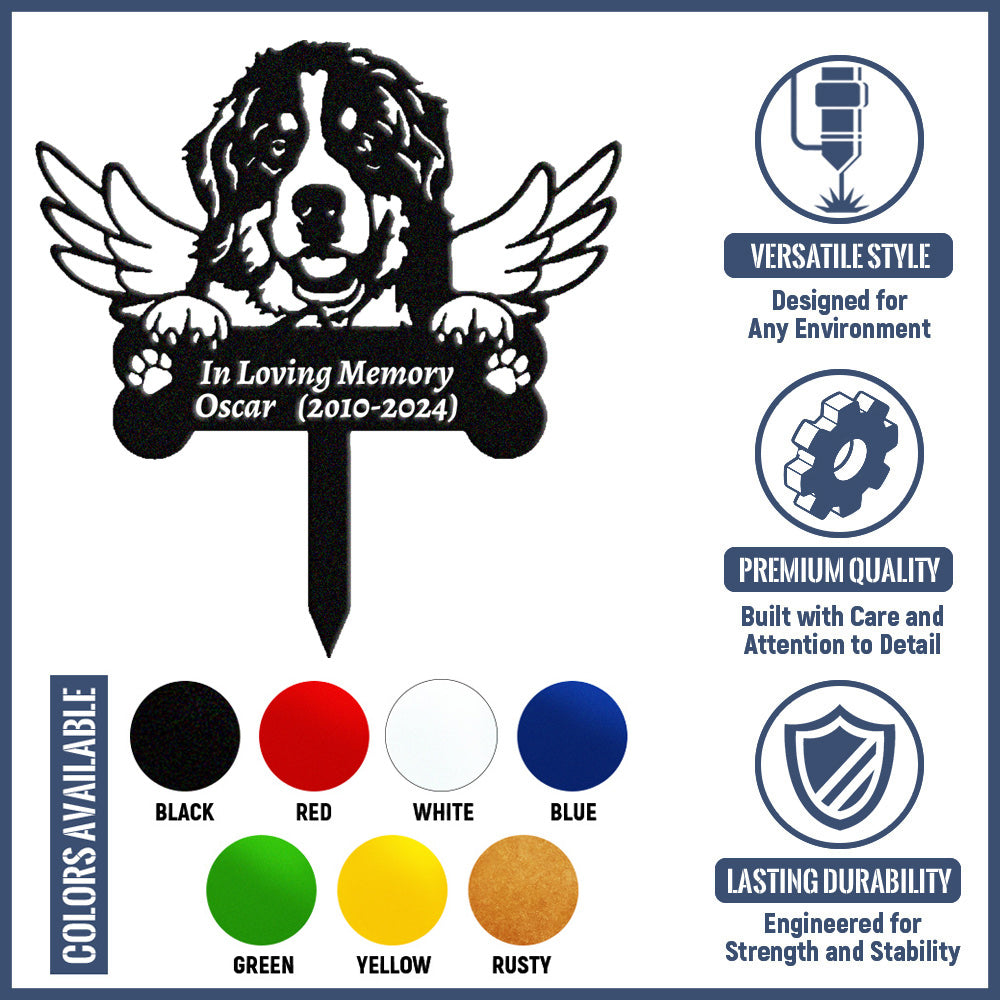 Berner Sennenhund Individueller Gedenkpfahl mit Flügeln