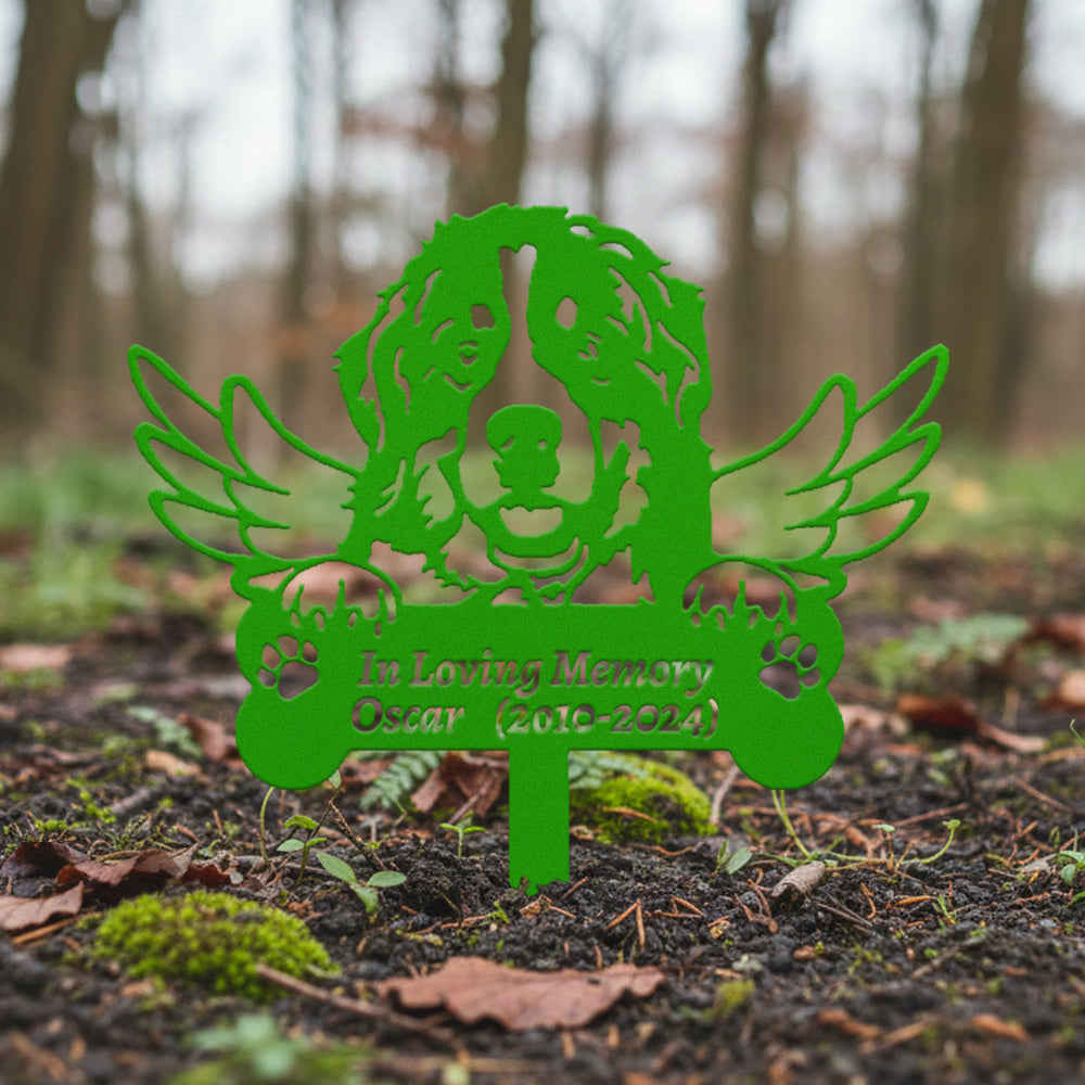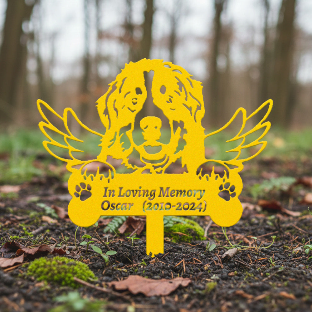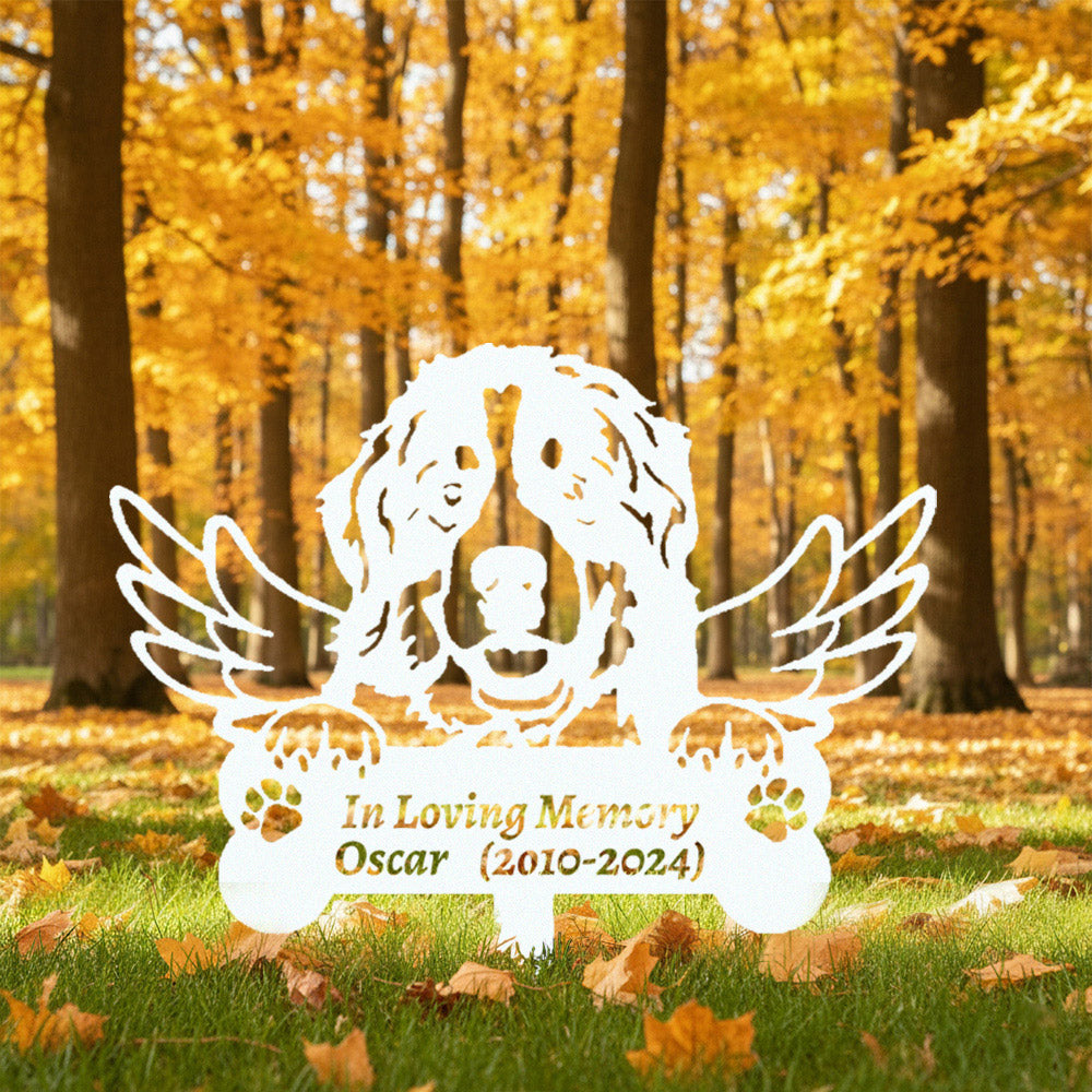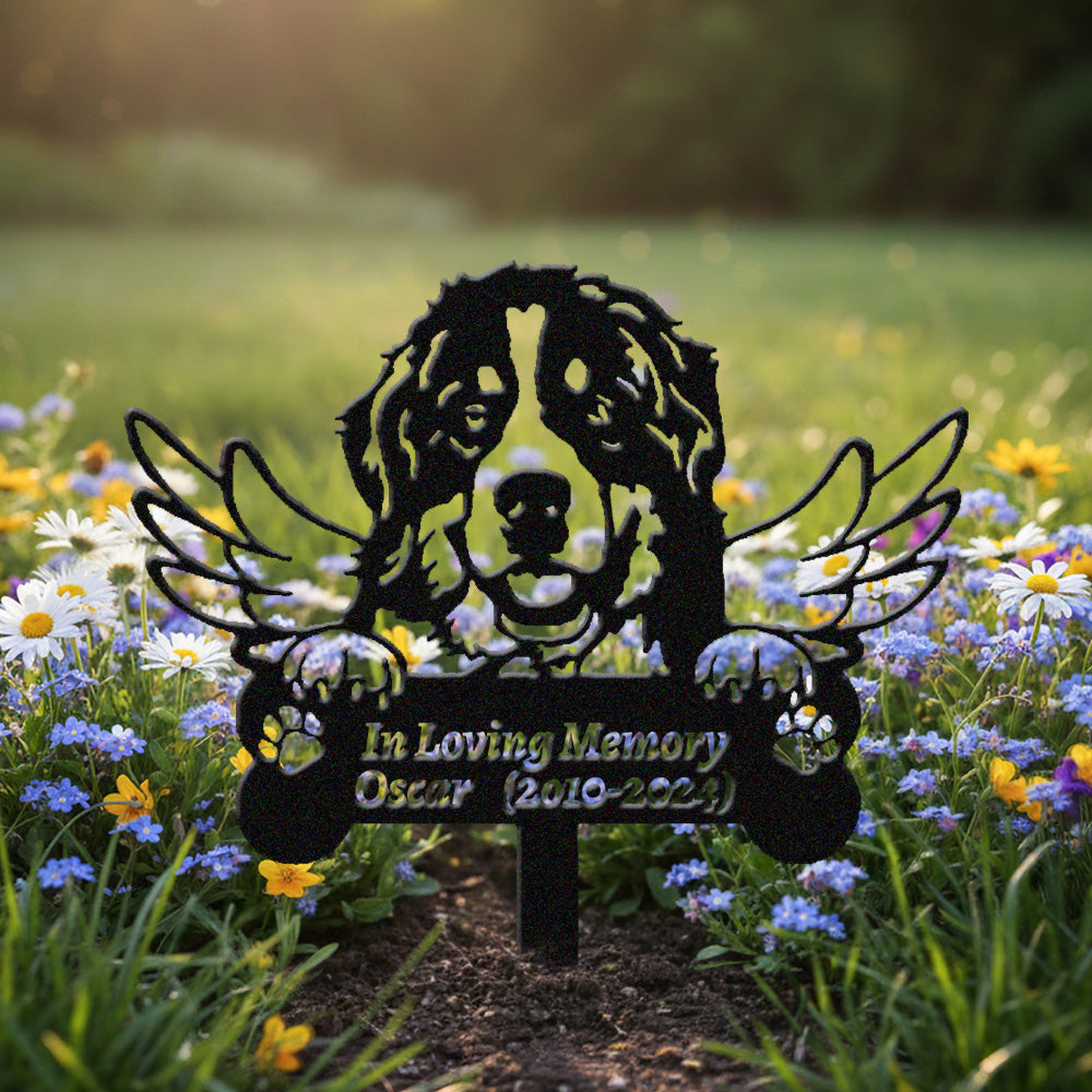 Berner Sennenhund Individueller Gedenkpfahl mit Flügeln
