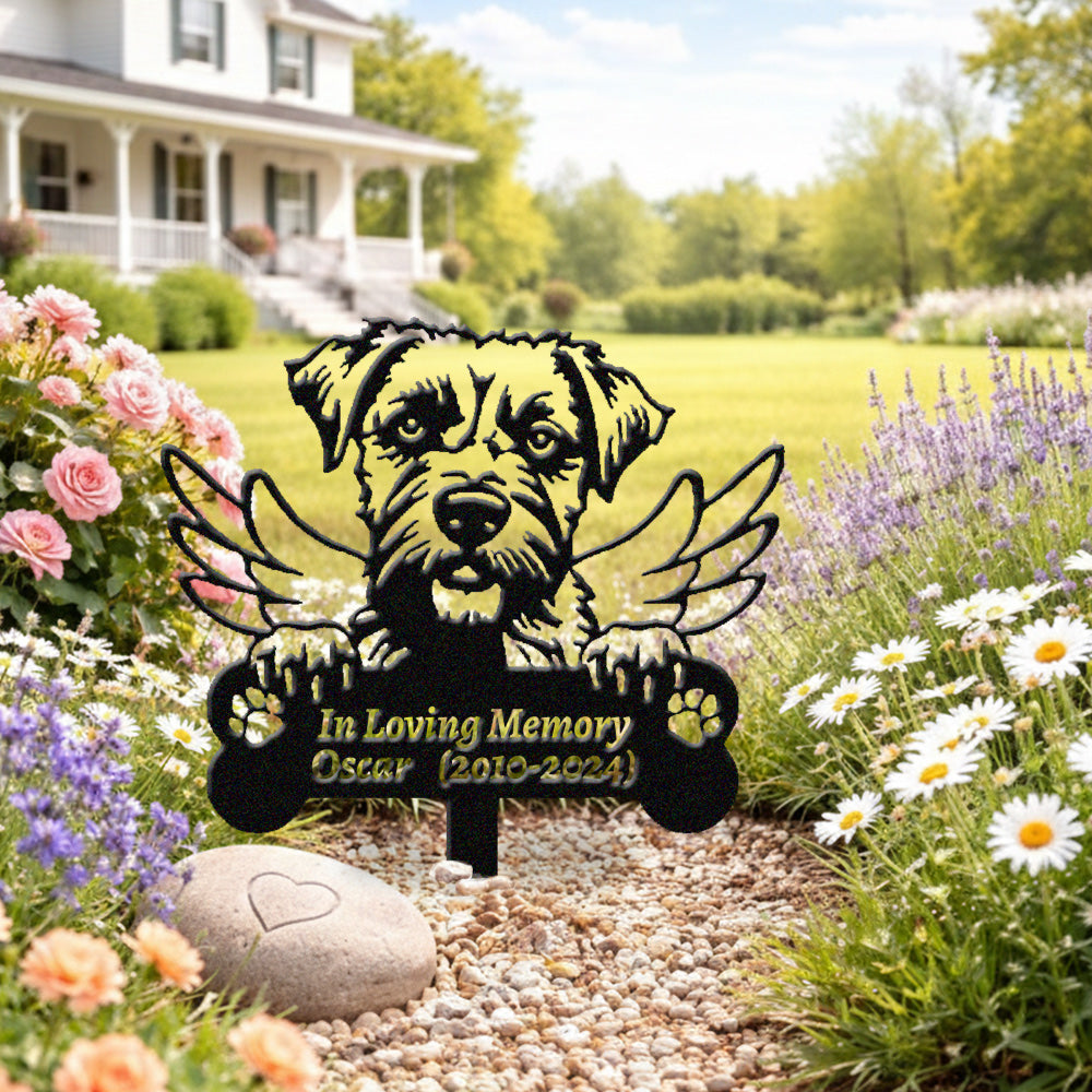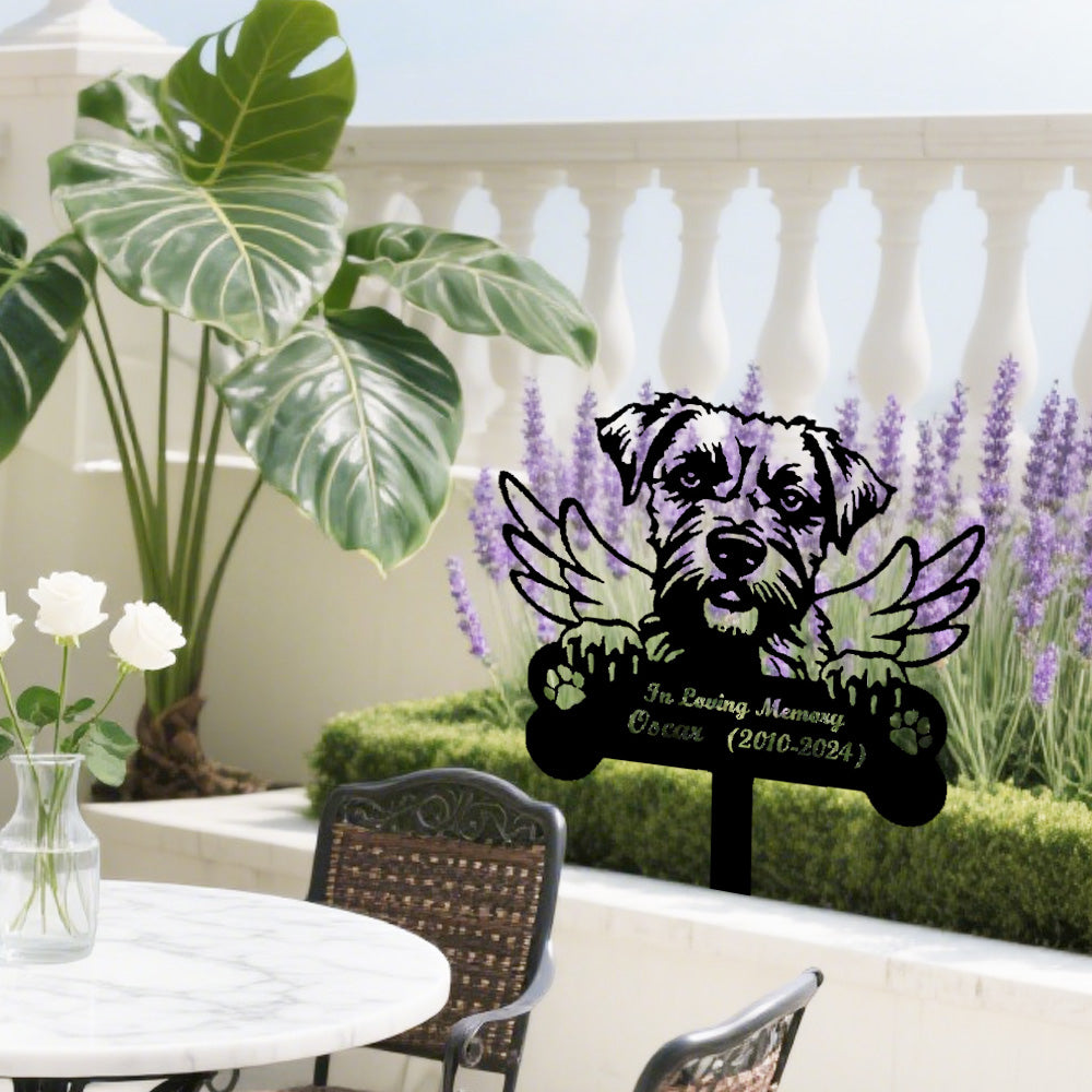 Border Terrier Individueller Gedenkpfahl mit Flügeln