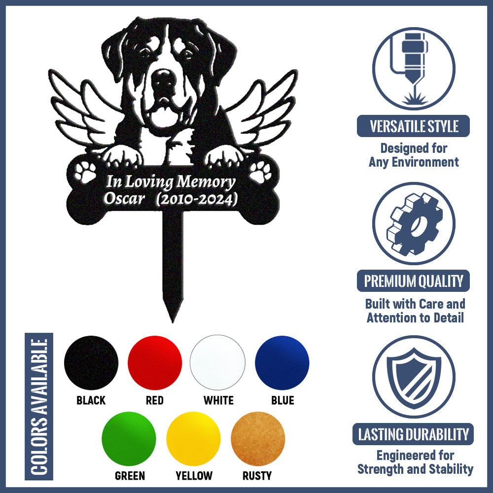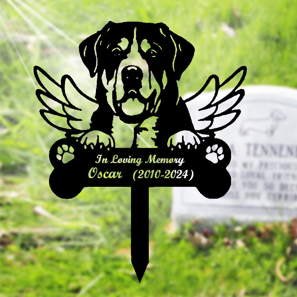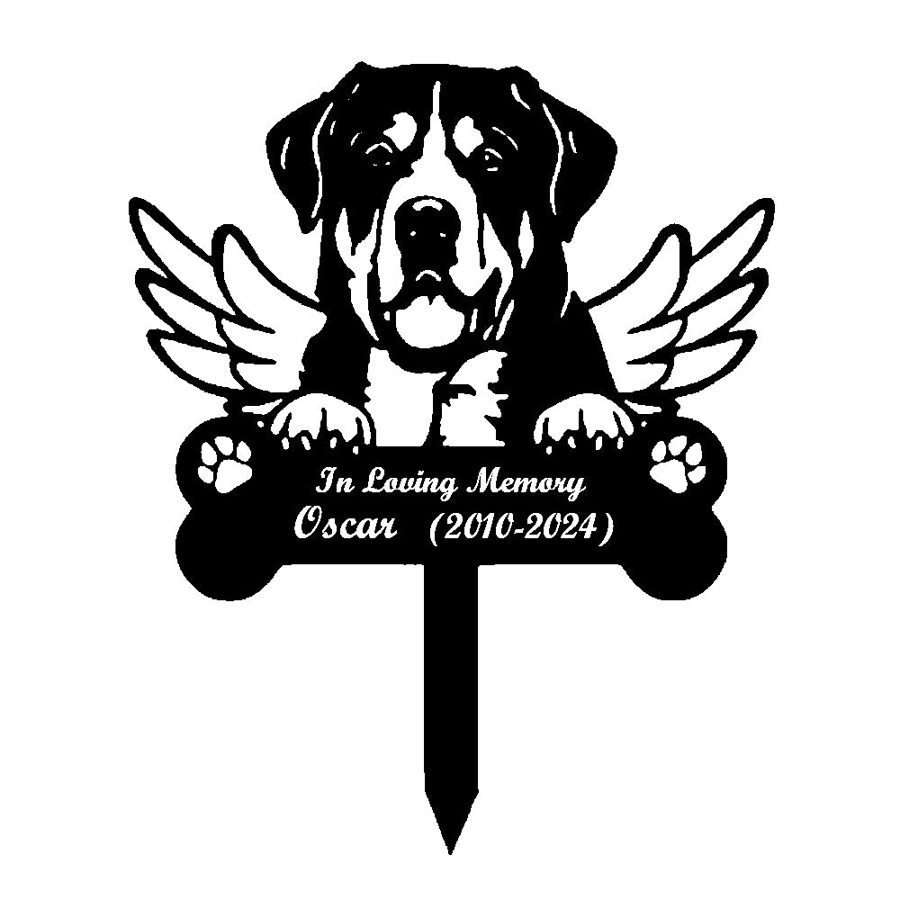 Grosser Schweizer Sennenhund Individueller Gedenkpfahl mit Flügeln