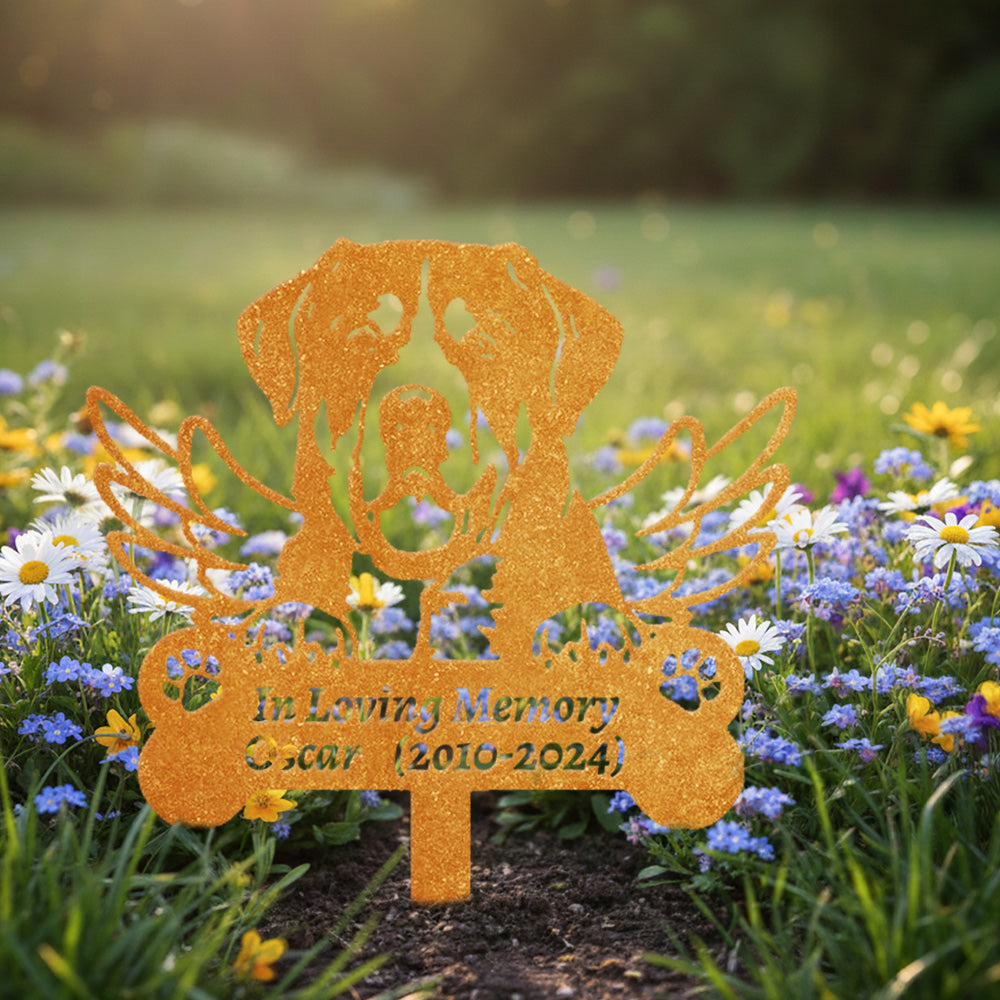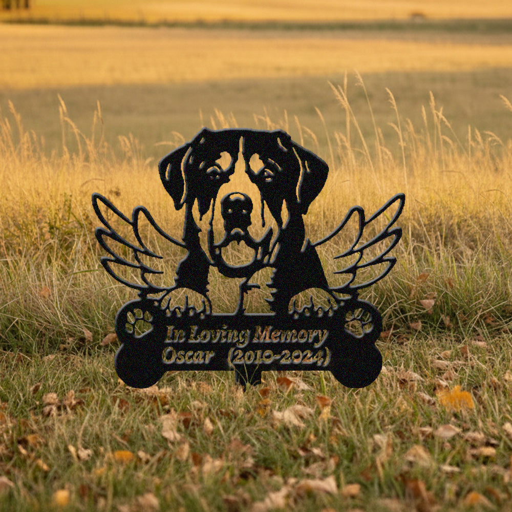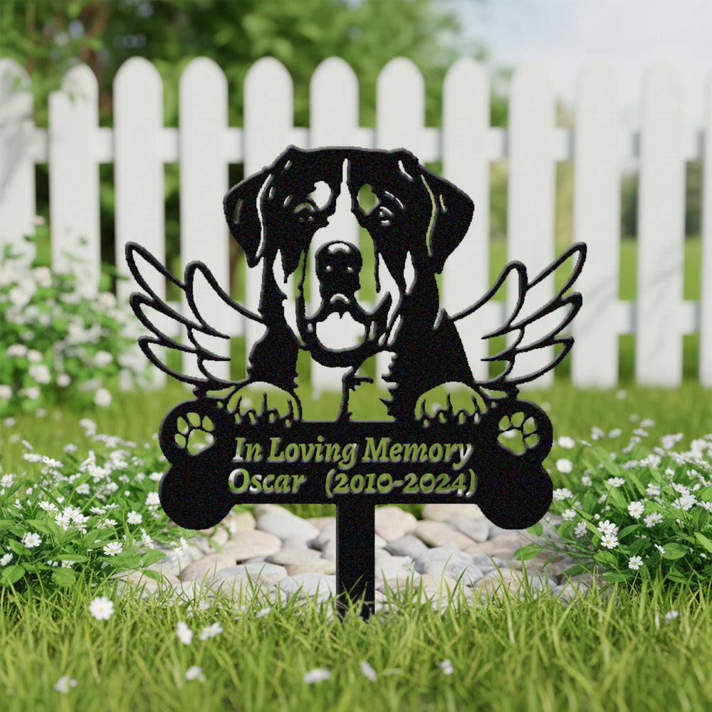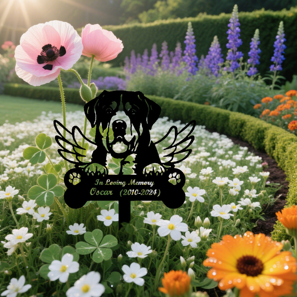 Grosser Schweizer Sennenhund Individueller Gedenkpfahl mit Flügeln