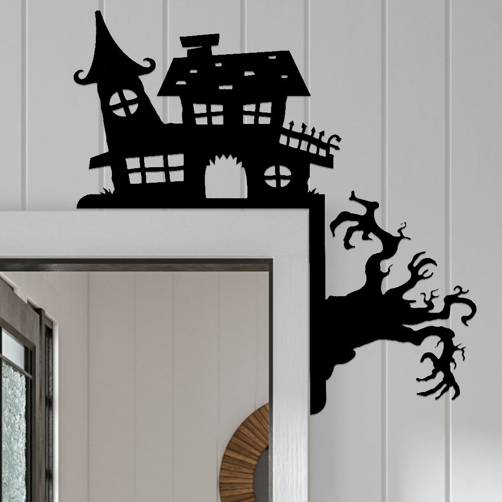 Halloween Schloss und Verdorrter Baum Metall Tür Eckschild