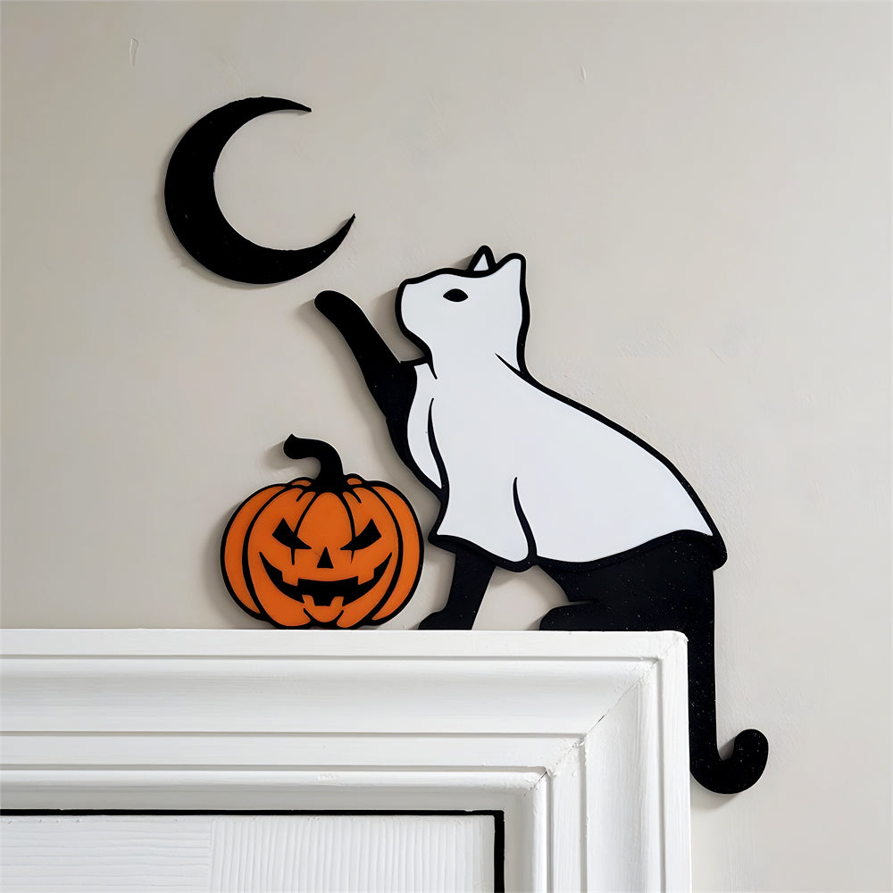 Halloween Weiße Katze und Mond Metall Tür Eckschild