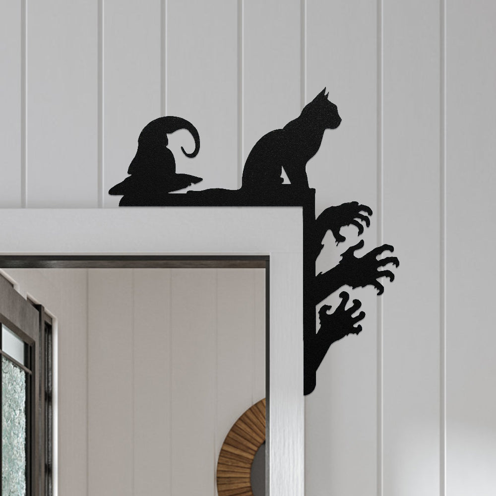 Personalisierte Halloween Katze und Hut Metall Tür Eckschild