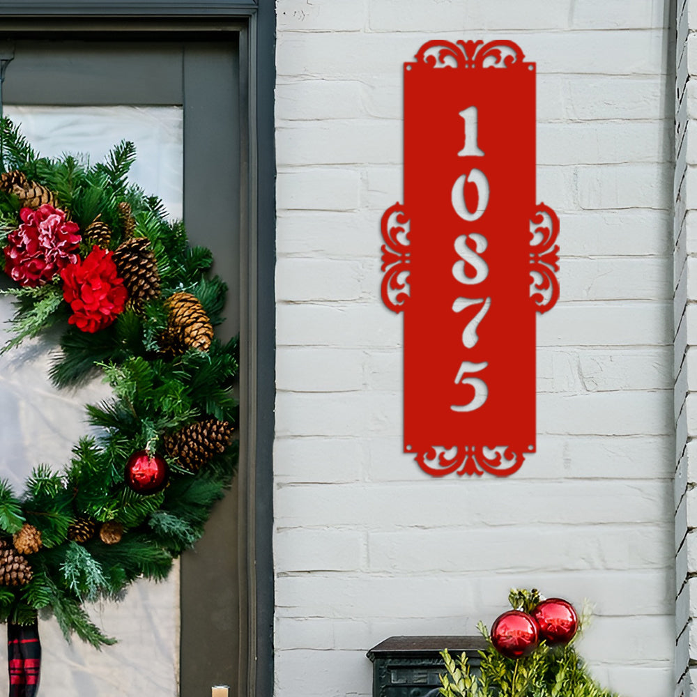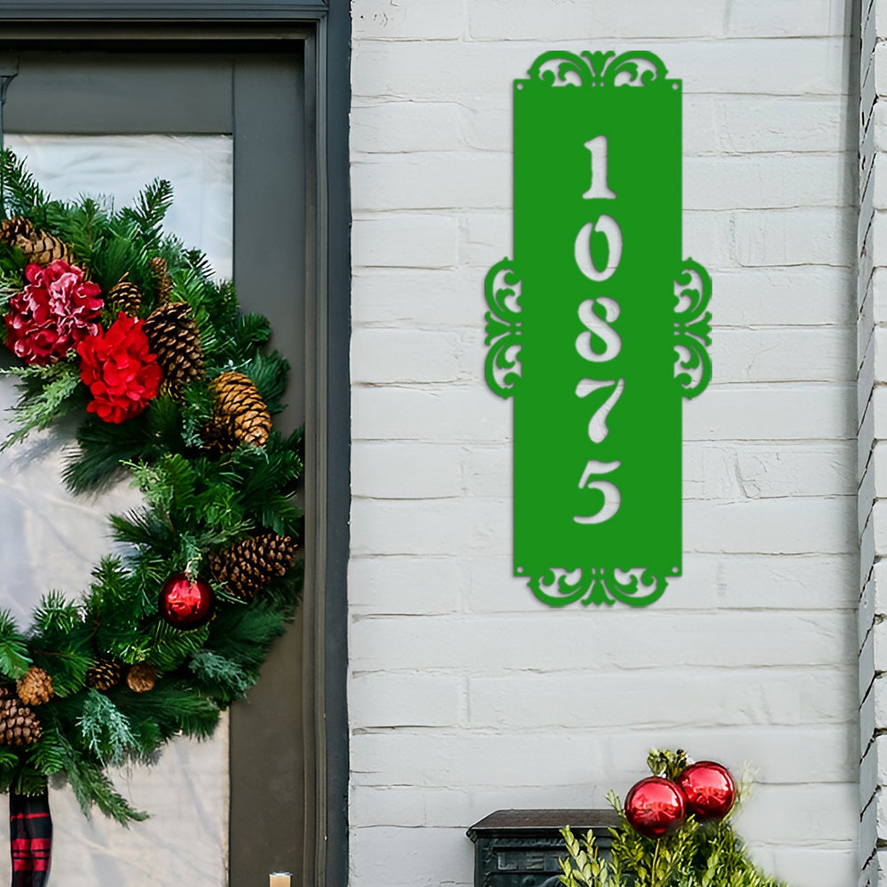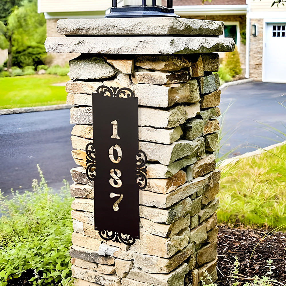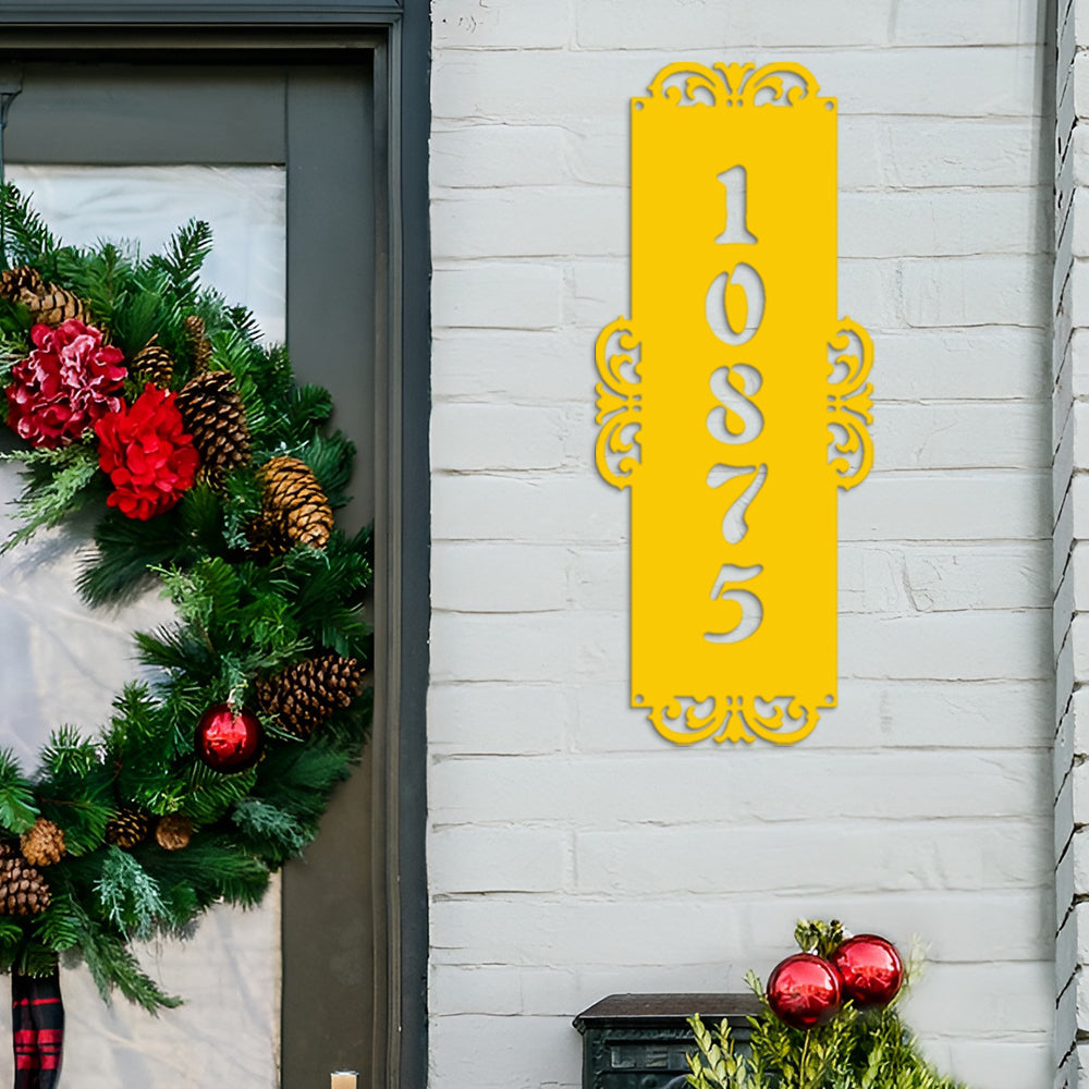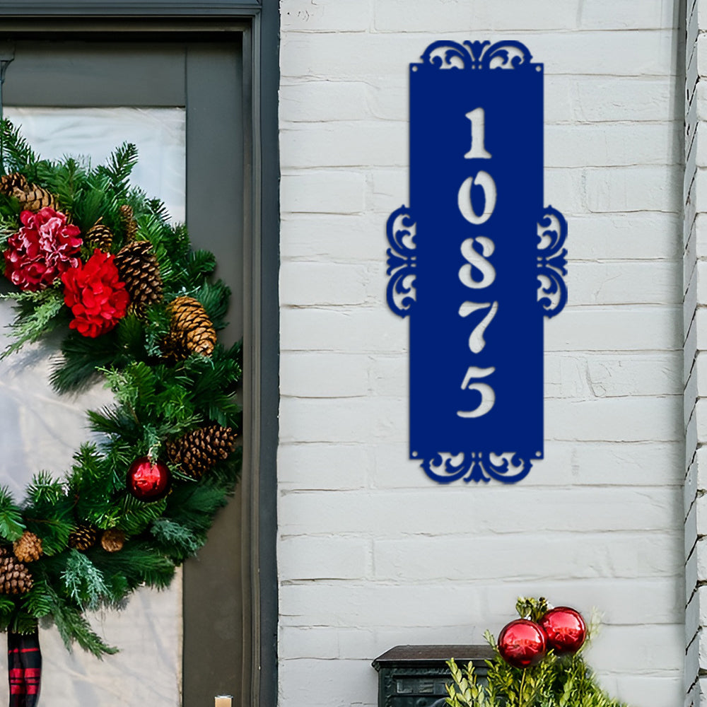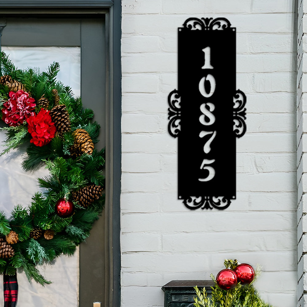 Schickes Vertikales Nummer Monogramm Adressmetallschild Individuell