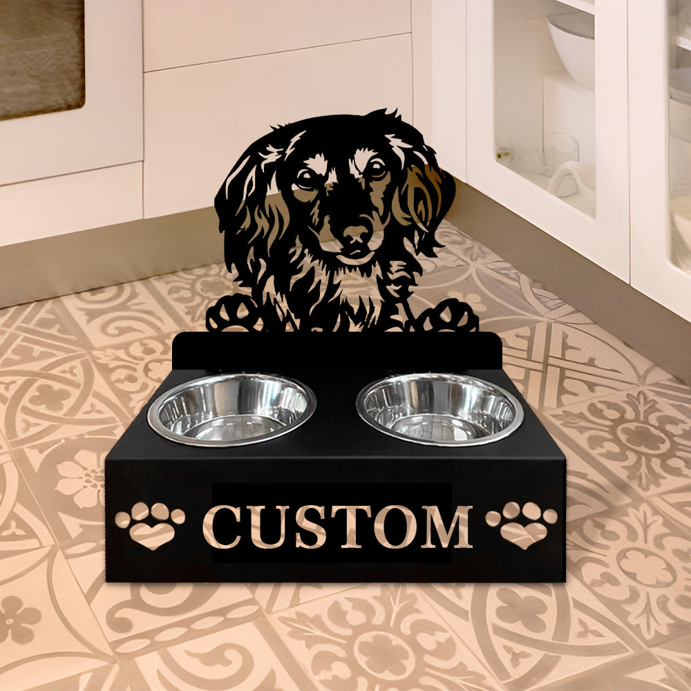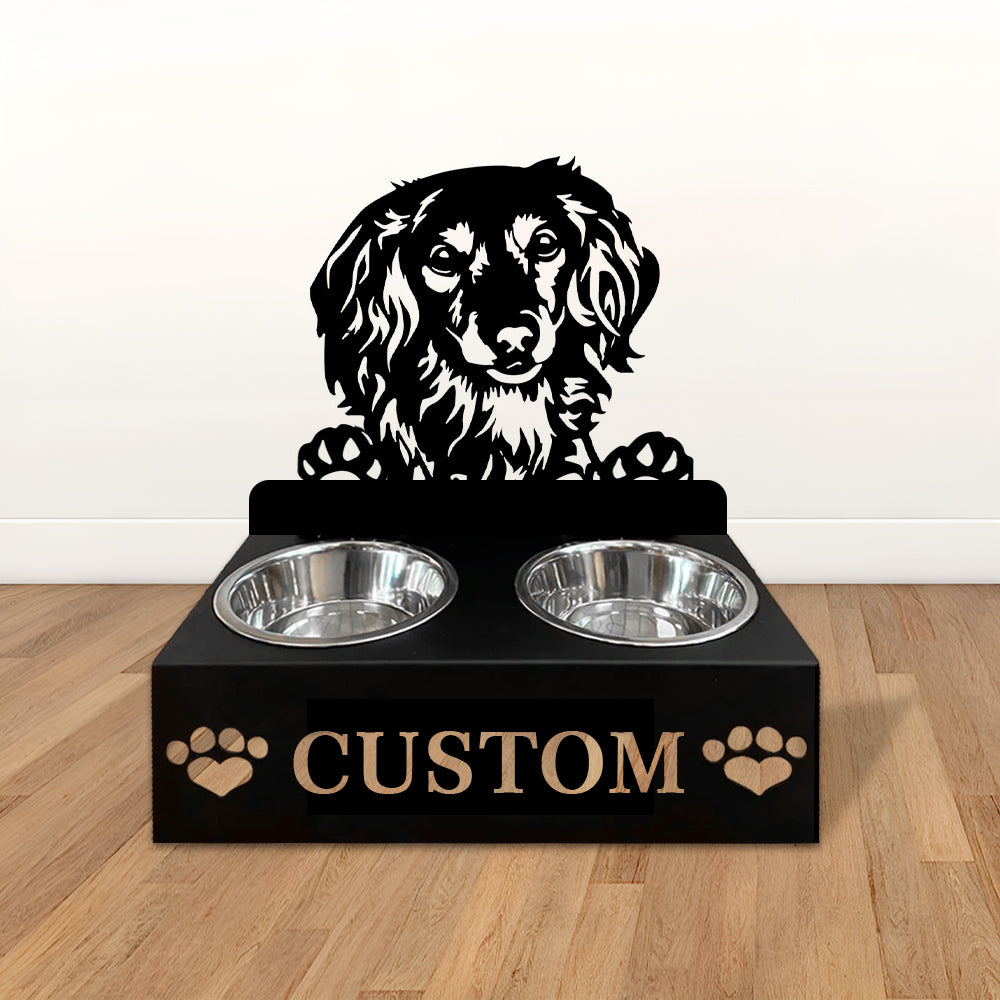 Langhaariger Dackel Personalisierter Name Haustier Futterschüssel Halter
