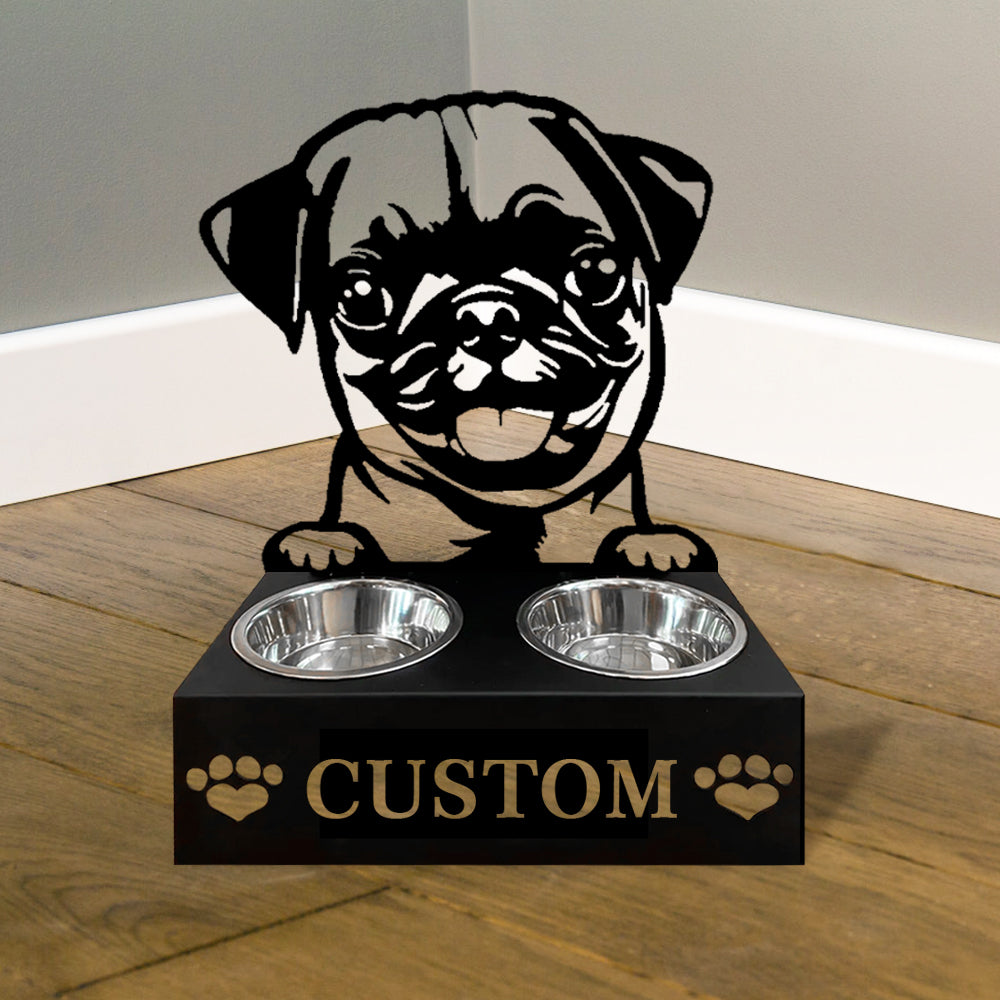 Mops Personalisierter Name Haustier Futterschüssel Halter
