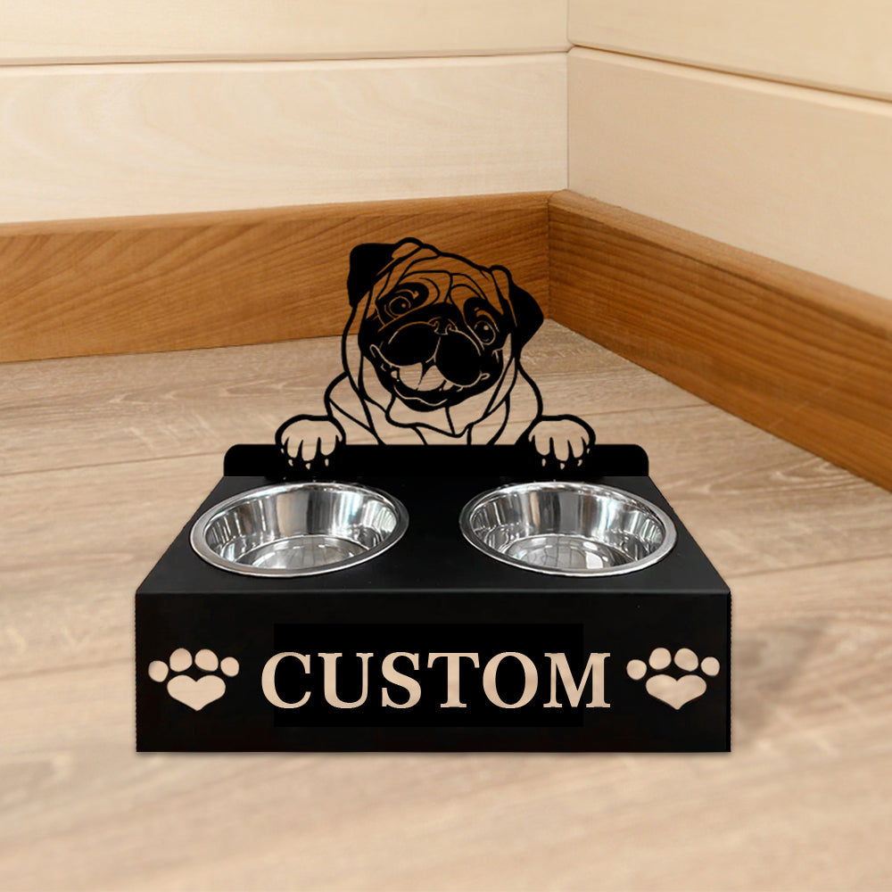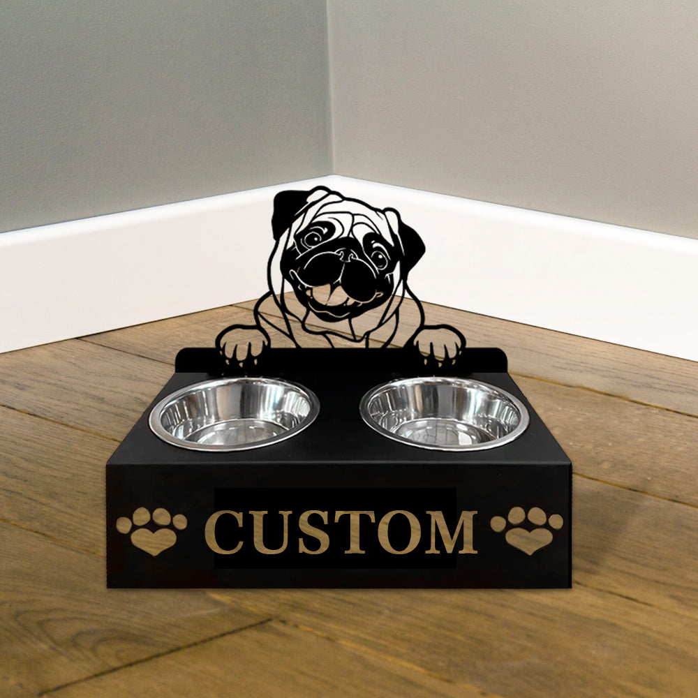 Mops Personalisierter Name Haustier Futterschüssel Halter
