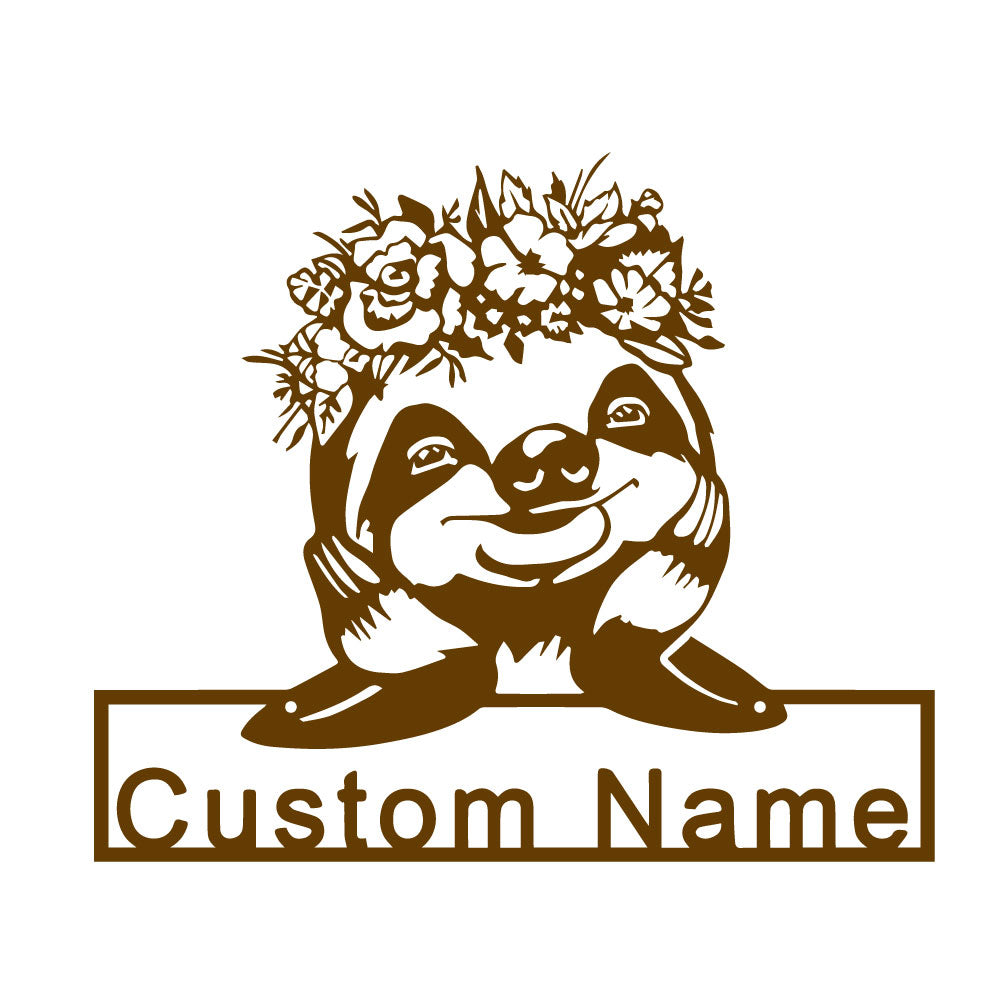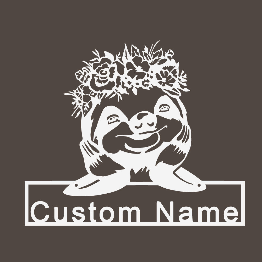 Blumen Faultier Metall Kunst Personalisiert Metall Name Schild