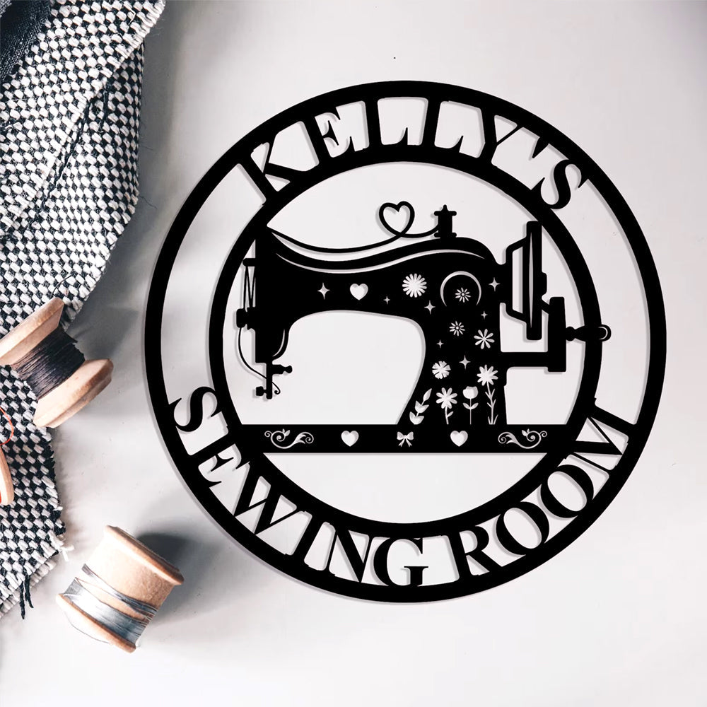 Nähmaschinen Metallschild Mit Individuellen Namen Metall Wandkunst