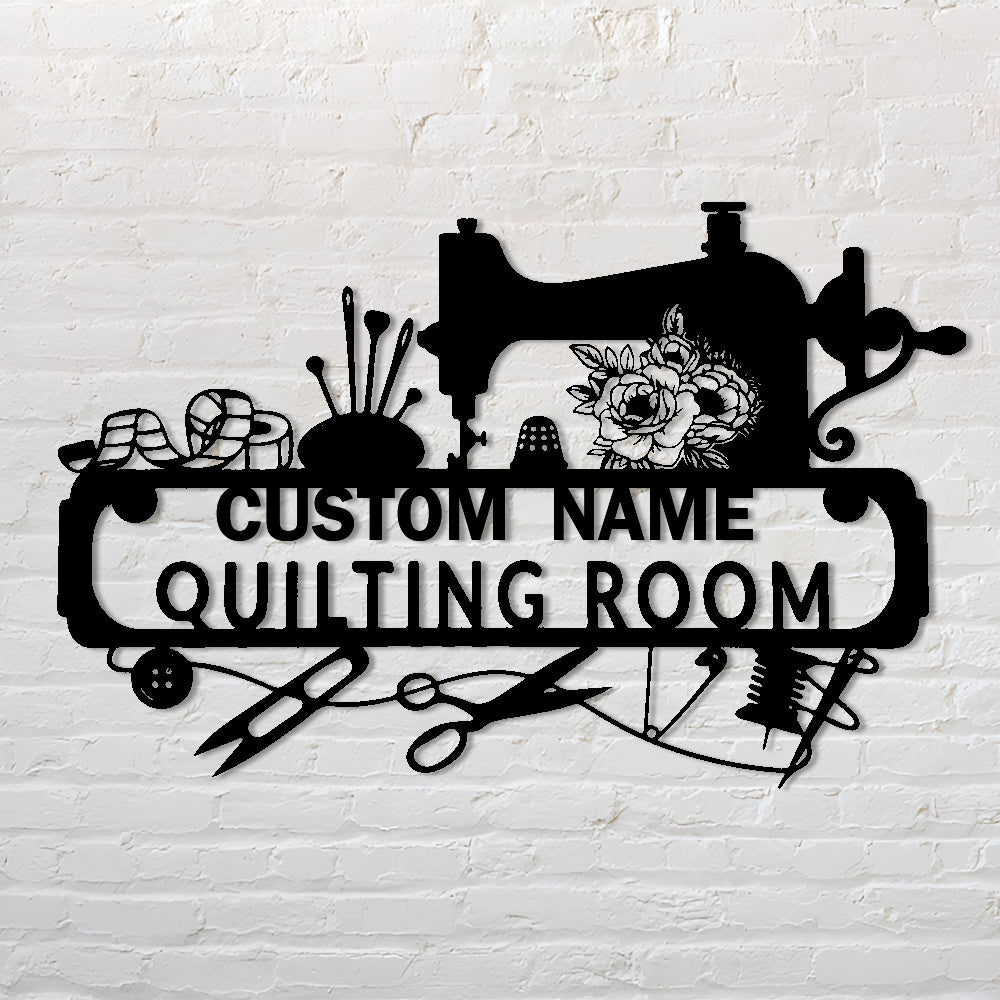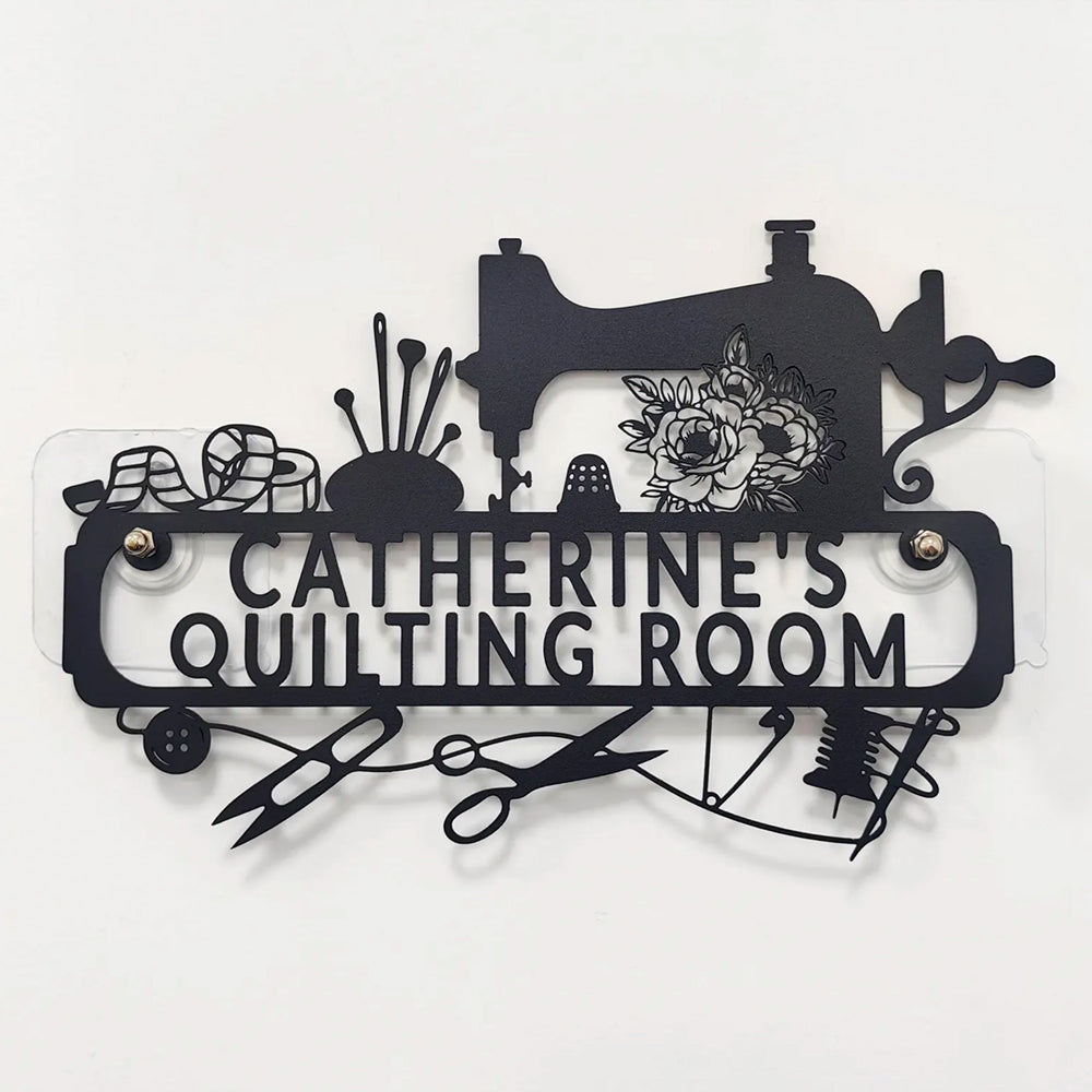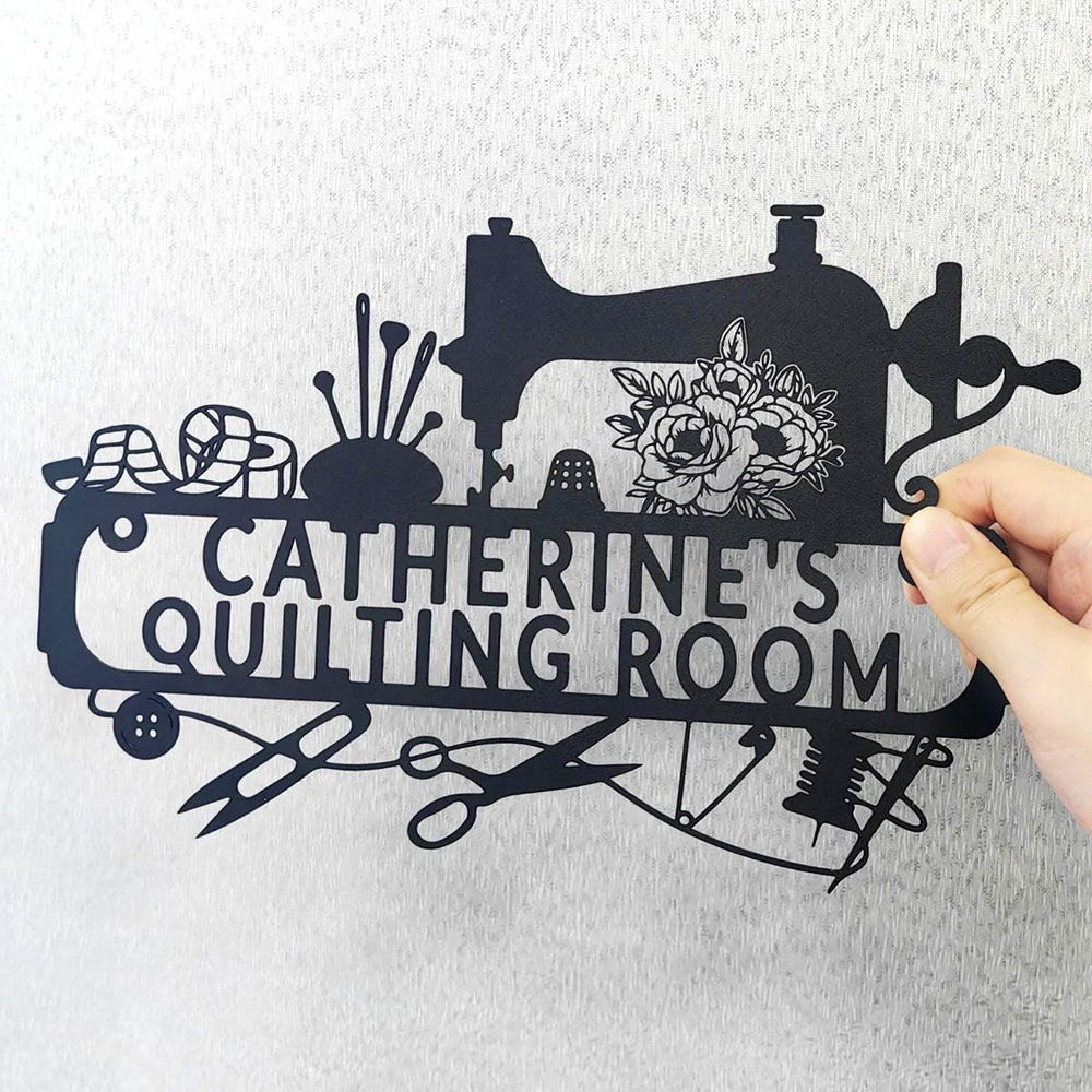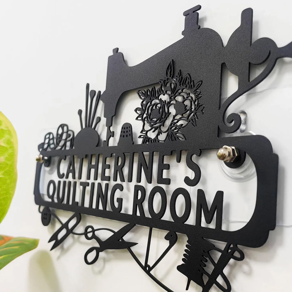 Personalisiertes Nähatelierschild mit Blume Metall Wanddekoration