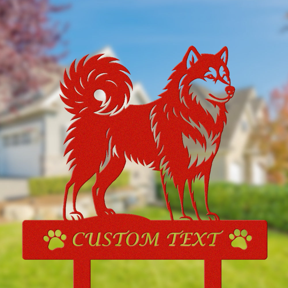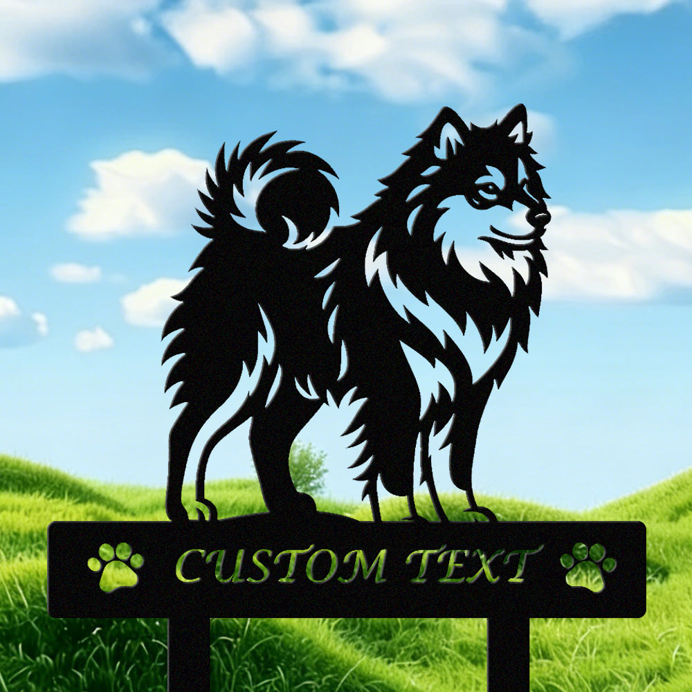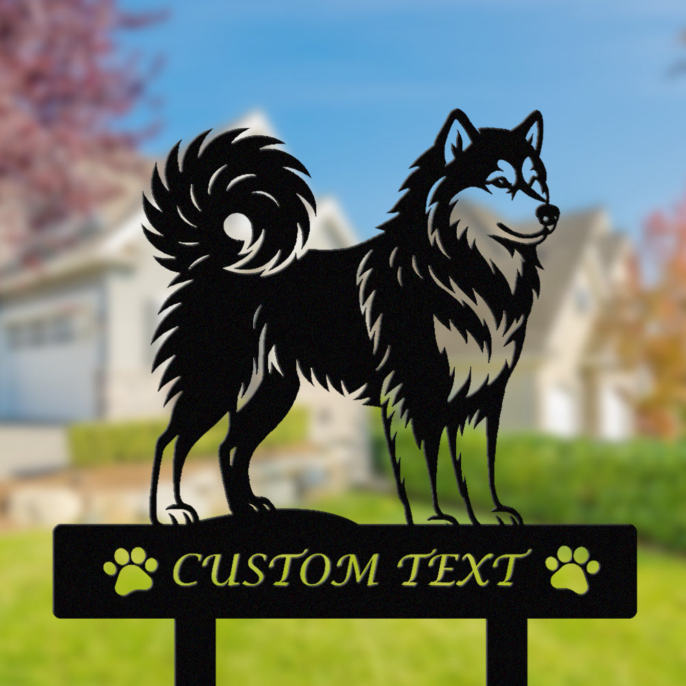 Finnischer Lapphund Individuell gestalteter Hunde Silhouette Metall Gartenpfahl