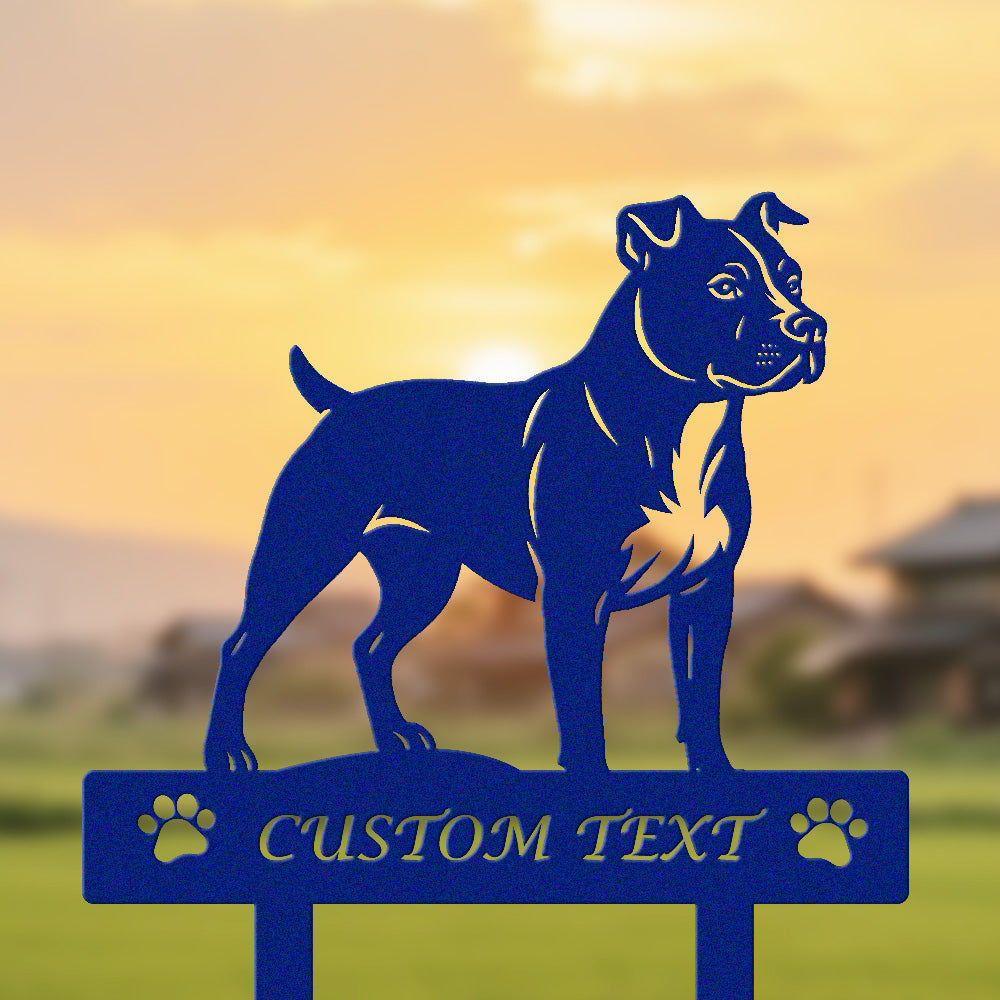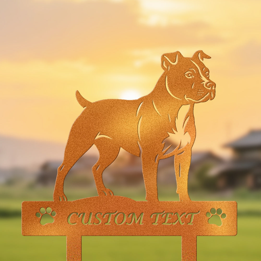 Amerikanischer Staffordshire Terrier Individuell gestalteter Hunde Silhouette Metall Gartenpfahl