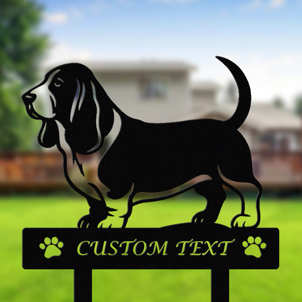 Basset Hound Individuell gestalteter Hunde Silhouette Metall Gartenpfahl