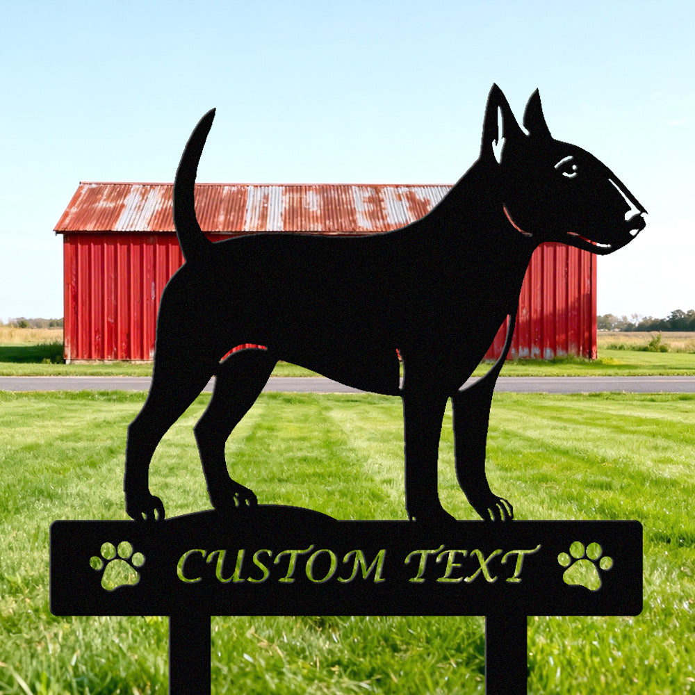 Bullterrier Individuell gestalteter Hunde Silhouette Metall Gartenpfahl