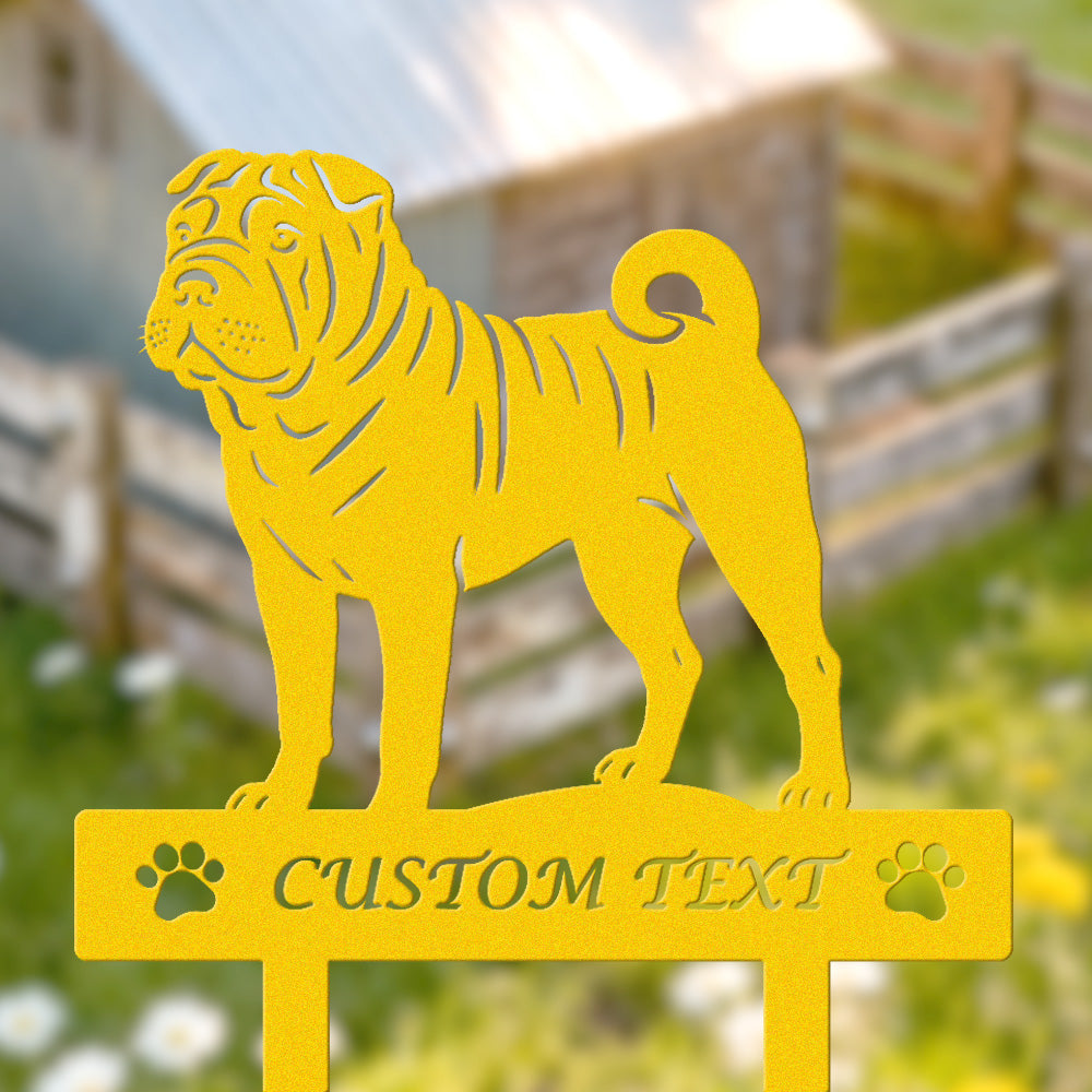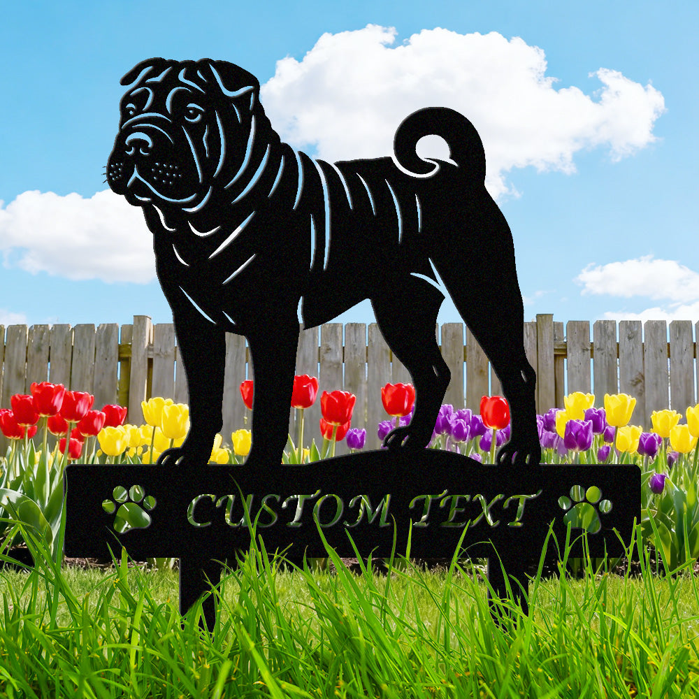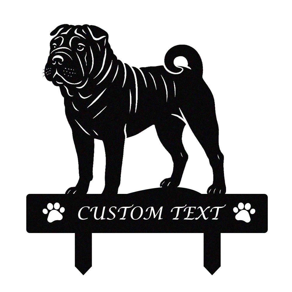 Chinesischer Shar-Pei Individuell gestalteter Hunde Silhouette Metall Gartenpfahl