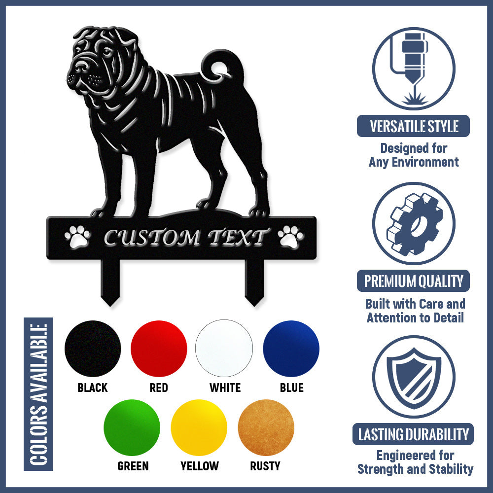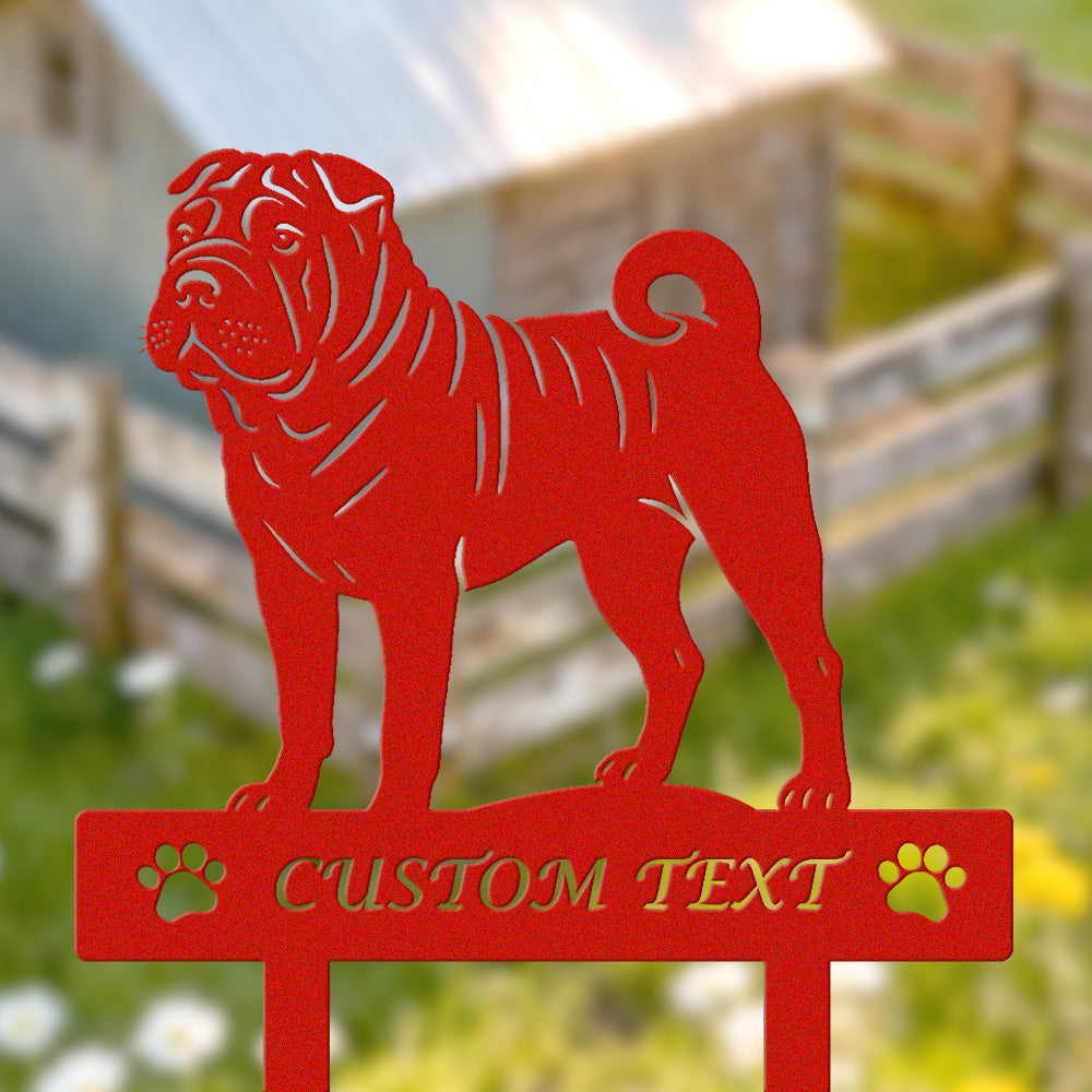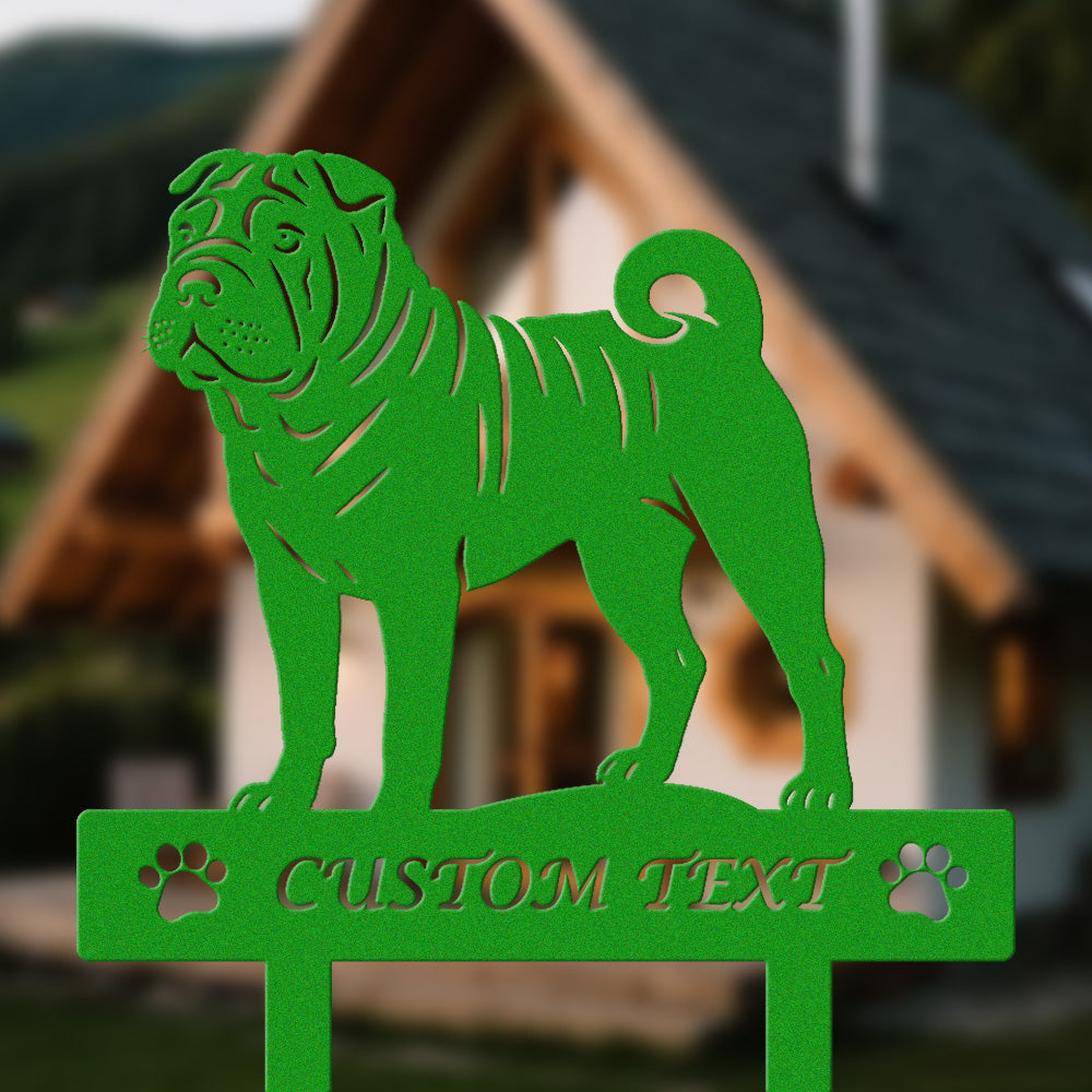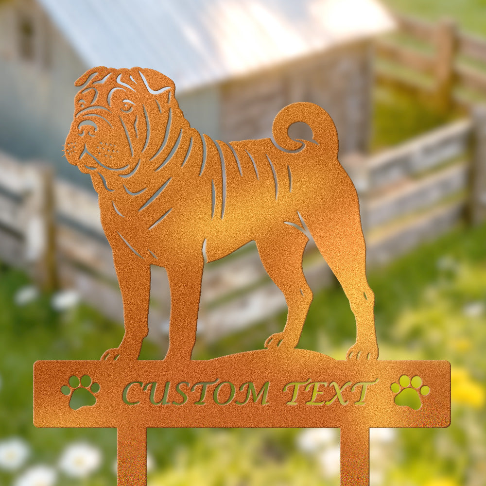 Chinesischer Shar-Pei Individuell gestalteter Hunde Silhouette Metall Gartenpfahl