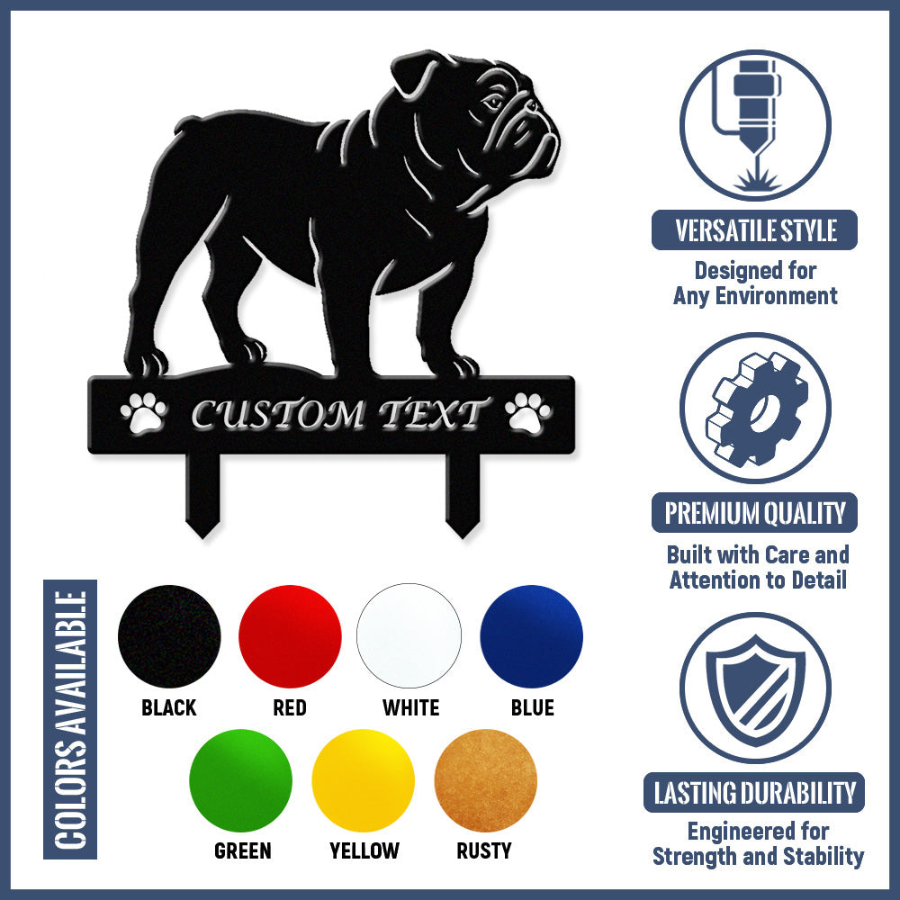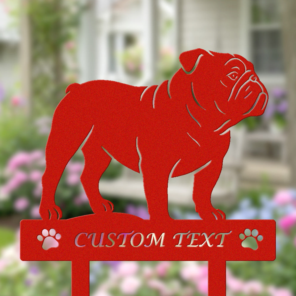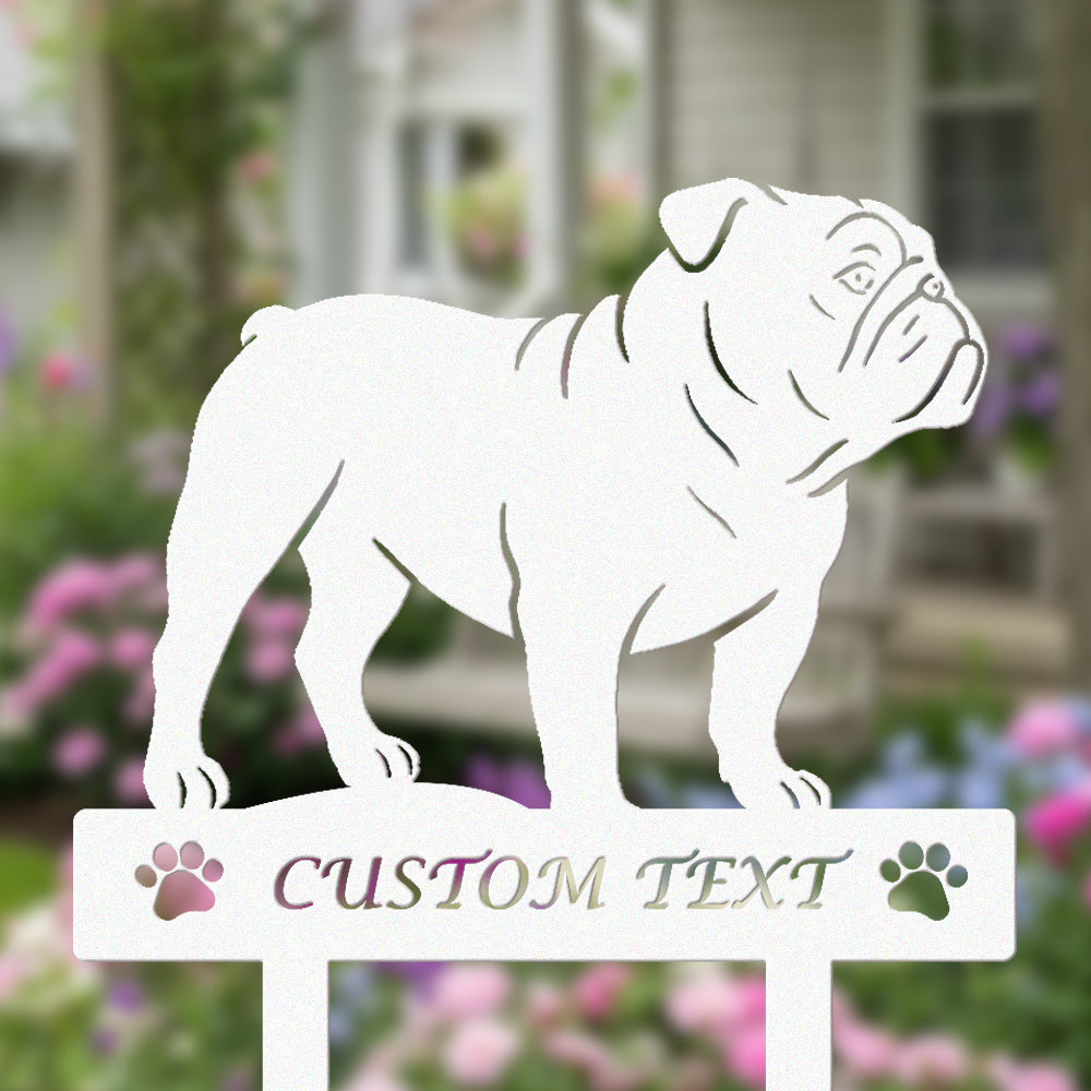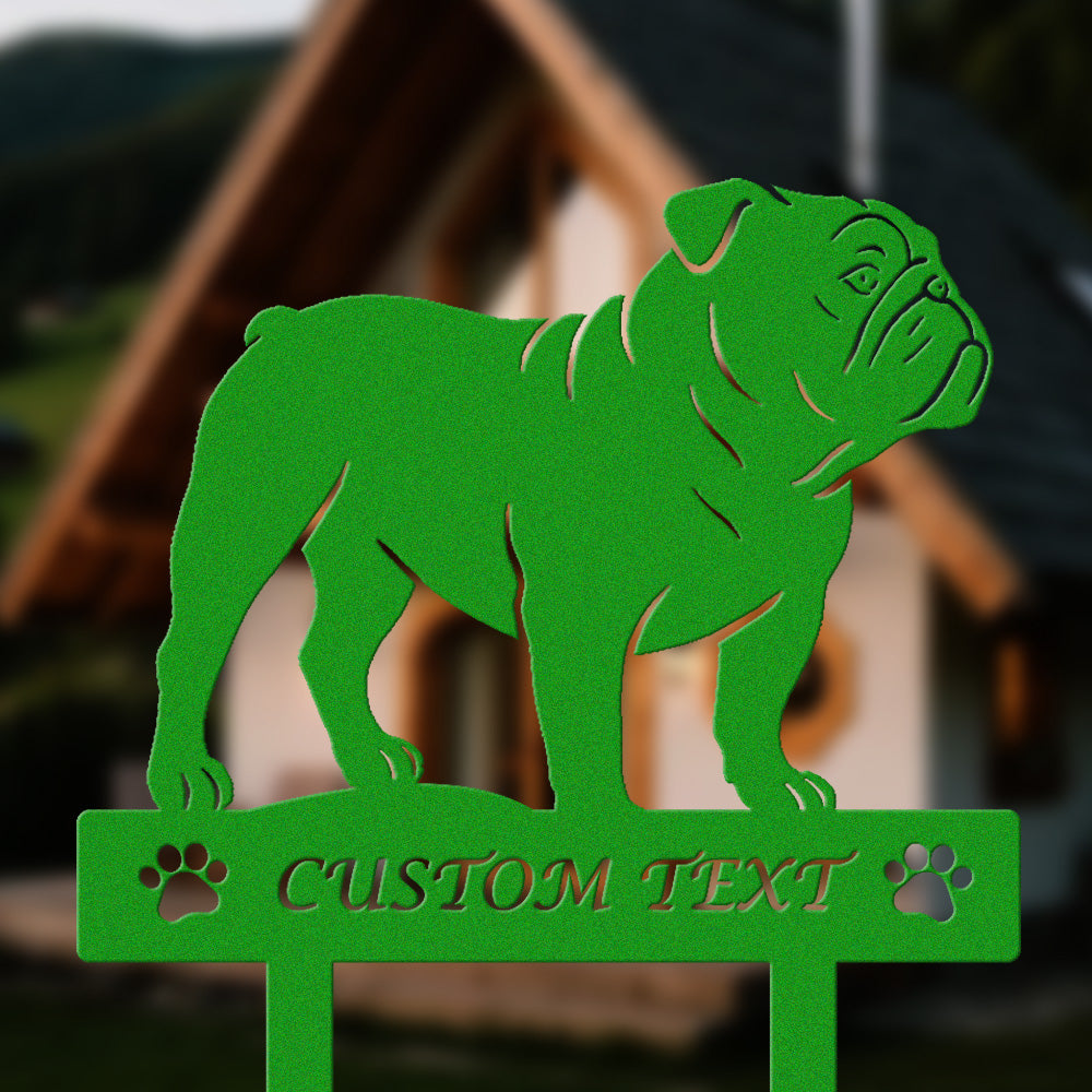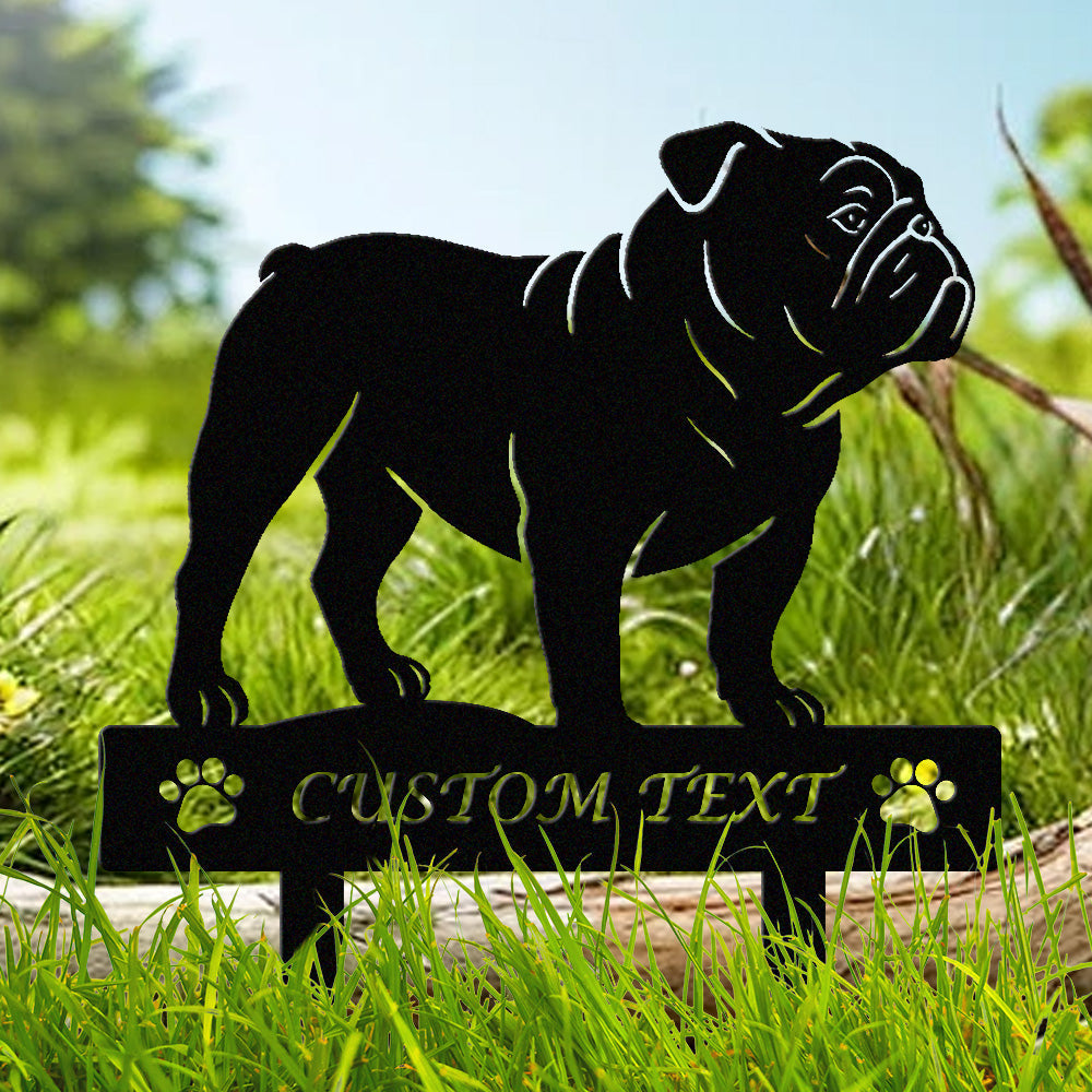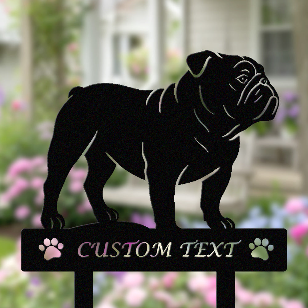Englische Bulldogge Individuell gestalteter Hunde Silhouette Metall Gartenpfahl