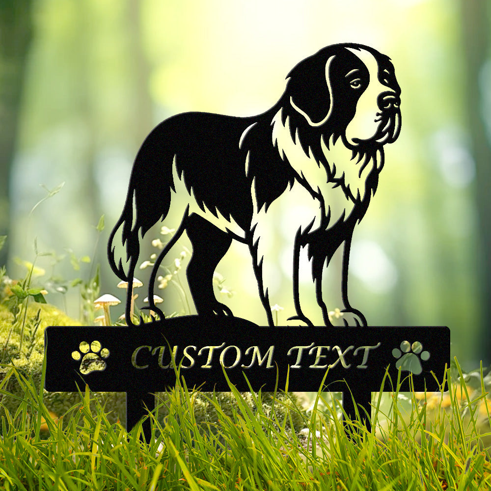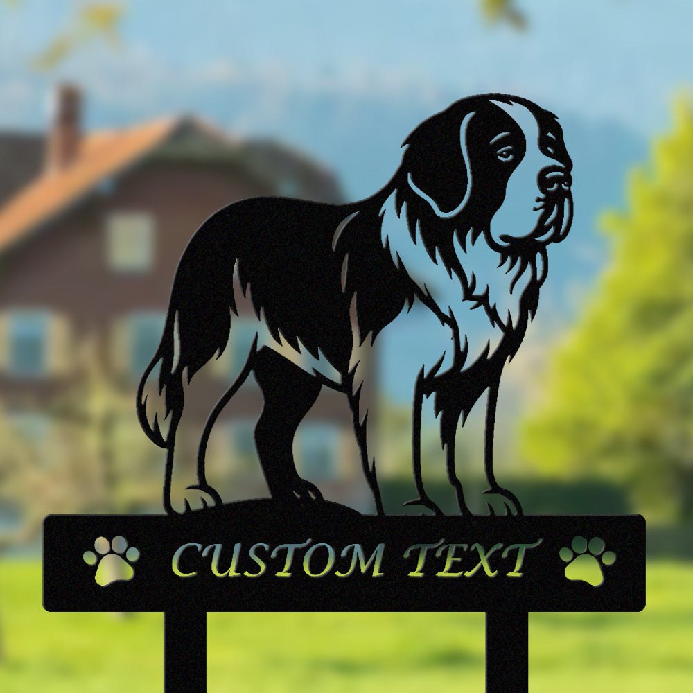 Bernhardiner Individuell gestalteter Hunde Silhouette Metall Gartenpfahl