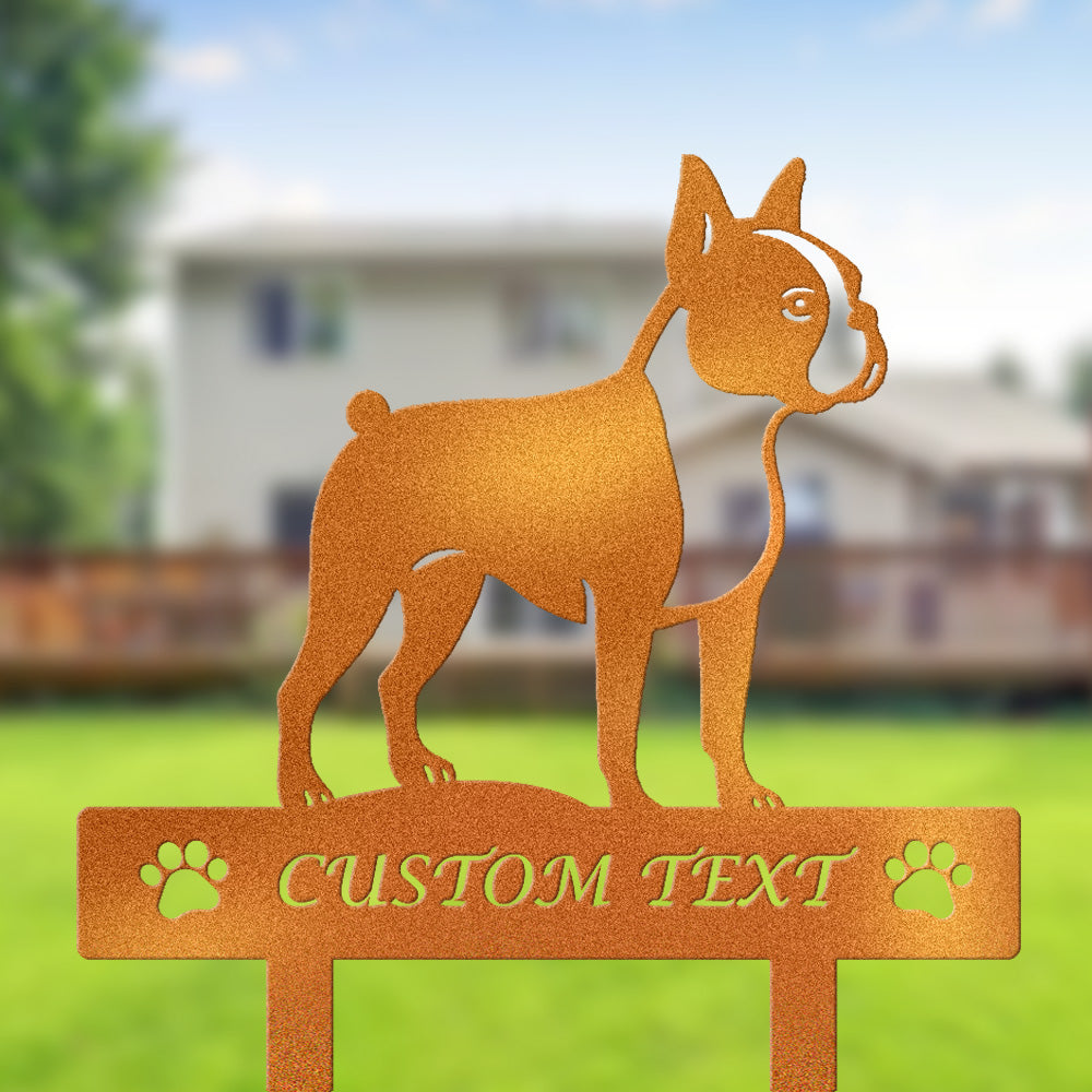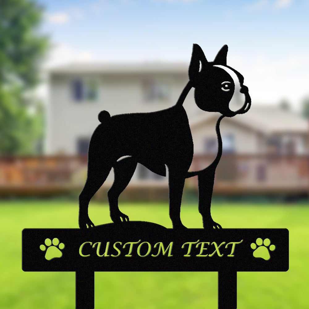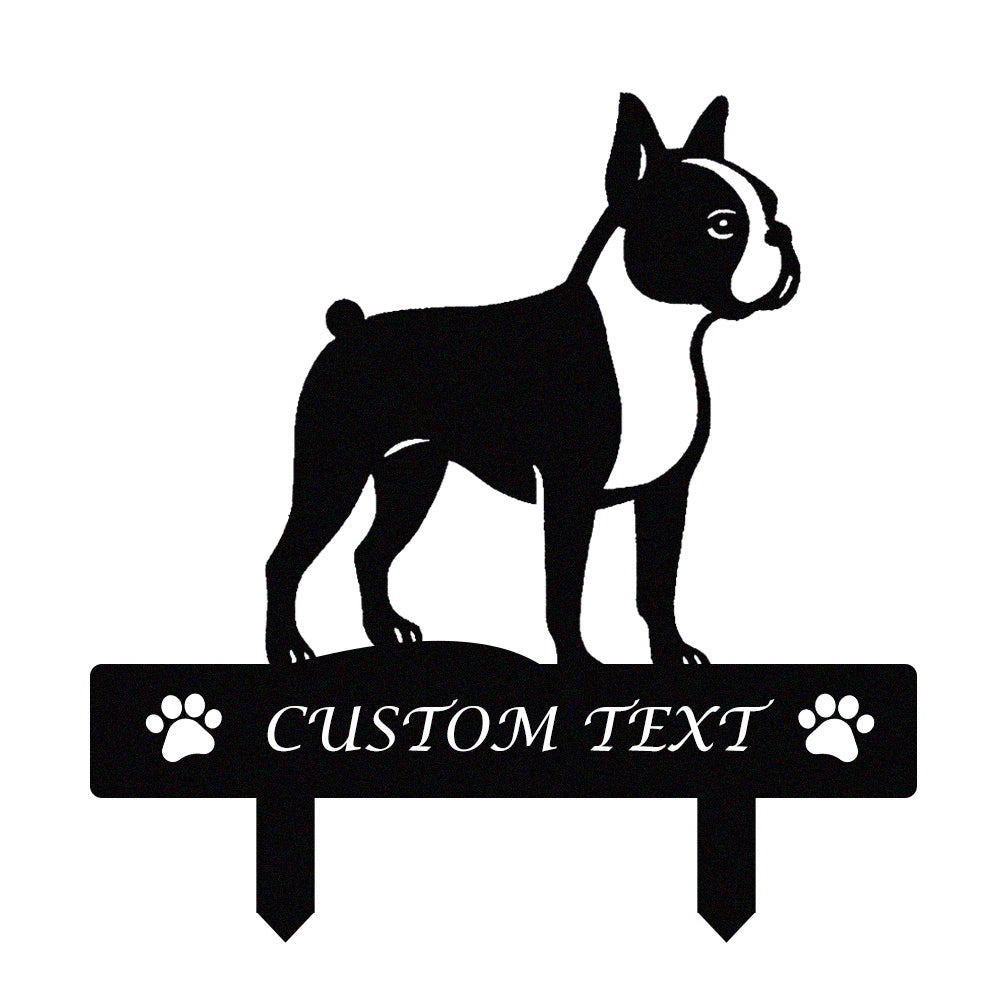 Boston Terrier Individuell gestalteter Hunde Silhouette Metall Gartenpfahl