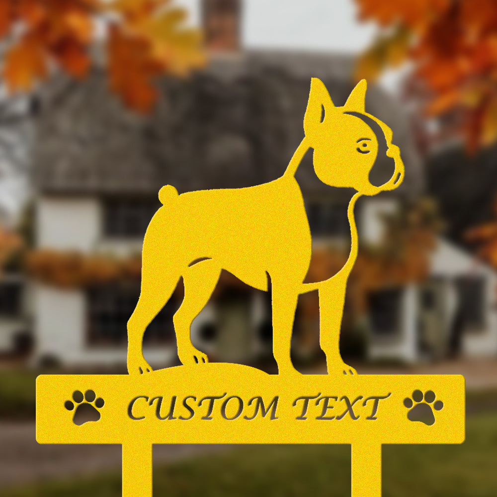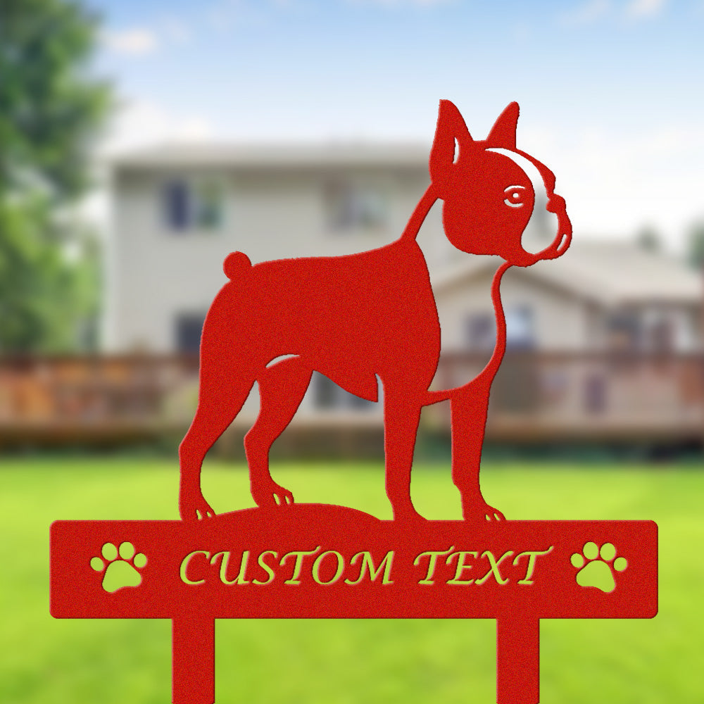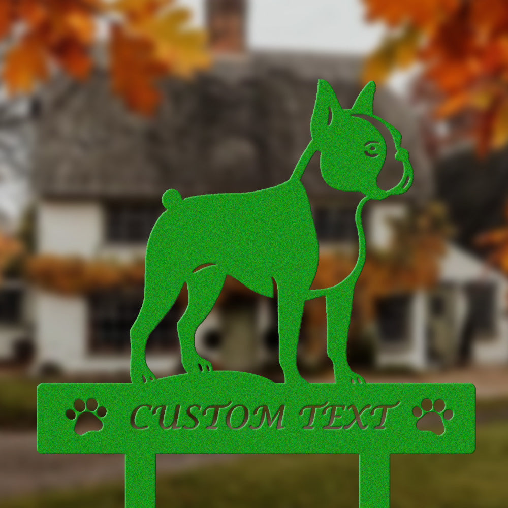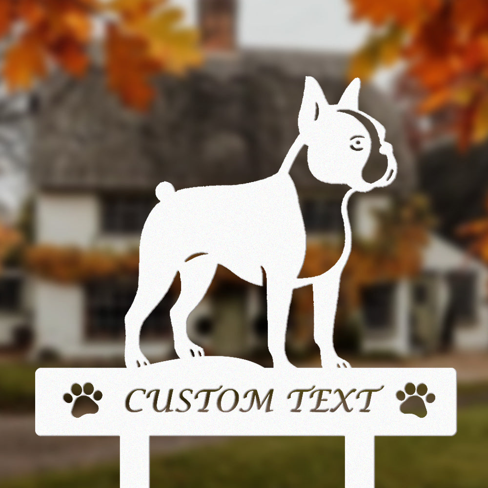 Boston Terrier Individuell gestalteter Hunde Silhouette Metall Gartenpfahl