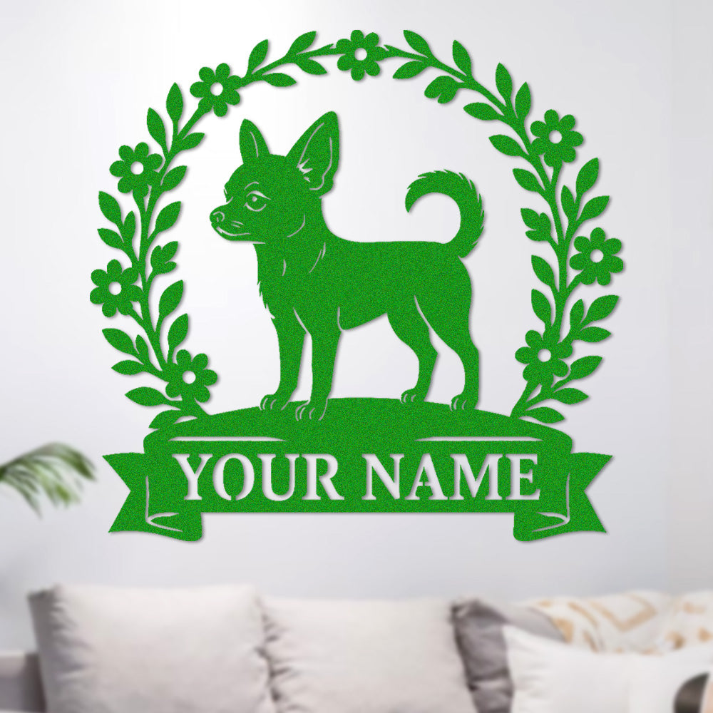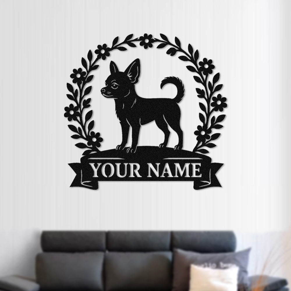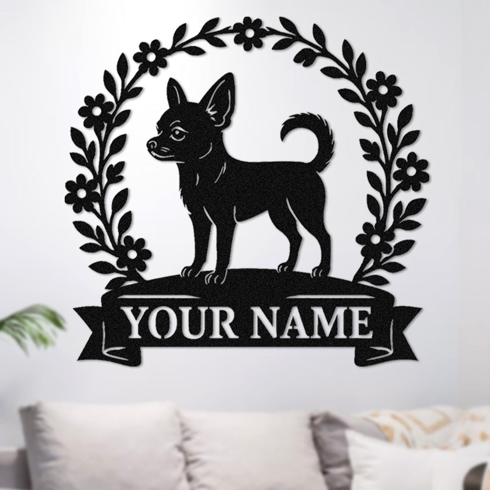 Kurzhaarig Chihuahua Kranz Metallwandkunst für Hundeliebhaber Personalisiertes Metall Gedenkschild