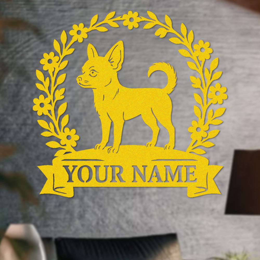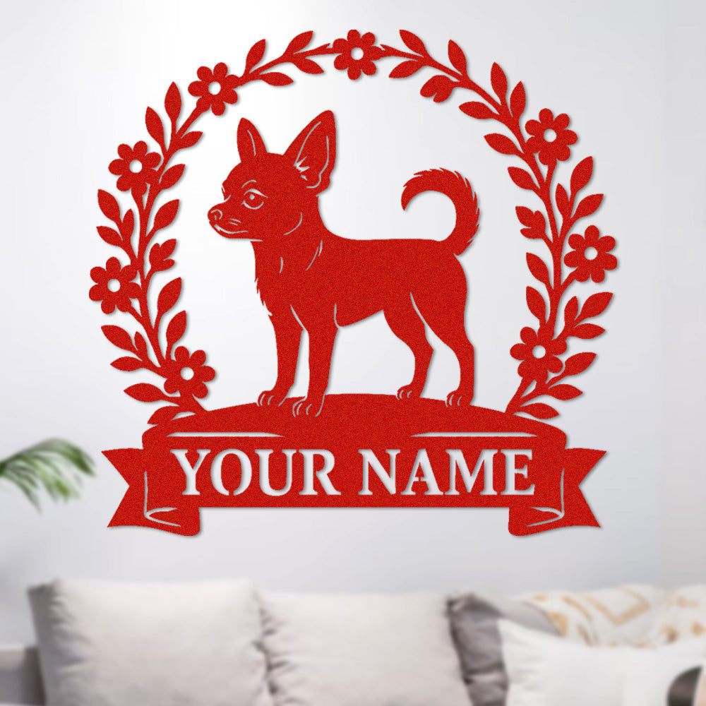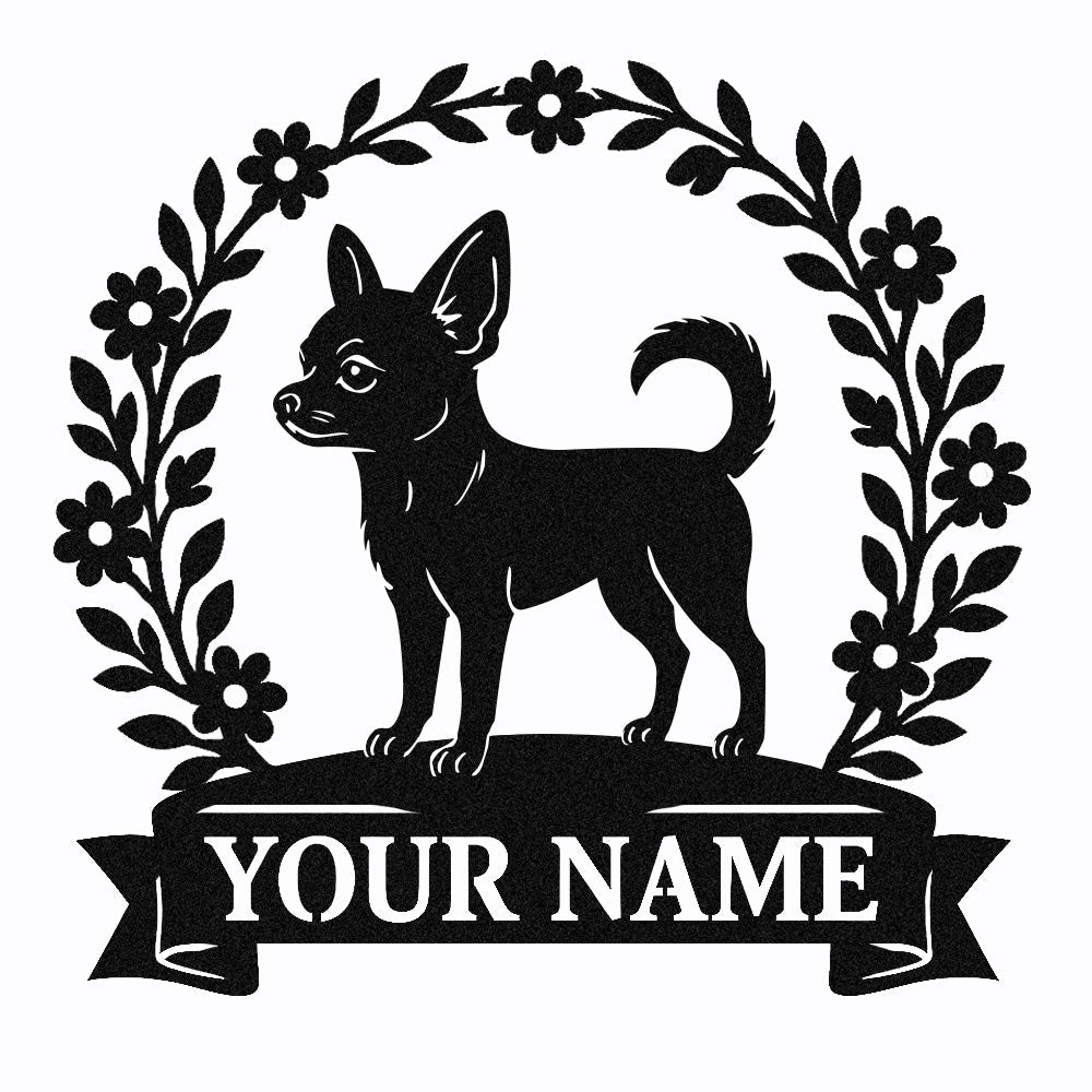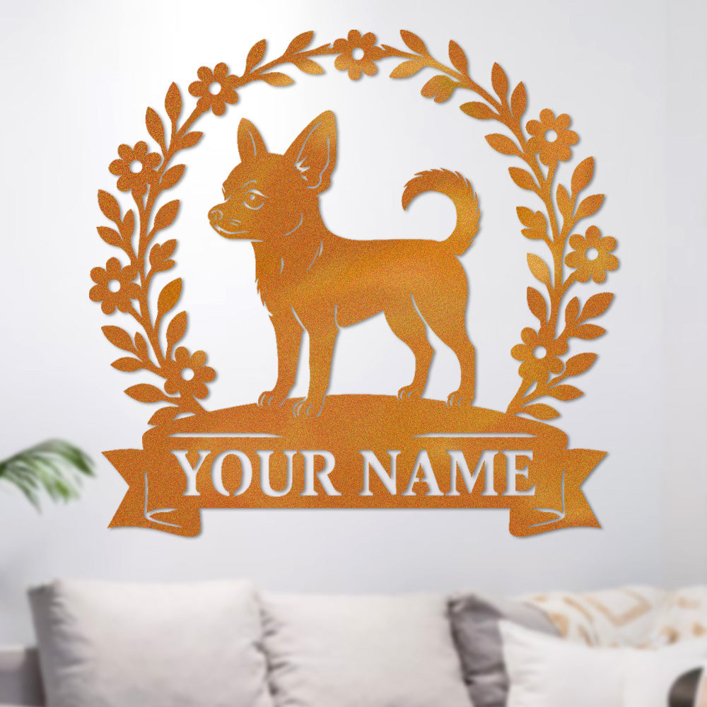 Kurzhaarig Chihuahua Kranz Metallwandkunst für Hundeliebhaber Personalisiertes Metall Gedenkschild