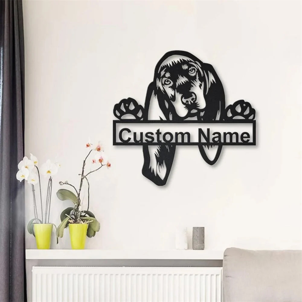 Schwarz-Brauner Coonhound Hund Metall Kunst Personalisiert Metall Name Schild