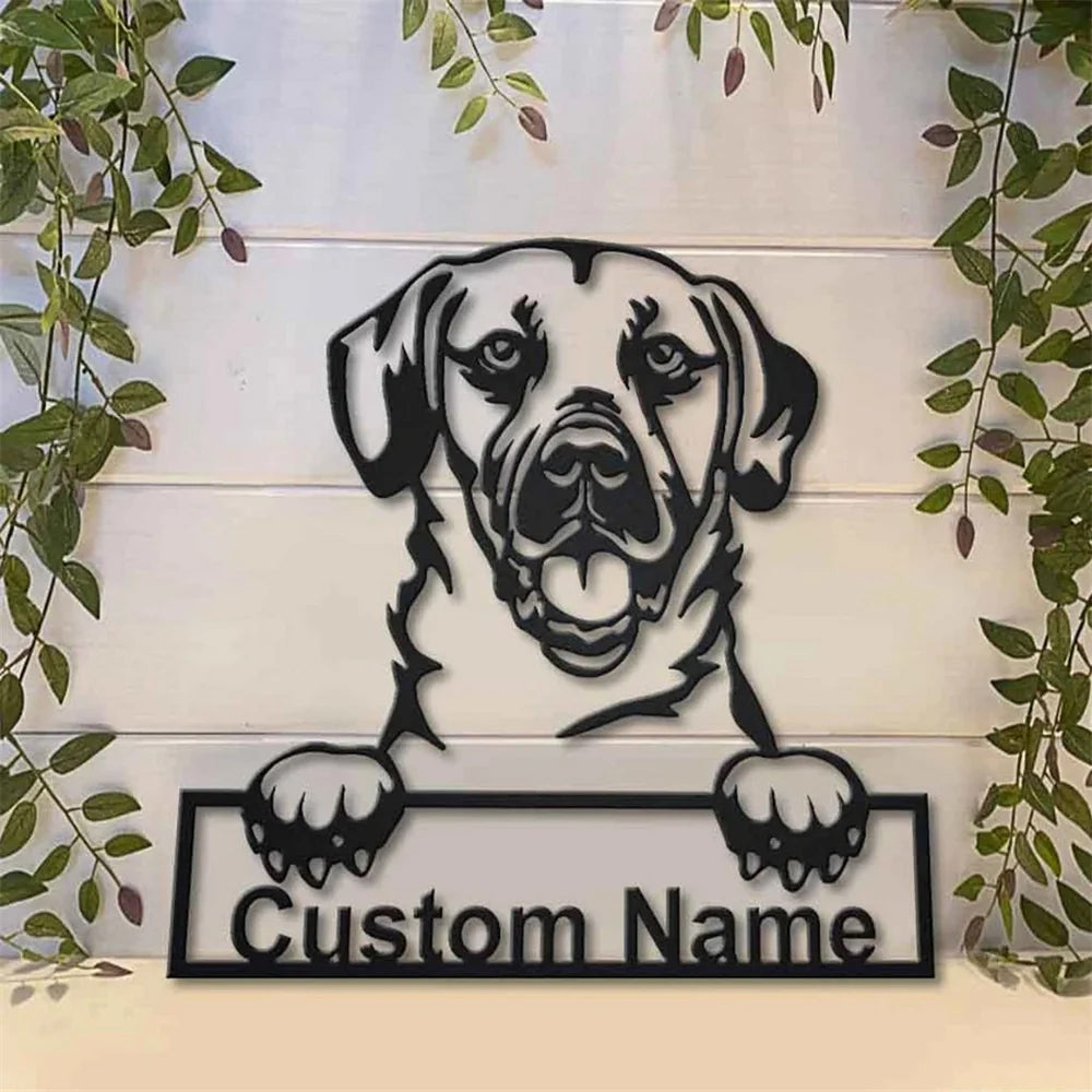 Schwarzer Maulwurfshund Metall Kunst Personalisiert Metall Name Schild