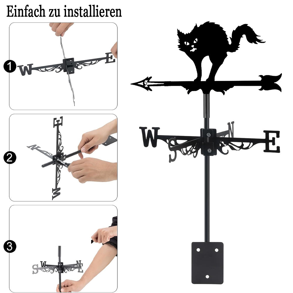 🌙Windrichtungsanzeiger: Unser einzigartiges Punktkontaktdesign sorgt dafür, dass sich unsere Windfahne leicht im Wind dreht. Der einzigartige Drehpunkt sorgt für eine reibungslose und störungsfreie Drehung. Zeigt die Richtung der Windgeschwindigkeit an.