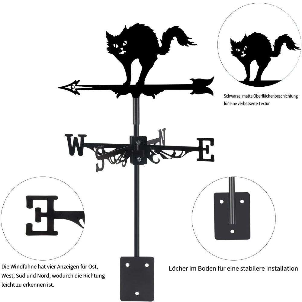 💕Kreatives Design: Diese Wetterfahne ist aus hochwertigem Edelstahl gefertigt. Mit stilvollen geraden Linien und satinierten schwarzen Oberflächen. Diese Wetterfahne aus rostfreiem Eisen ist mit exquisiten Mustern verziert.
