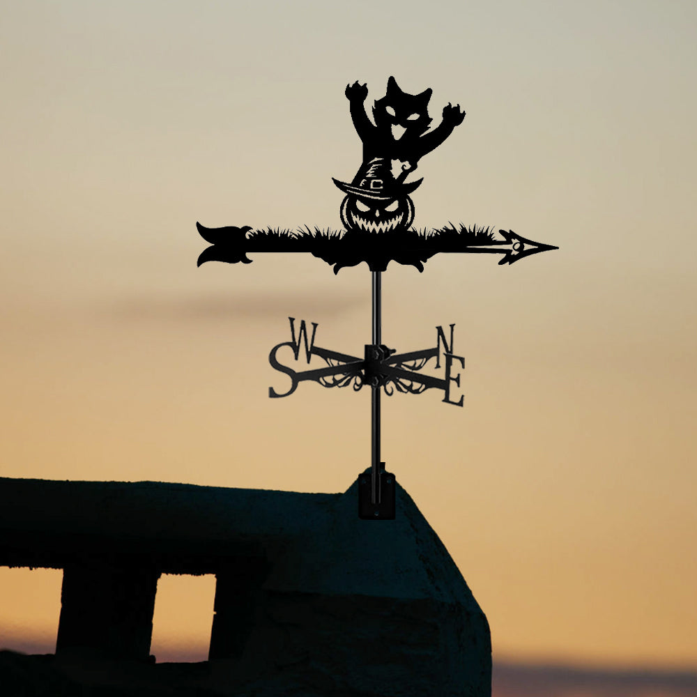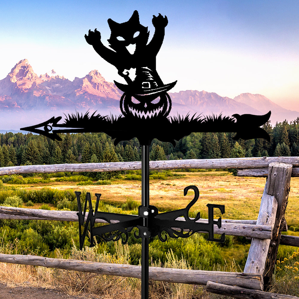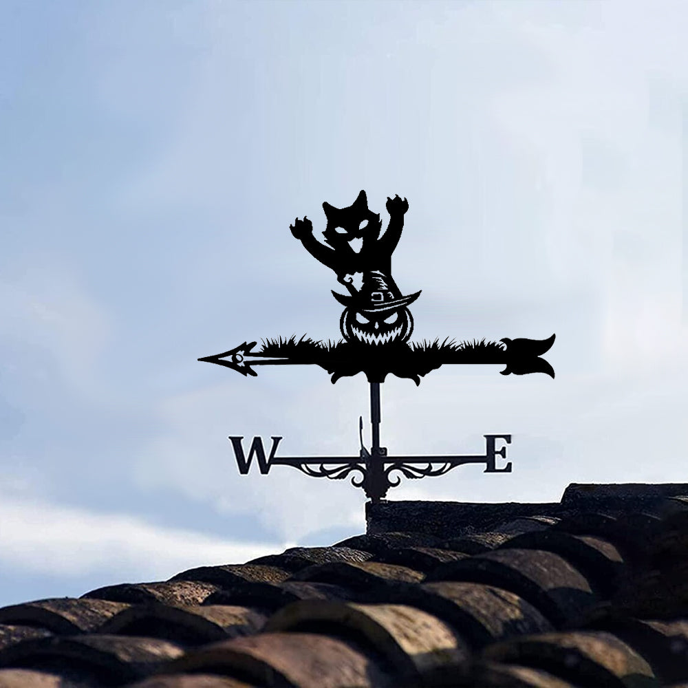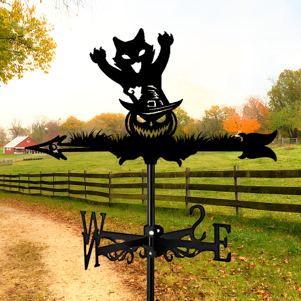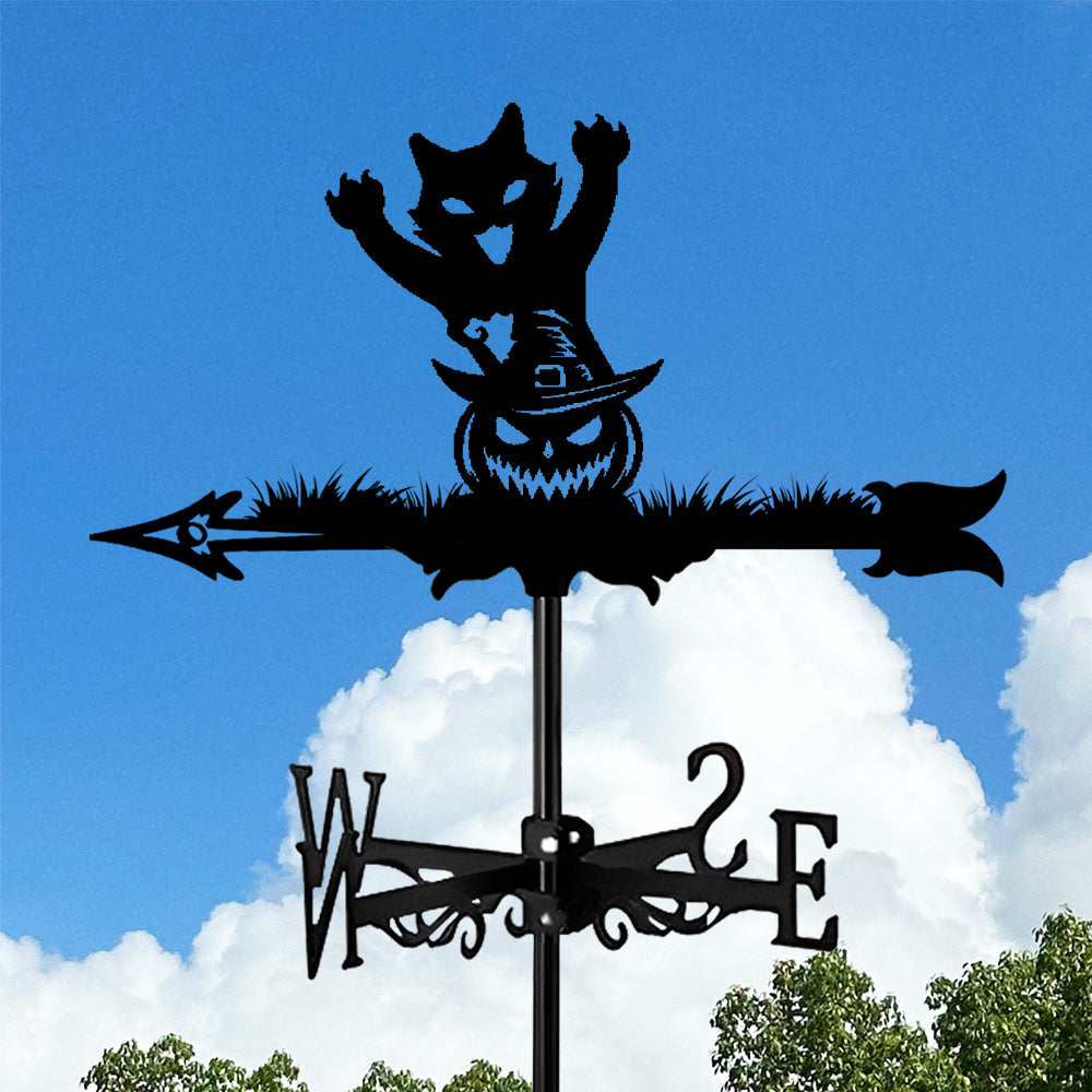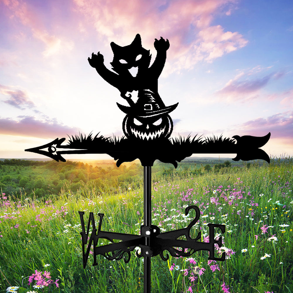 Halloween Kürbis und Katze Edelstahl Wetterfahne
