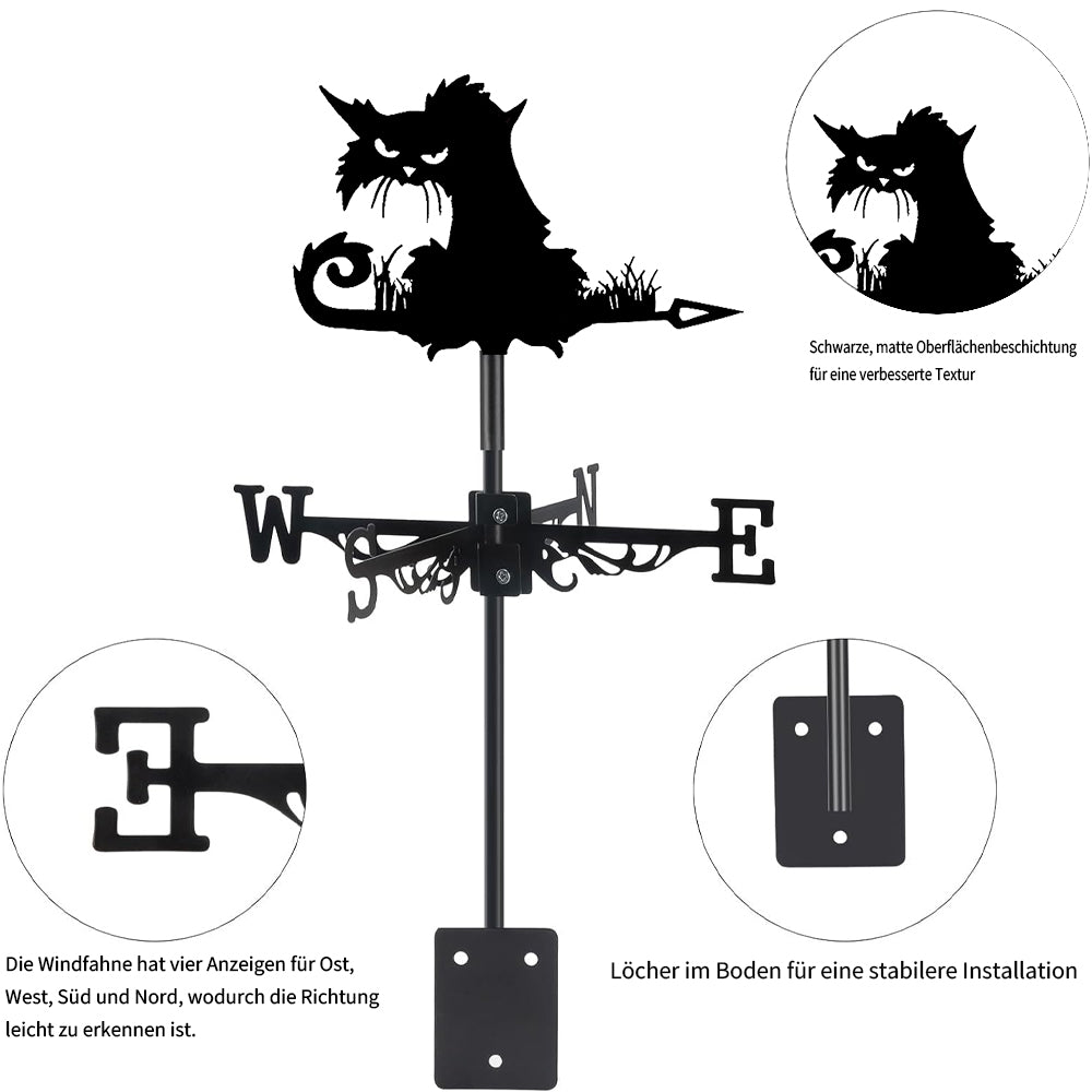 💕Kreatives Design: Diese Wetterfahne ist aus hochwertigem Edelstahl gefertigt. Mit stilvollen geraden Linien und satinierten schwarzen Oberflächen. Diese Wetterfahne aus rostfreiem Eisen ist mit exquisiten Mustern verziert.
