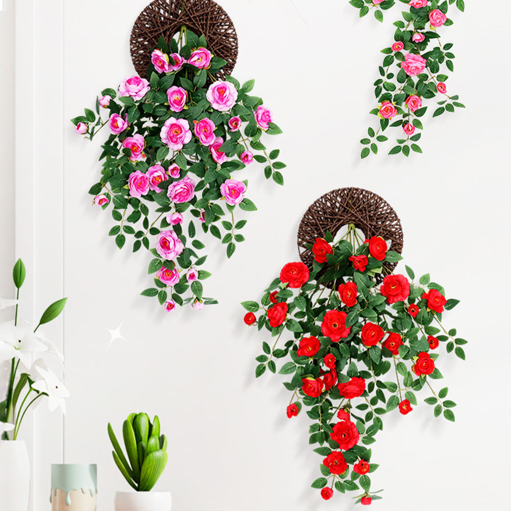Rose Künstliche Hängeblumen Kunstgrün Pflanzen