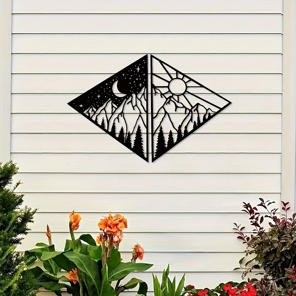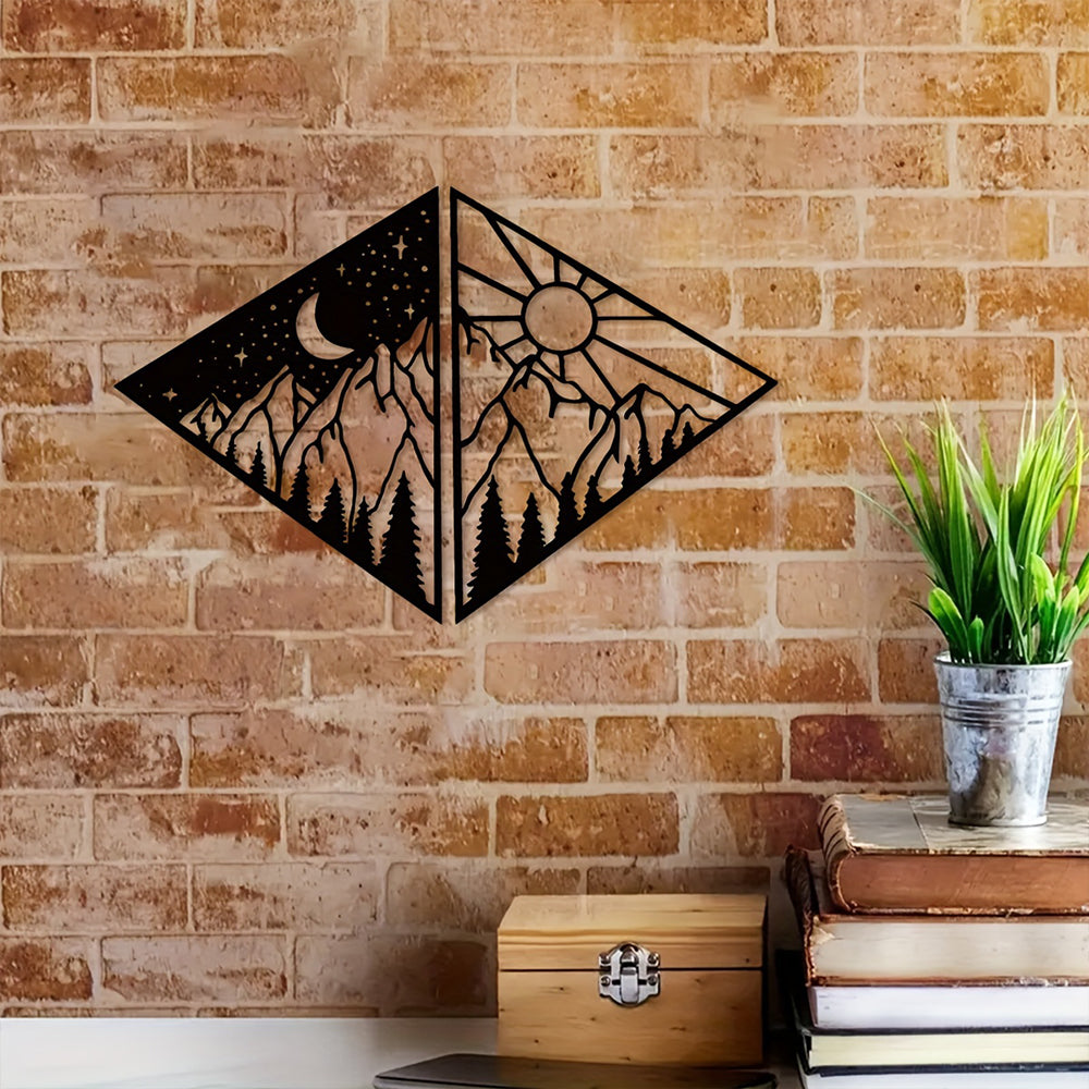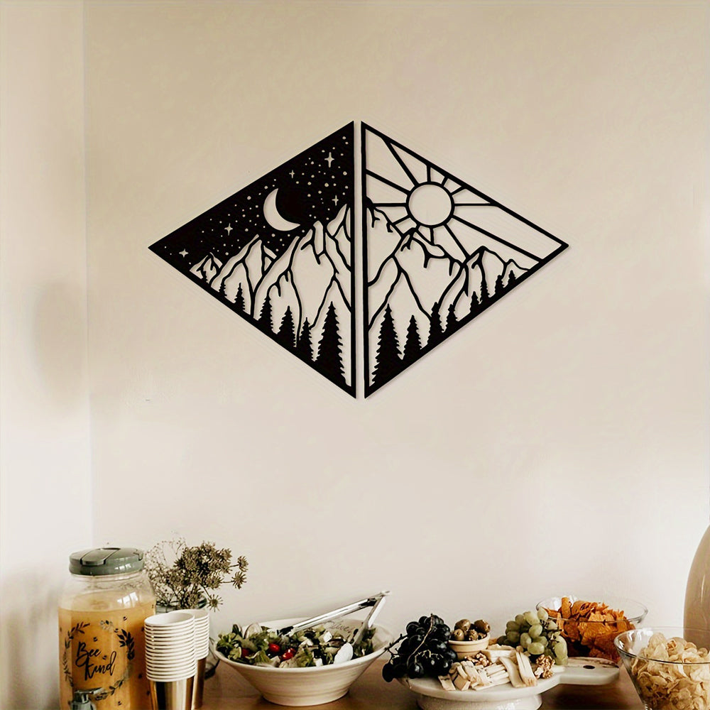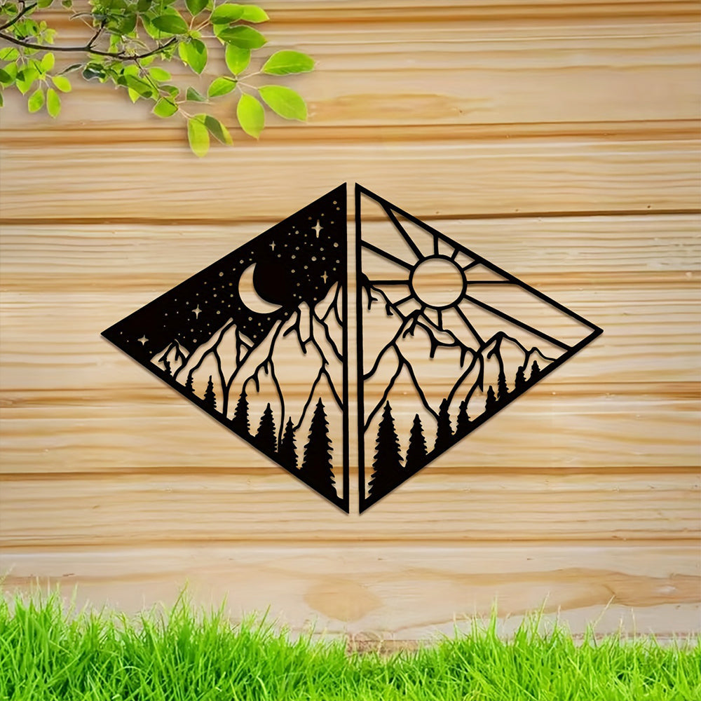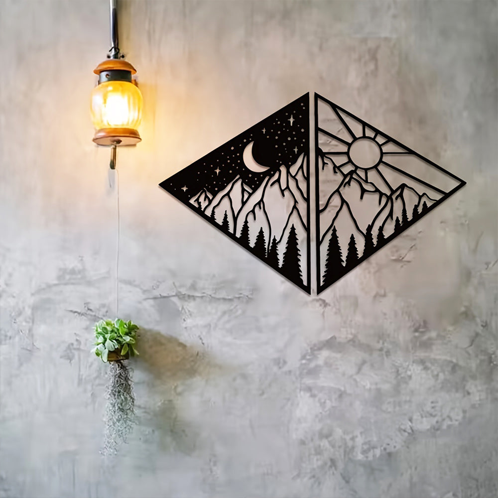 2 Stück Sonne Mond und Berg Metall Wandkunst Dekoration