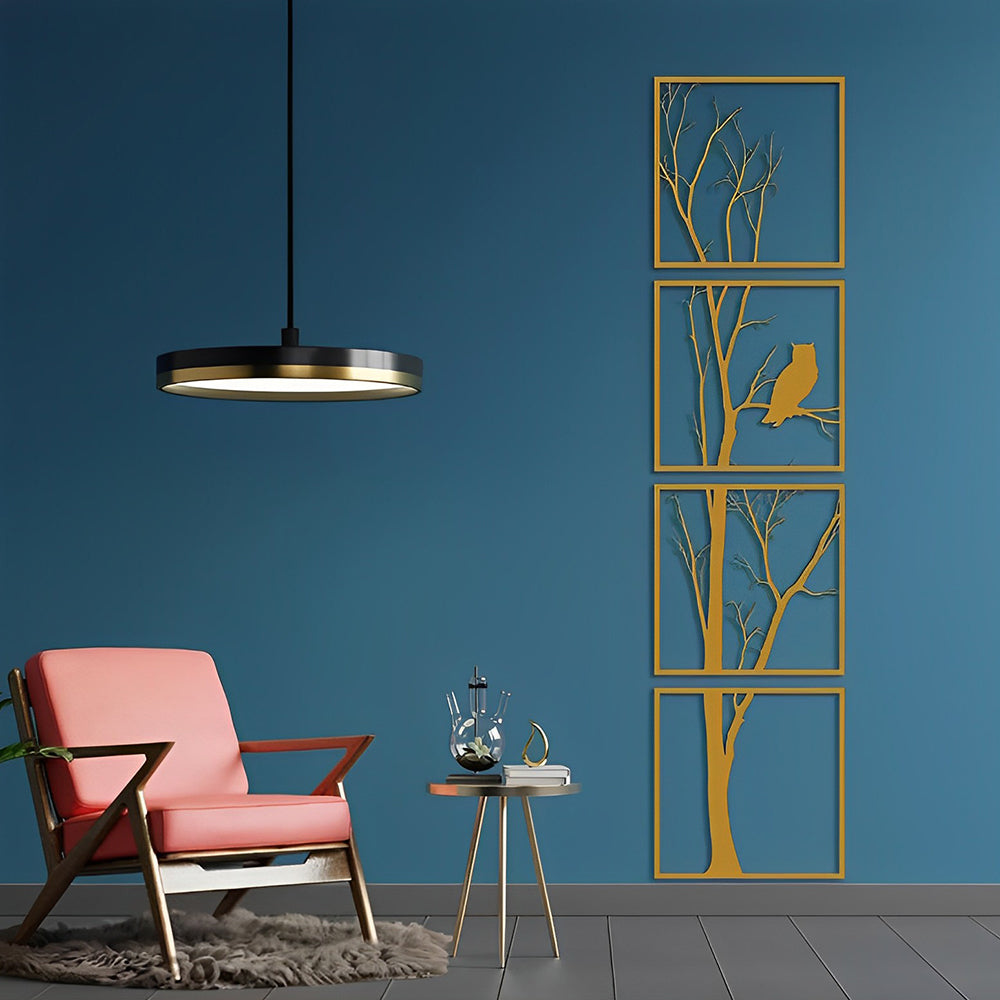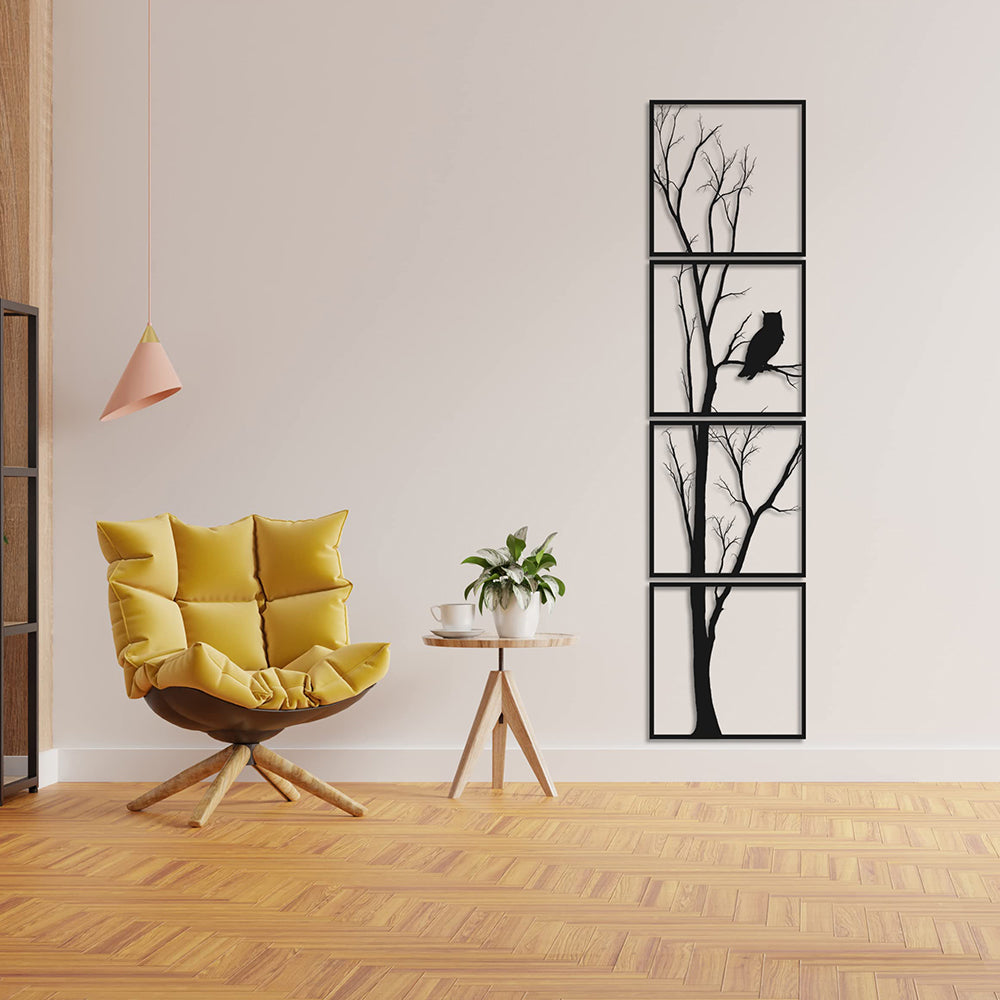 4 Stück Eule Lebensbaum Metall Wandkunst