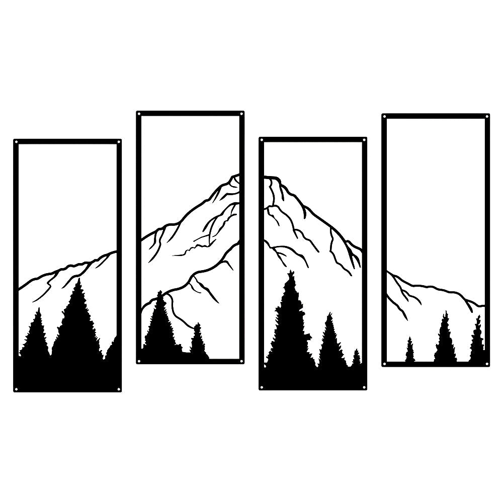 4 Stück Minimalistisch Berg Metall Wandkunst