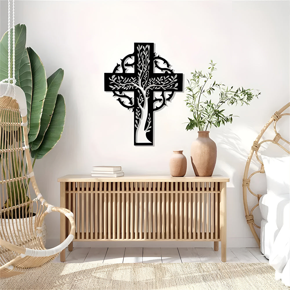 Gott Metall Logo Kreuz Lebensbaum Symbol Wanddekoration