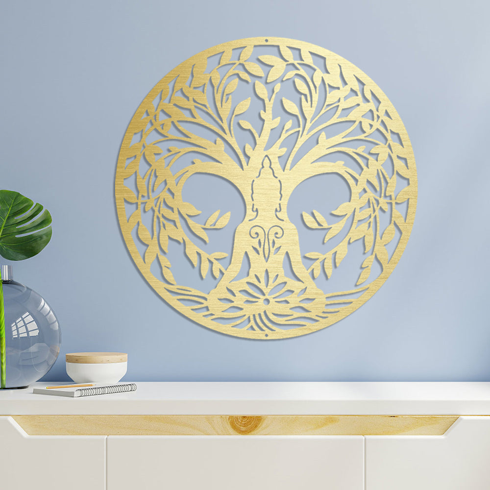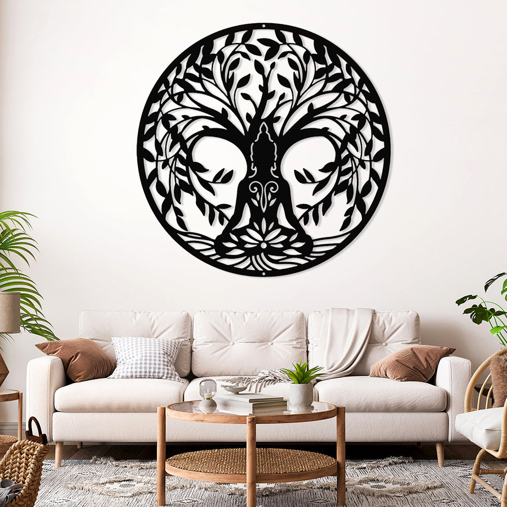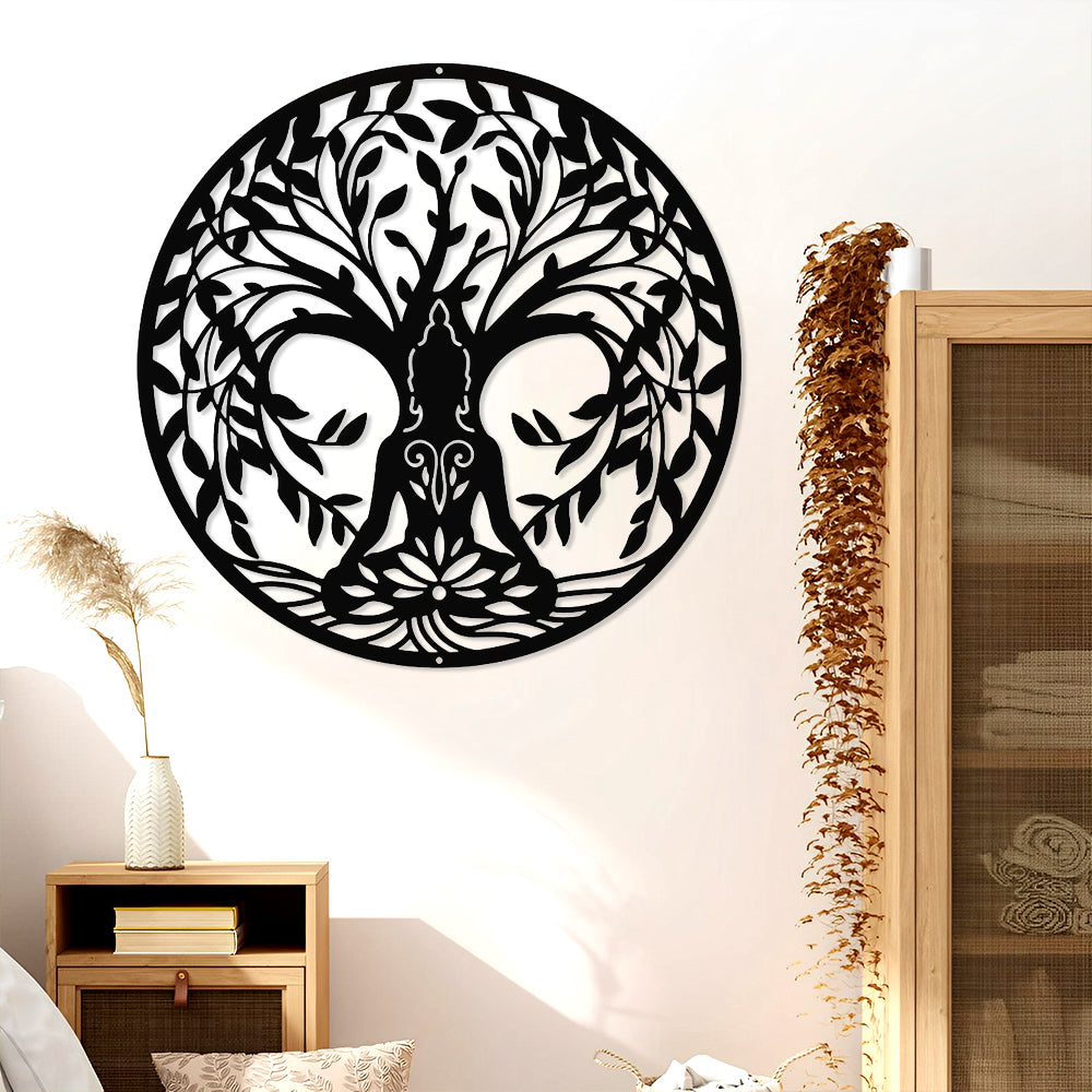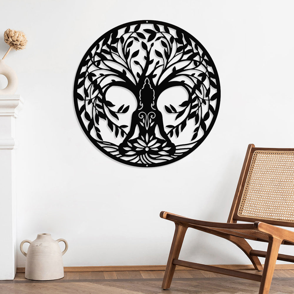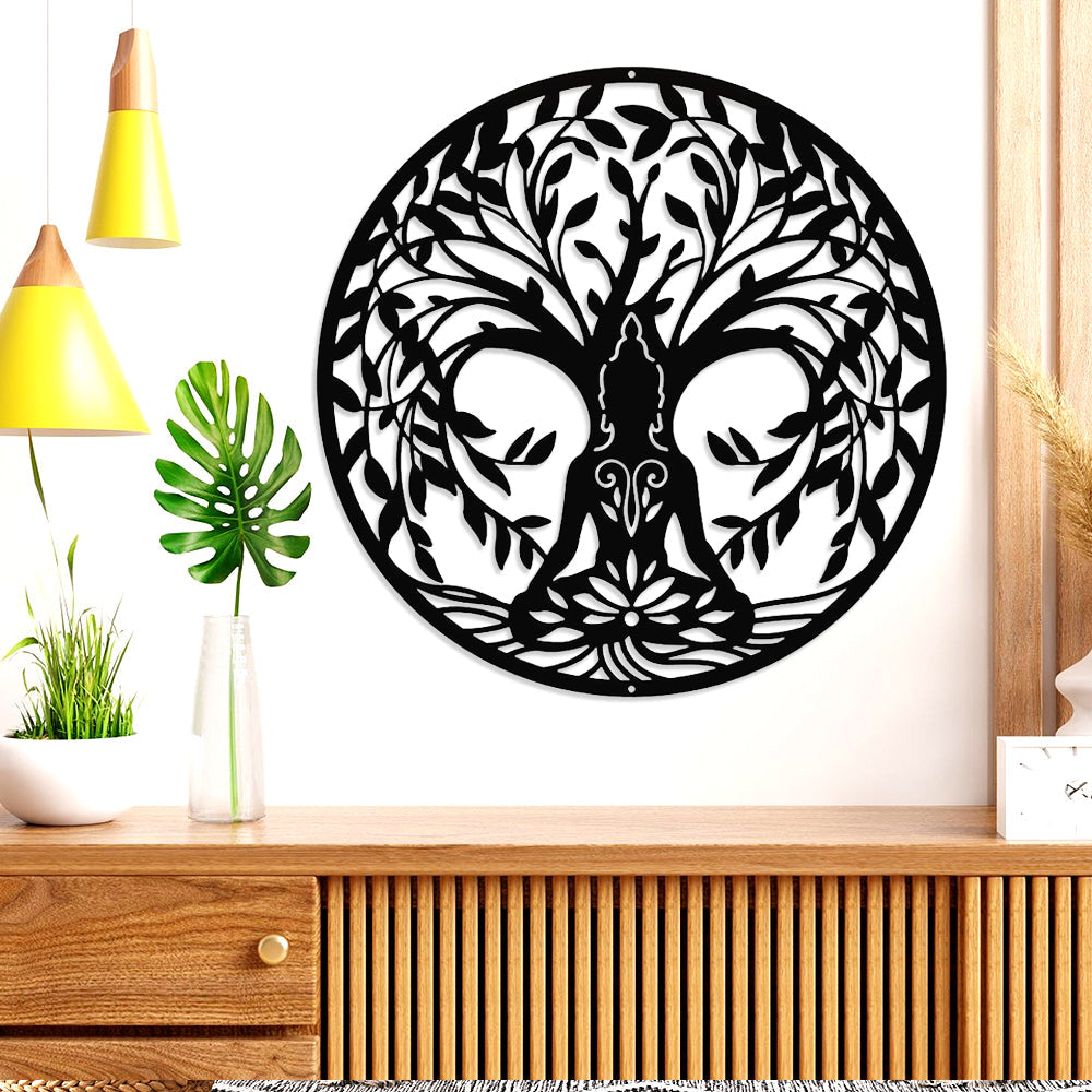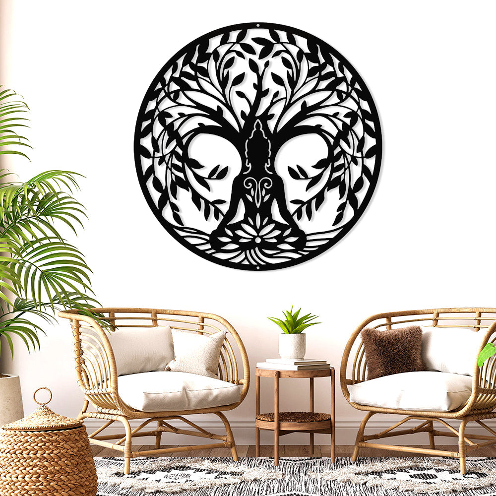 Lebensbaum und Yoga Metall Wandkunst Dekoration
