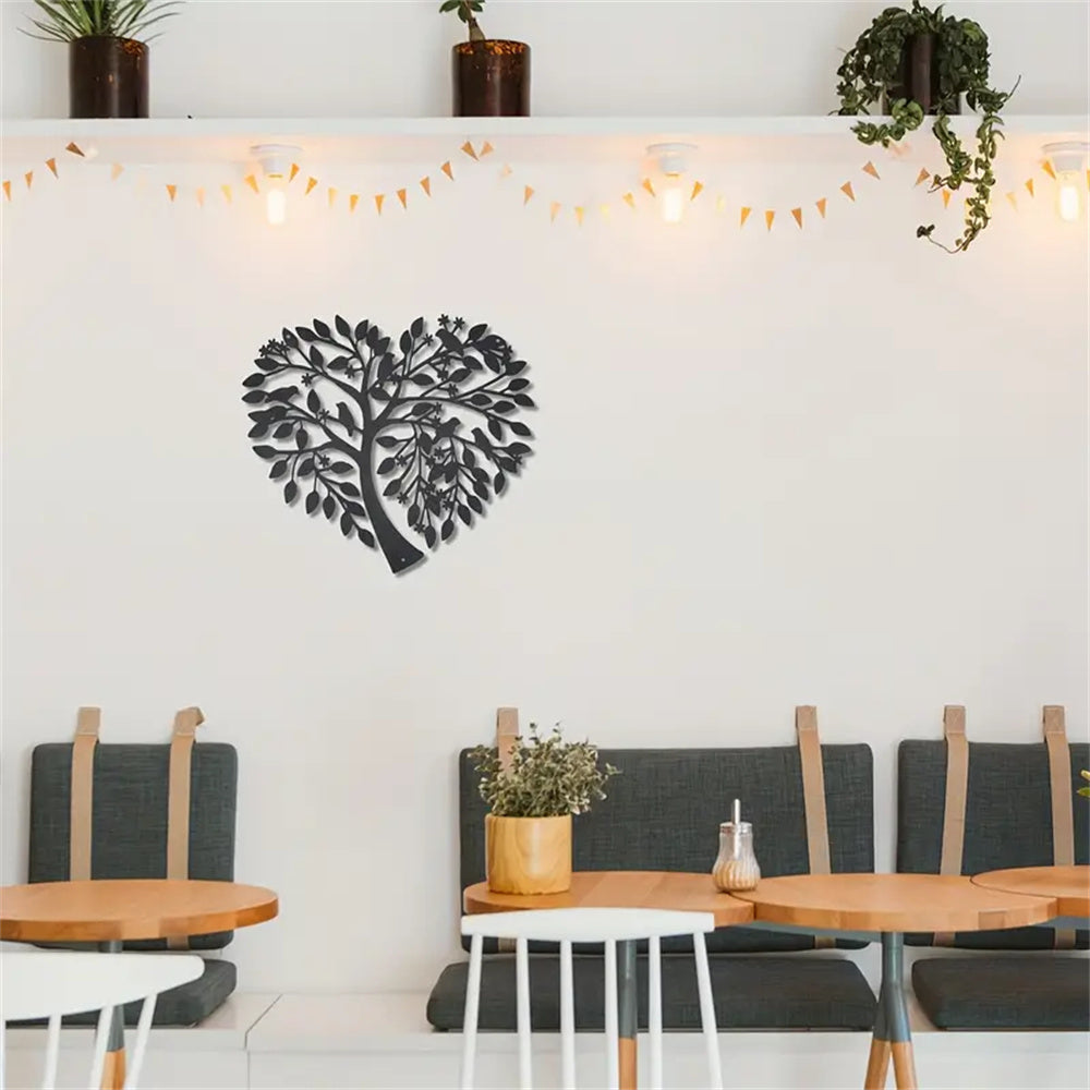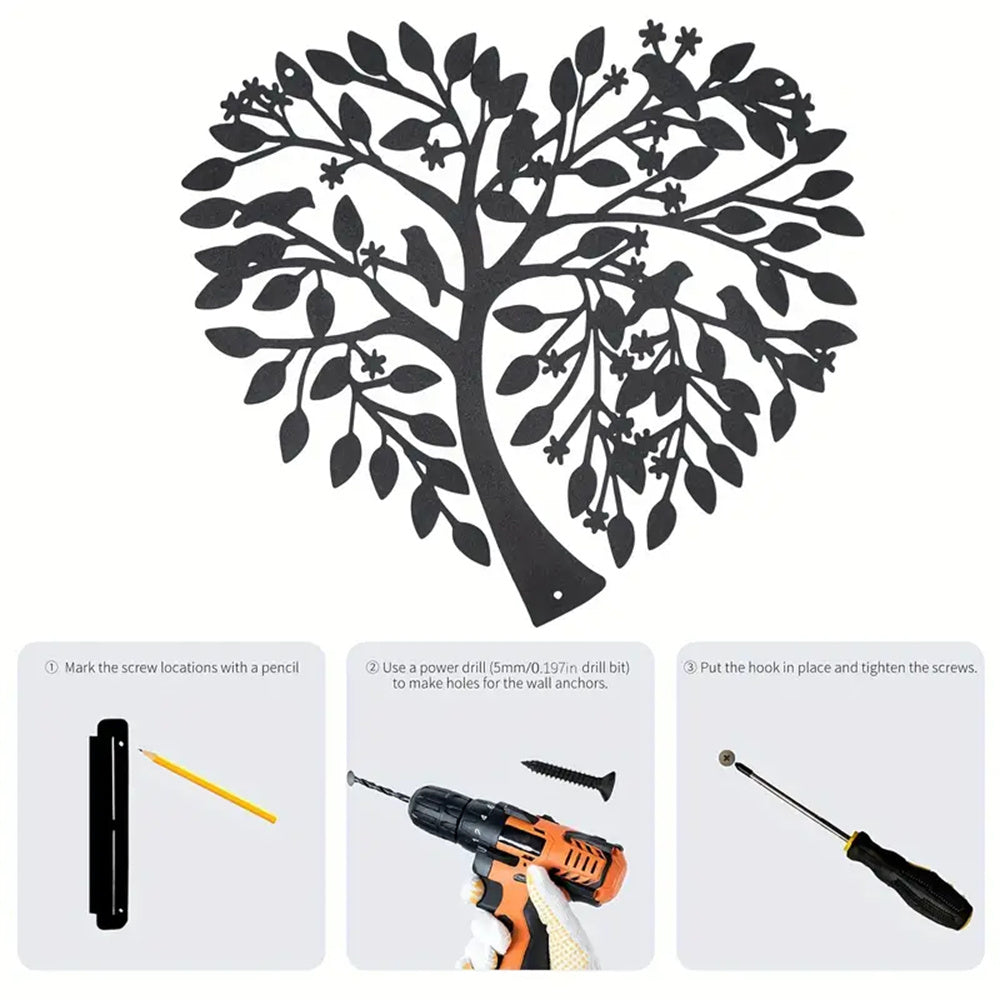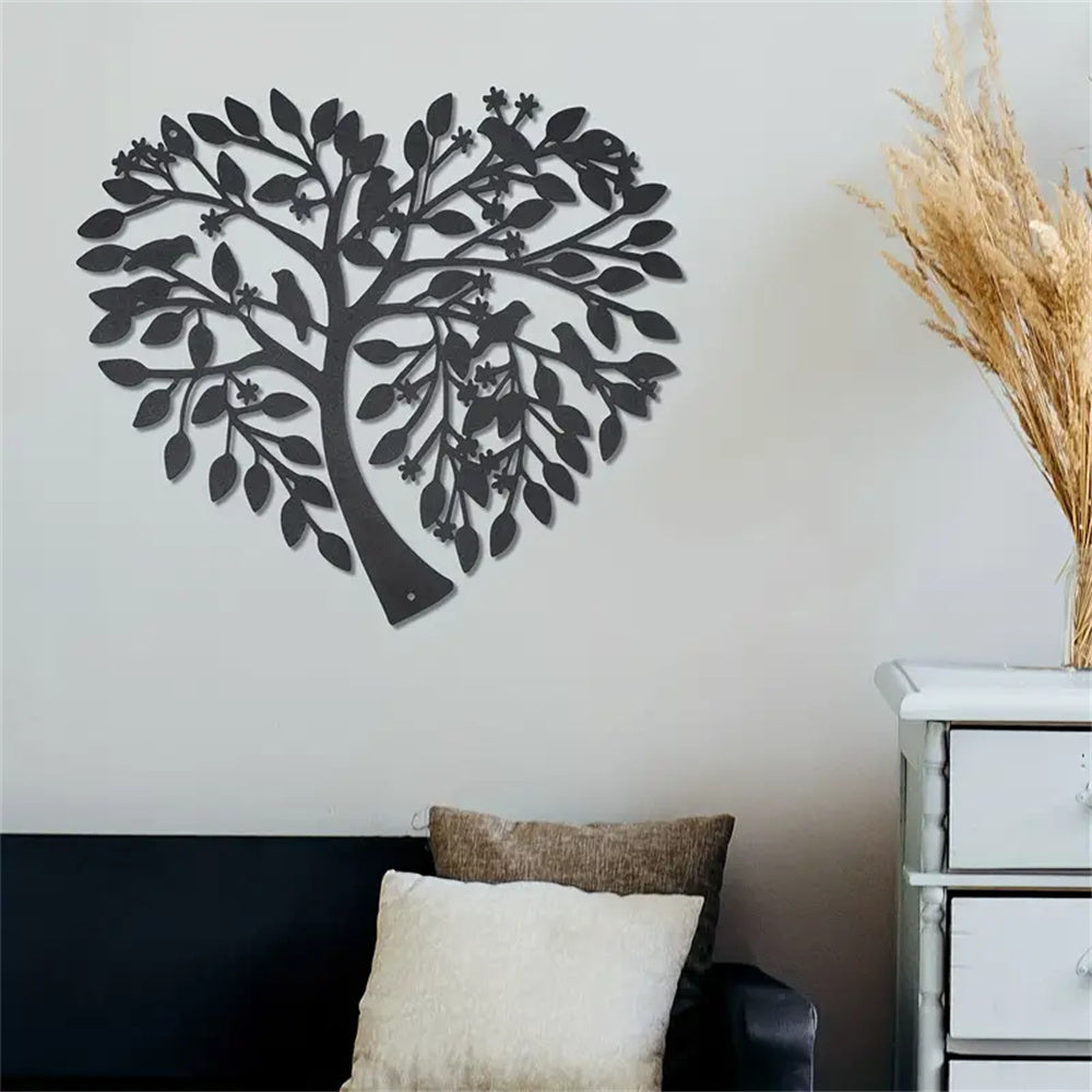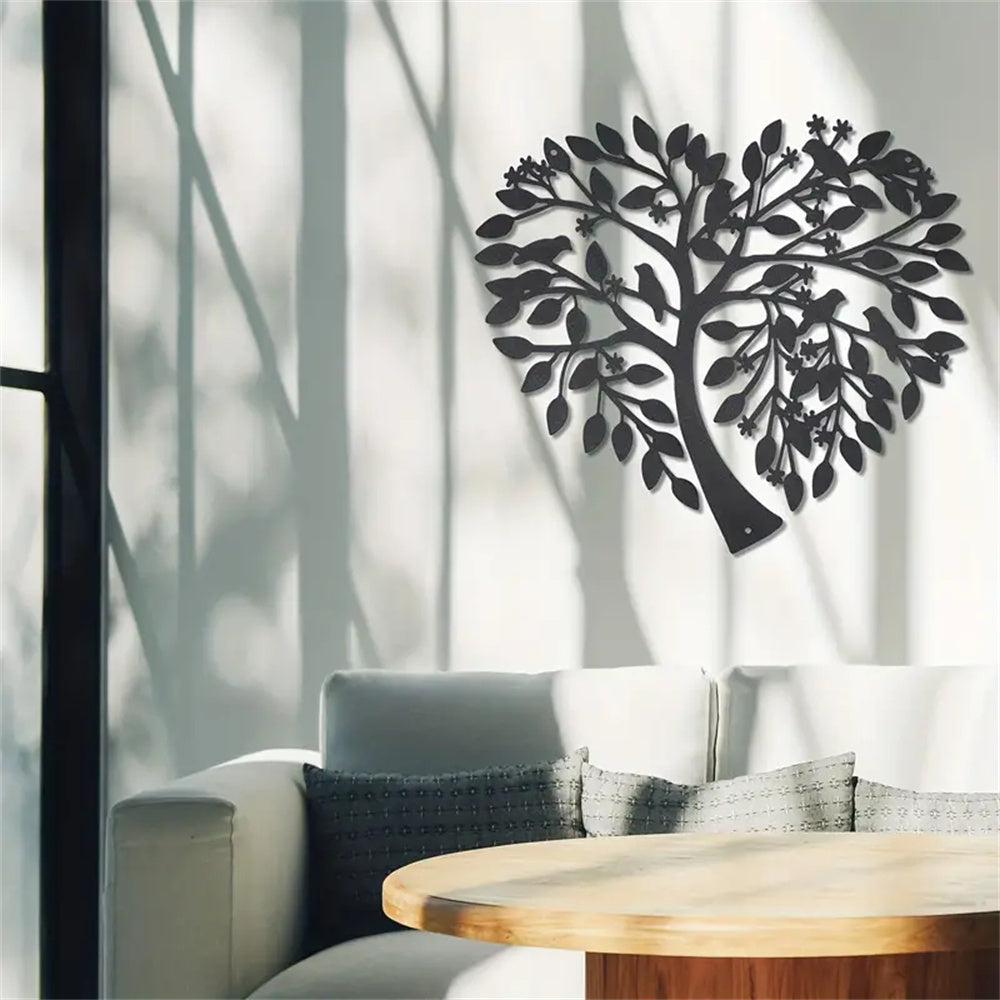 Vogel und Lebensbaum In Herzform Metall Wandkunst