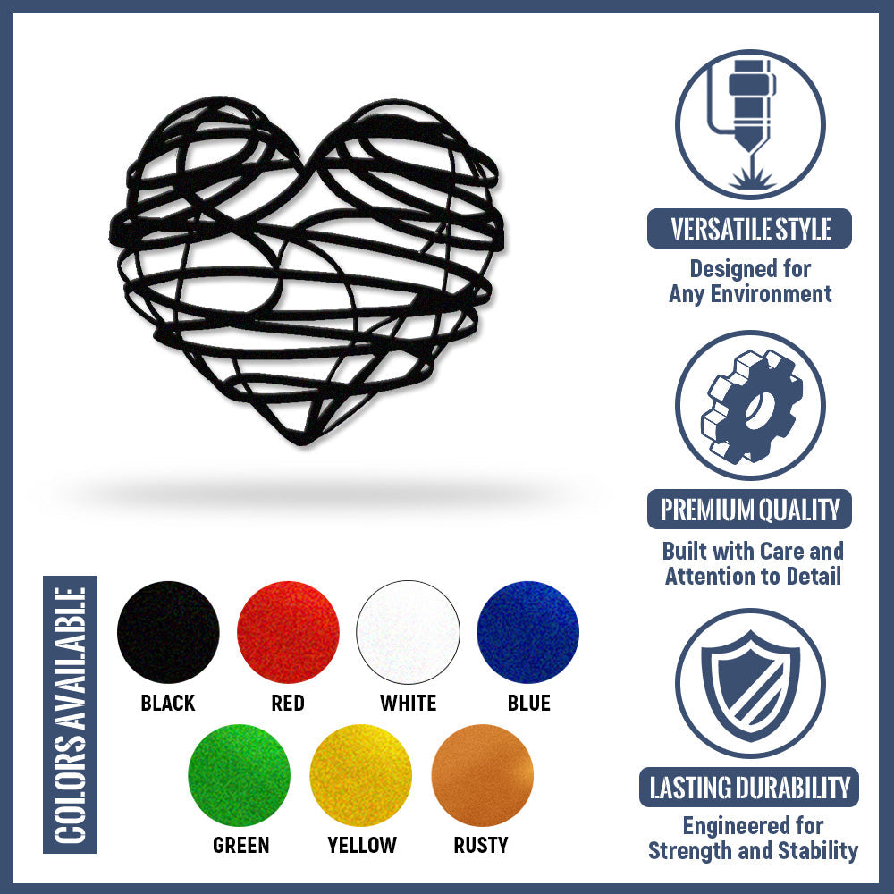 Abstraktes Herz-Kritzelei Metall Wanddekoration