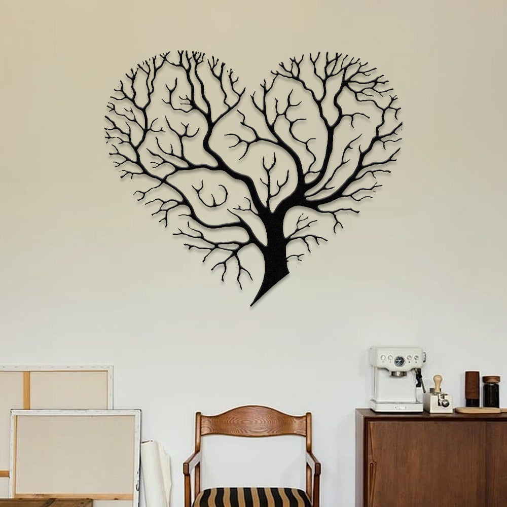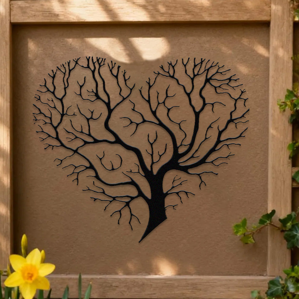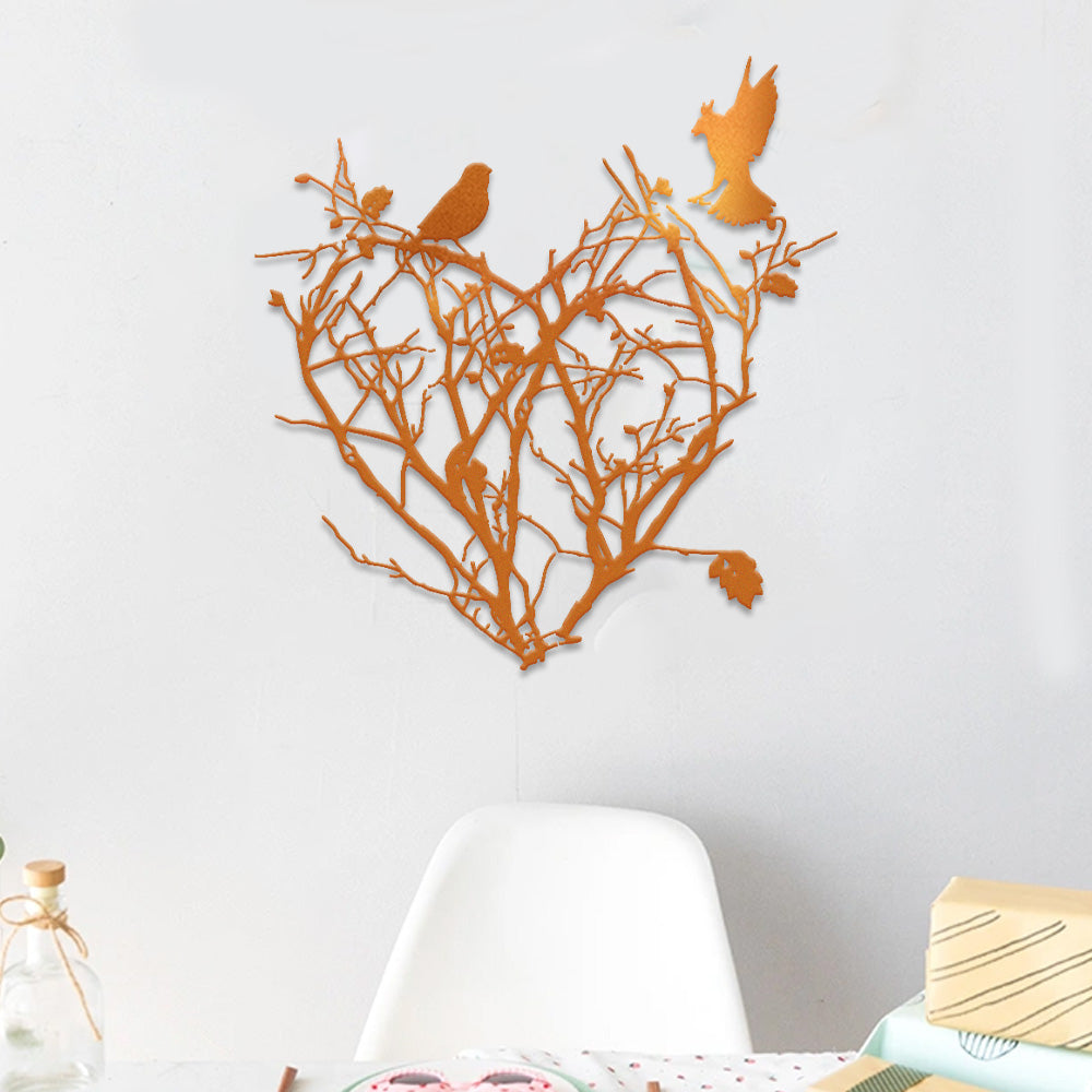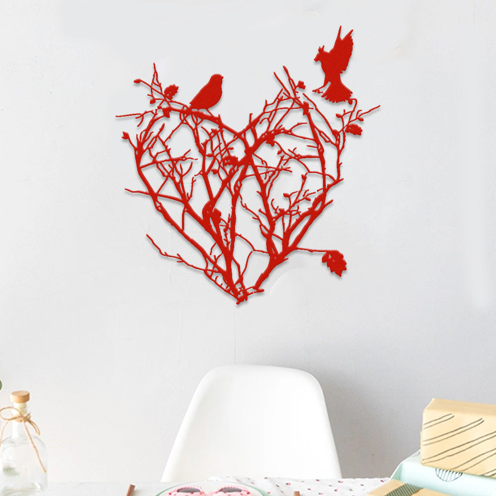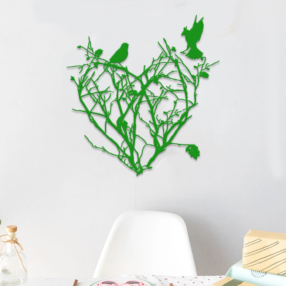 Vögel auf Ästen Herzbaum Metall Wanddekoration