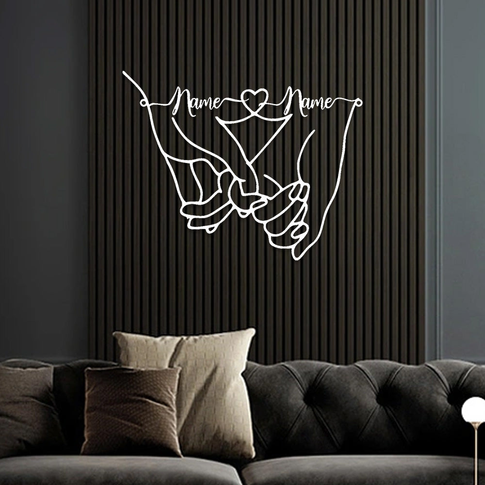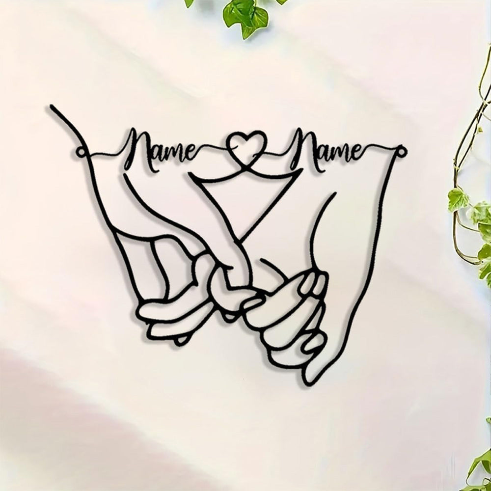Personalisierte Hand in Hand Liebe Individuelle Namen Metall Wanddekoration