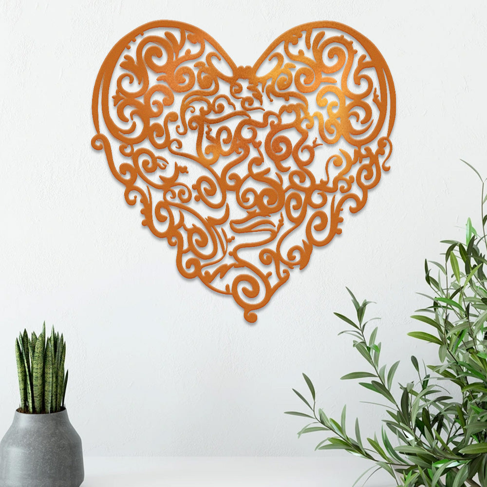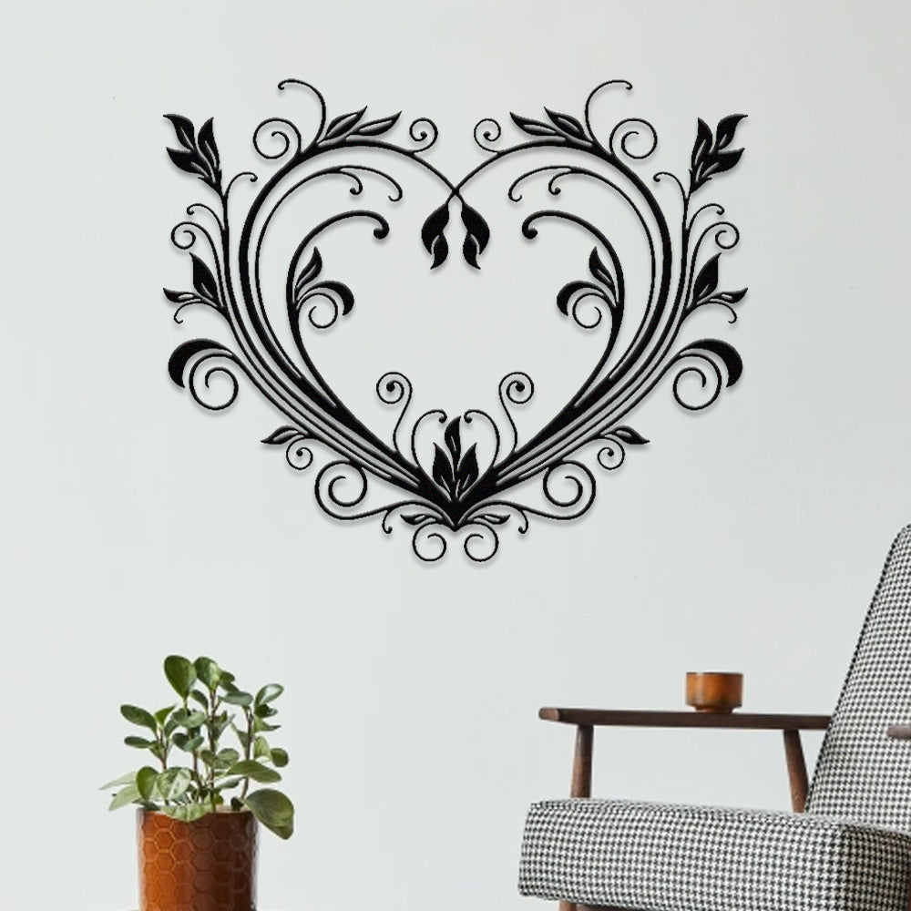 Elegantes Herz mit Rankenverzierung Metall Wanddekoration