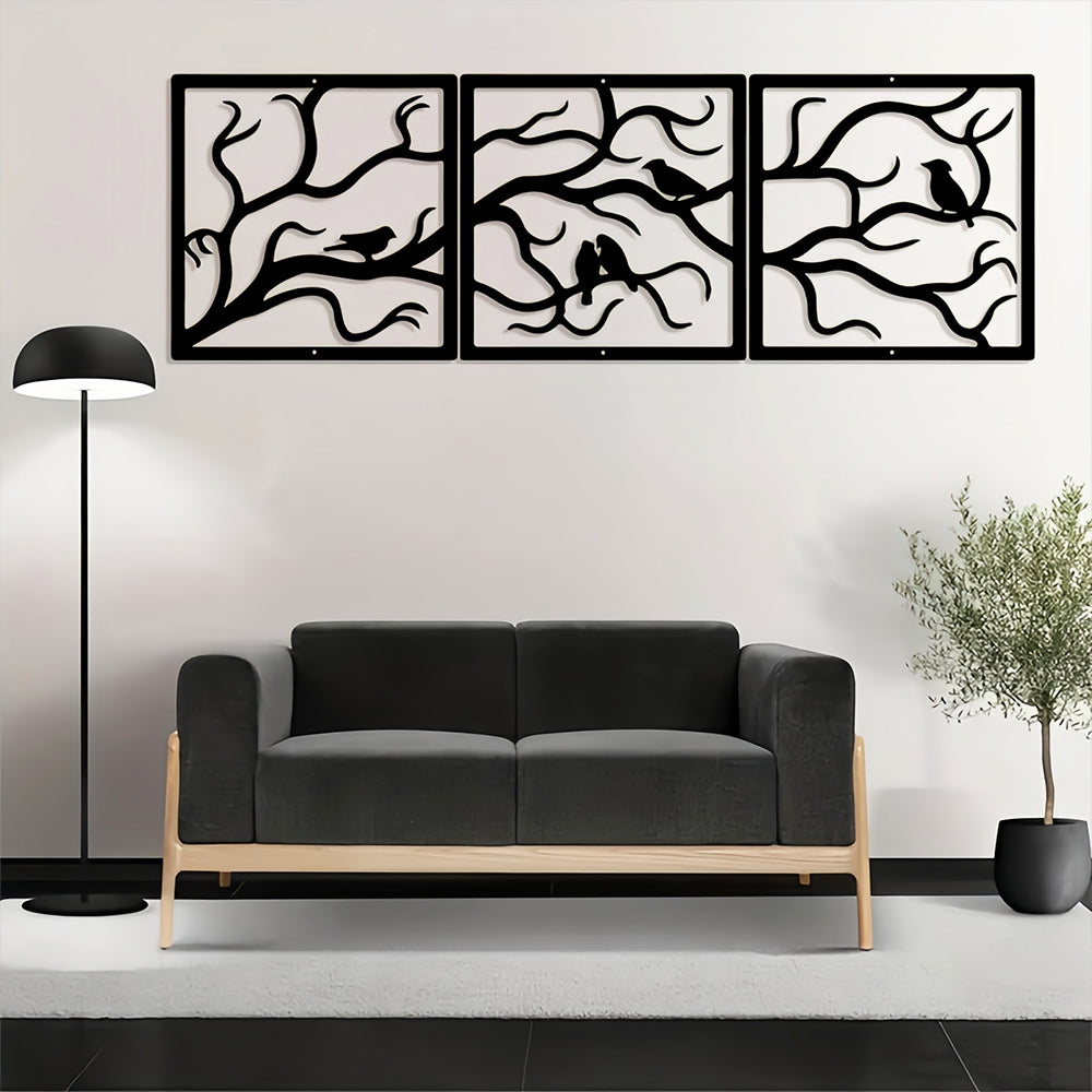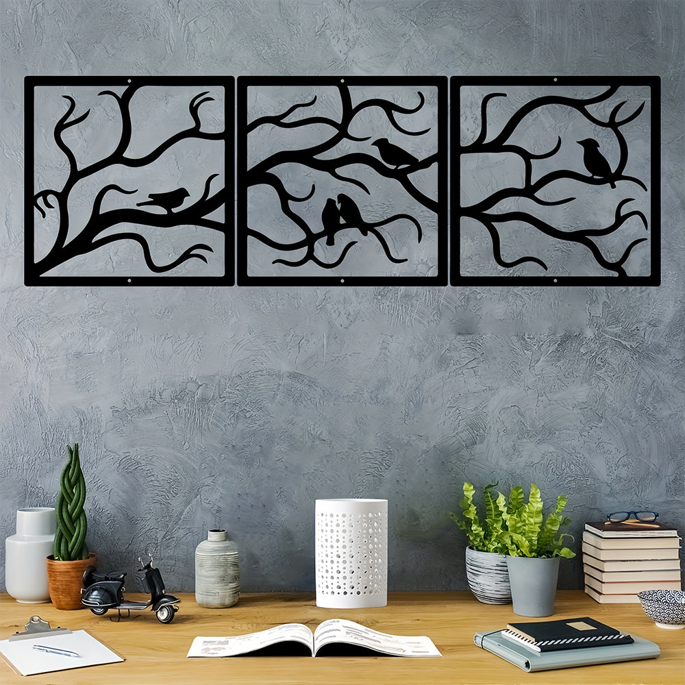 3 Stück Vögel und Lebensbaum Metall Wandkunst