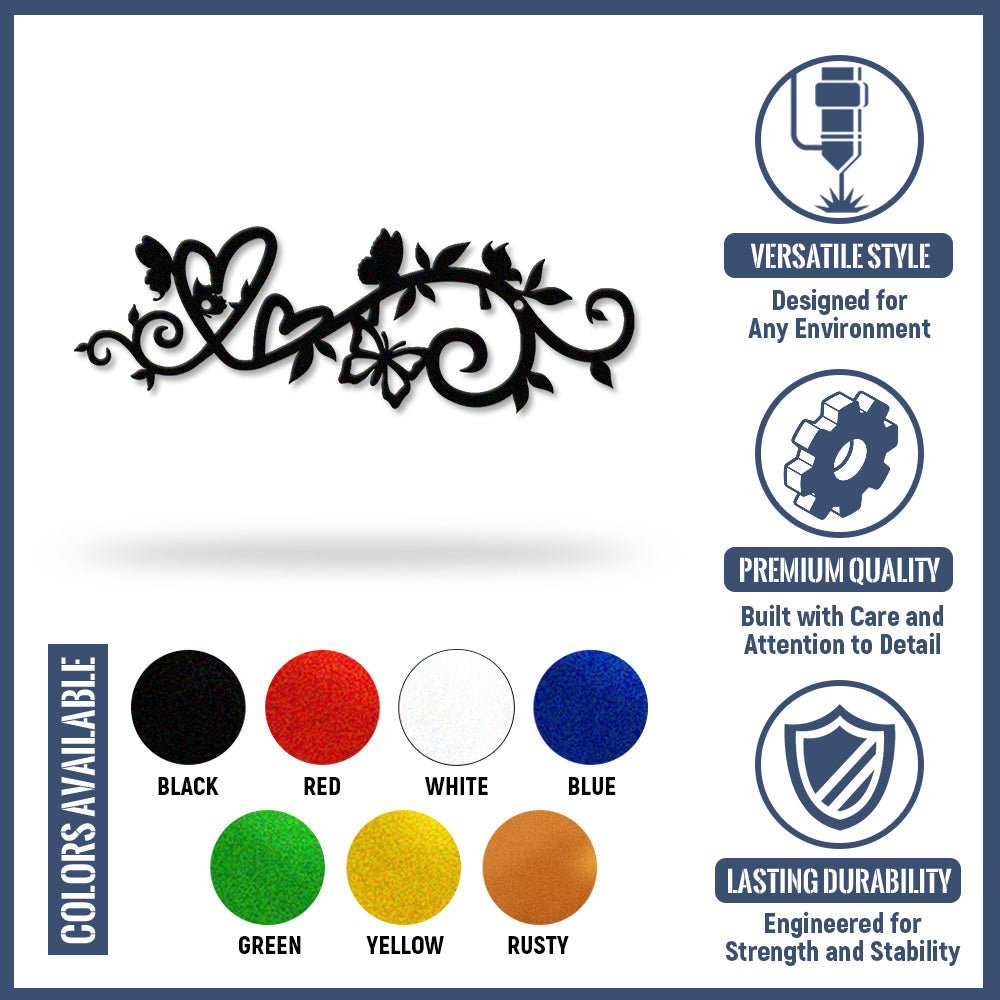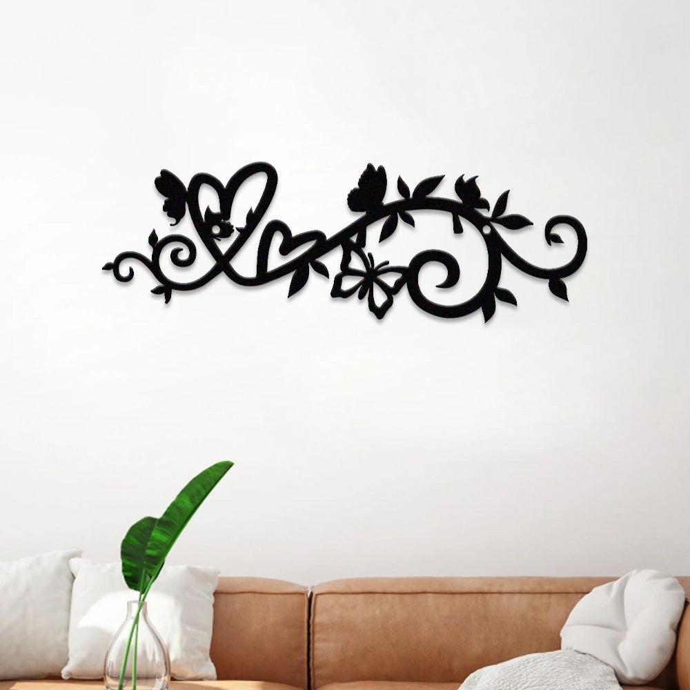Blumenranke Herz Schmetterling Metall Wanddekoration