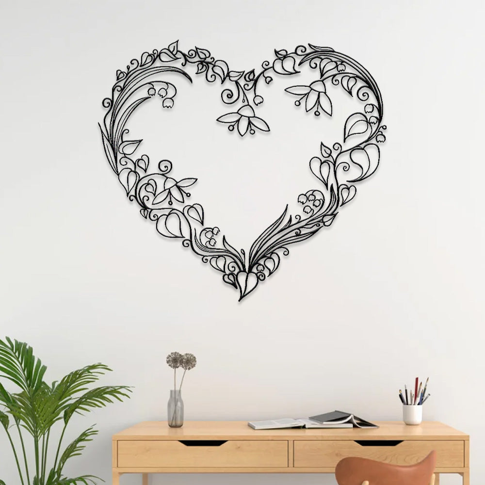 Blumenranken Herz Umriss Metall Wanddekoration