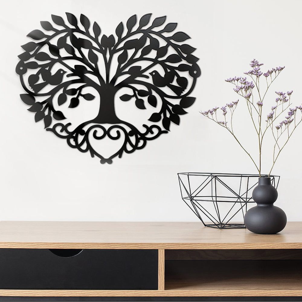 Herz und Vogel Lebensbaum Metall Wandkunst