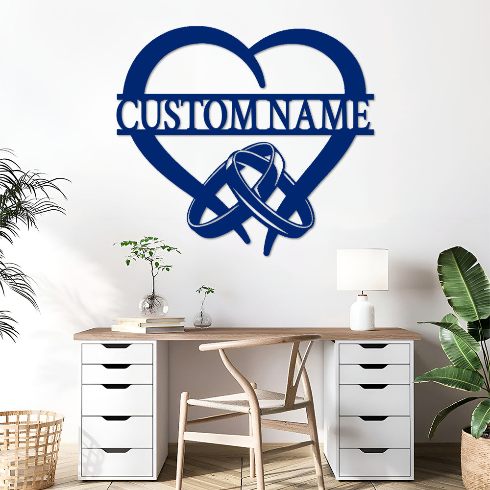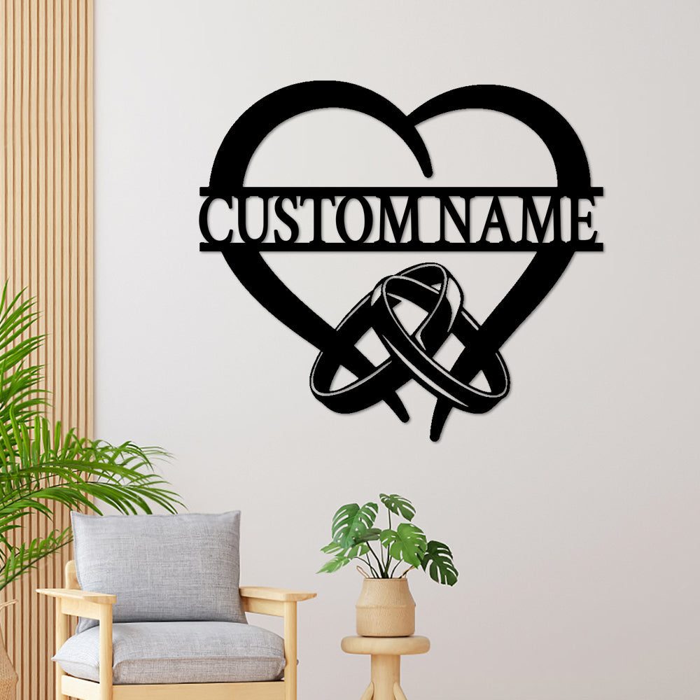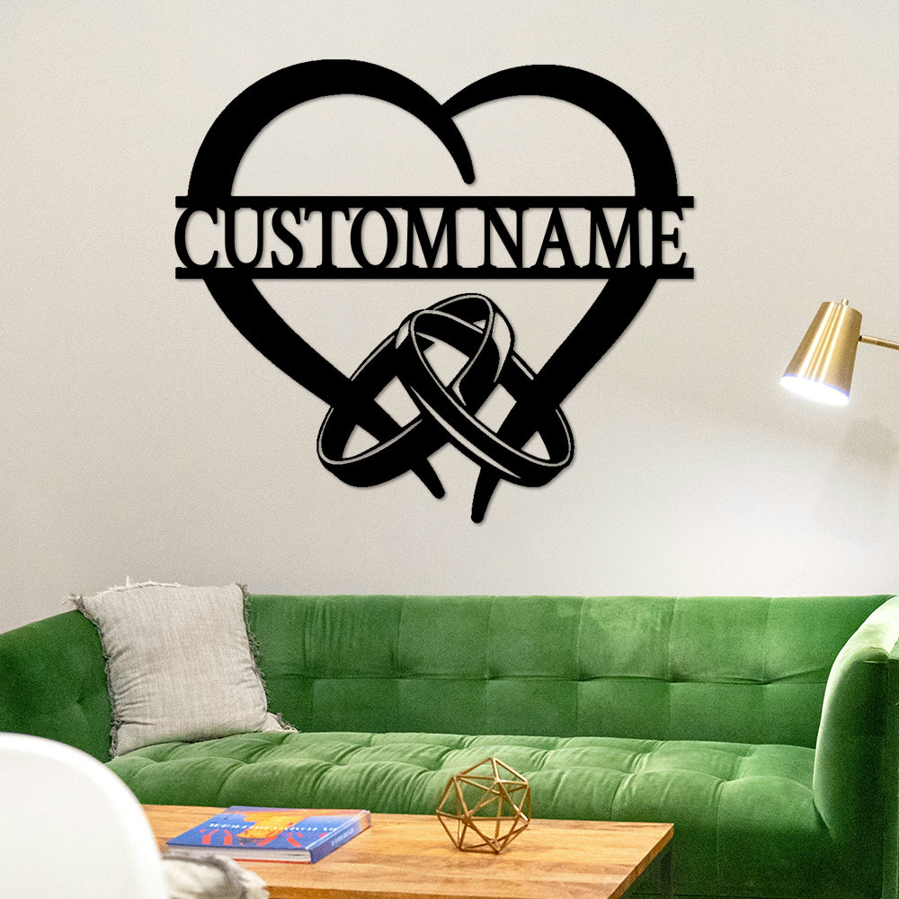 Ringe und Herz Wanddekorationen aus Metall mit individuellen Namen